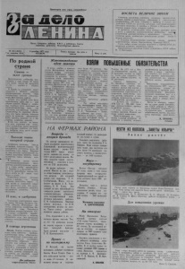 Пролетарии всех стран, соединяйтесь! X1 V 7 I V Орган Северного райкома КПСС и районного Совета народных депутатов Новосибирской области № 146 (4652 ) Год издания 4 3 . й 8 декабря 1977 года ЧЕТВЕРГ Газета выходит три раза в неделю Цена 2 коп. ВОСПЕТЬ ВЕЛИЧИЕ ЭПОХИ Советские художники стремятся с о з д а в а т ь произведения, которые идейно и нравственно обогащают и вдохновляют современников. Об этом говорили с трибуны V съ е зд а х у дожников СССР его дел егаты посланцы многонационального советского искусства. 2 д е к а б р я в Москве в Большом К рем левском дворц е съ езд завершил р аботу . В ,принятом постановлении съ е з д призв ал мастеров кисти и резца к широкому художественному обобщению явлений современной действительности и героического прошлого, к созданию ярких, поэтических произведений разных видов и жанров искусства. С большим воодушевлением участники с ъ е з д а приняли приветственное письмо Ц ентральному Комитету КПСС. Съезд избра л новые составы правления и Ц ентральной ревизионной комиссии творческого союза. Пре дседателем правления Союза художник ов СССР избран Н. А. Пономар ев. П о р о д н о й с т р а н е Семена — з а л о г урожая Волгоградские хлеборобы подготовили к севу свыше 50 тысяч тони семян. Около 80 процентов из них — первого и второго класса. В борьбе за улучшение семе* новодства в области широкое распрос транение получил опыт земледельц ев совхоза «Зеленов- ский» Фроловскрго района. Семена под яровой клин были подготовлены здесь еще в дни уборки у р о ж а я . Прямо с семенных участков зерно поступало на специализированные тока , где проходило двухкратную очистку Специалисты на п ракти ке убеди! лись, что т а к а я система з а к л а д ки семян на хранение обеспечивает более высокое качество их и обв о д и т с я хо зяйств у дешевле. В эти дни, з ад олго до весеннего сева, агрономы уже з а в е р шили составление карты разм ещ ения семенных участков, д л я кото рых выбраны поля после лучших предшественников. Высокие темпы сахарн ой страды З а ве рш ен а заготовка свеклы сахарными завод ам и страны. На предприятия достав лен о около 85 миллионов тонн сырья. Впервые з а всю историю отечественной с а харной индустрии принято так ое количество сырья высоких кондиции, В нынешнем сезоне многие свеклоперерабаты вающие предприятия реконструированы, введены в строй новые производства на Украине и в Молдавии. Мощности по переработке свеклы возросли почти на 25 тысяч тонн сырья в сутки. Интенсивно ведется д о ставк а свеклы в районы, где заводы ощущают недостаток сырья. С этой целью ее перевезено- свыше дву х миллионов тонн. Это по зво . лило более равномерно за грузить предприятия, устранить потери продукции, И кокс, и у д о б р е н и я Труженики коксо газового з а в о да имени 50 -летия Великого О к тяб р я (Видное, М оск овс кая об ласть) отп равили хозяйствам Н ечерноземной зоны Российской Федерации четырехтысячную то нну азотных удобрений, вы р а бо танных дополнительно к за данию юбилейного года. Эта продукция отмечена государственным Знак ом качества, В помощь агрономам Москва . Партию полевых влаго меров зерна выпустил приборо строительный з а в о д «Манометр» Малогабаритный , переносный при! бор в отличие от громоздких л абораторных собратьев пред назначен д л я работы непосредственно^ в полевых условиях* Простой и надежный в э к сп л у а тации, он поможе