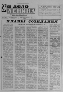Пролетарии всех стран, соединяйтесь! «1 i i e / i u Орган Северного райкома КПСС и районного Совета народных депутатов Новосибирской области № 151 ( 4 6 5 7 ) Год издания 43-й 20 декабря 1977 года Газета выходит три раза в В ТО Р НИ К | неделю Цена 2 коп. В Москве завершила работу в о с ь мая сессия Верховного Совета СССР д е в я т о го созыва. Депутаты единодушно приняли З а коны о Государственном плане экономического и социального развития СССР и Государственном бюджете СССР на 1 9 7 8 год -— третий год пятилетки. Москва . ( Т А С С ) . 15 декабря в Кремле вт орой день р а б о т а ла восьмая сессия В ерх овн о го Совета СССР. На раздельных зас еданиях палат — Совета С ою за и Совета Национальностей — деп утаты п р о д о л ж и ли начатое накануне о б с у ж д е ние в о п р о с о в о Г о с у д а р с т в е н ном плане э к он омич е с к о го и социального развития СССР, Гос уд ар с твенн ом б ю д ж е т е СССР на 1978 г о д и о б и спол нении Г о с у д а р с т в е н н о г о б ю д жета С СС Р за 1976 год. О раторы говорили о т ом , что со ст оявш ий ся 13 декабря Пленум Центрального Комит е та КПСС , на к о т о р о м с б о л ь шой речью выступил това рищ Л. И. Брежнев, сы грает о г р о м ную м обилизующ ую роль в осуществл ении социально экономической программы, выдвинутой X X V съ е зд ом партии. На сессии отмечалось, что за два года д е ся то й пятилетки д о сти гну т значительный р о с т экономики страны. Дал ьнейшее развитие получили в с е отрасли промышленности. Х а рактерным для этих лет я в ляется повышение техникоэ к он омич е с к о го ур овня произв о д с т в а и качества продукции. Общий о б ъ е м производства в о з р а с т е т на 10,9 процента. Одним из важных условий выполнение плана на 1978 г од , подчеркивал ось на сессии, является укрепление г о с у д а р ственной плановой дисциплины, обеспечение выполнения плана каждым предприятием, каждой стройкой . В о многих выступлениях о т мечалось значение широкого распростран ения опыта перед овы х коллективов, д о б и в а ю щихся на о с н о в е хорош ей о р ганизации п рои звод с тва в ы полнения и перевыполнения плана по всем показателям, всем ер но г о развития социалис ти че с к о г о соревнования за обеспечение высоких темпов р о ста производительности т р у да, улучшение качества п р о дукции и использование м ощ ност ей, экон омию материальных ре су р сов . Аплодисмен тами встретили участники сессии сообщение рижской прядильщицы д е п у т а та Т. Б. Мазуре о т ом , что она у ж е выполнила - план трех лет пятилетки. Текстильщица со о бщ и л а , что на предприятии широко развернулось социалистическое соревнование под лозунгом «Н и о д н о г о о т с т а ю щего р я д о м » . Э т о движение характерно для с о в е т с к о г о о б раза жизни, подчеркнула она. Ни в одной капиталистической стране рабочий не станет б е с коры стно помогать о т стающ им . Там каждый вынужден дум ать т о л ьк о о се бе, о т о м , чтобы не о ст а т ь с я без р аботы . Т. Б. М а зуре , побывав в с о с т а в е м о л од еж ной делегации в США , видела э т о своими глазами'. В сравнении с положен ием р а б о ч е г о в мире капитала о с о бенно о со з н ае т ся величие г а рантируемых со в ет ским людям социальных прав, в т ом числе право на тру д , сказала д е п у тат. Выступавшие подчеркивали, А Н Ы С О З И Д А Н И Я На сессии Верховного С о в е т а С С С Р что в нашей стране п о с л е д о в а тельно проводится в ы р а б о та н ная партией долговременная программа развития сел 