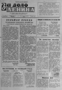 Пролетарии всех стран, соединяйтесь! 0 УСПЕХ ЛЕЙЛЫ ПЕЙПС Вильянди. (Э с т о н с к а я С С Р ) . Герой Социалистическо го Т р у да д о я р к а совхоза «Вильянди» Л ей д а Пейпс з а в е р ш и л а 29 д е к а б р я выполнение социалистических о б я з а т е л ь с т в юбилейного года. Она н адоила 512 тонн молока. Такого р е з у л ь т а т а па ферме, где нет доильной площадки , не д о б и в а л а с ь еще ни одна д о я р к а республики. — По примеру Лейды Пейпс,— с к а з а л первый се крета рь Вильяндиского райкома партии В. Я.У дам,— в движ ени е за ув еличение производства молока включились все ж и в о т н о в о ды. Сейчас в х о зяй ств а х идет со ревнование з а успешное проведение зимовки скота, полное использов ание рез е р во в , чтобы в новом году р а б о т а т ь еще эффекти внее. Вместе с Лей д о й Пейпс успешно з а в е р ш аю т второй год пятилетки все шесть тысяч д о я р о к Эстонии. СООБЩАЮТ ИЗ КОЛХОЗА НМ. XXII СЪЕЗДА КПСС V Орган Северного райкома КПСС и районного Совета народных депутатов Новосибирской области № 1 ( 4663) 3 января 1978 года Газета выходит три раза в й ВТОРНИК неделю Цена 2 коп. Б О Л Ь Ш А Я П О Б Е Д А Т Р У Ж Е Н И К О В С Е Л Ь С К О Г О Х О З Я Й С Т В А РАБОТНИКАМ ЖИВОТНОВОДСТВА ОБЛАСТИ Дорогие товарищи! Новосибирский обком КПСС и облисполком с чувством глубокого удовлетворения сердечно поздравляют вас, тр уж е н и к о в животноводческих ферм, работников молочной промышленности, с к рупной трудовой победой — сдачей государству 1 миллиона тонн молока. Такой объем заготовок дости гнут областью впервые, и знаменательно, что в год 6 0 - л е т и я Великой Октябрьской социалистической революции. Это результат самоот верженного труда доярок, ск отников дойных г у р тов, всех работников сельского хозяйства, большой организаторс кой и массово-политической работы п артийных , совет ских, сельскохозяйственных и заготовительных органов, профсоюзных, комсомольских ор г анизаций , руководителей и специалистов хозяйств. К этому рубежу на про т яж ен и и ряда лет стремились десятки тысяч доярок, дру ги х работ ников ферм. За последние годы выросло и х мастерство. В результате социалистическог о соревнования, трудового соперничества более 1 , 5 ты сячи доярок получили по 3 . 0 0 0 к г молока на корову, а 2 5 0 человек добились надоев по 4 — 6 тысяч килограммов. Среди них известные в области и в стране Герои Социалистическо го Труда Антипова А. Т . , Саяпина Н . В., Симм Л . А . , П у гачева Е. М . , чемпионы и призеры Все союзного и Всероссийского конкур сов мастеров машинного доения Ч у п и н а А. С., Фрезе Е. Г., Грачев Н. Н . , Чернакова 0 . П , , Теплое Н. И . , знатные мастера ж и в о т новодства Назаров С. А . , Руднева Г. С., На - ракулова Т. М ., Педоряк А. А . , Сысолова Н. П . , Бибикова Л. Я. и многие други е. Наряду с мастерами производства на фермы после оноцчания общеобразовательных школ пошли работать тысячи юношей и девуш ек, которые показывают образцы в труде и добиваются высоких результатов. Обком КПСС и облисполком надеются и выражаю т твердую уверенность в том, что этот успех НОВОСИБИРСКИЙ ОБКОМ КПСС. будет закреплен и п ри ум н ож е н . Коллективы совхозов и колхозов области обеспечат дальнейший рост производства и заготовок продуктов ж и в о т новодства, выполнение планов и социалистическ и х обязательств десятой п я т и л е т к и , что позволит улучшить сн абжение населения продуктами п и та ния . Именно об, этом указывалось н