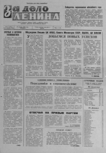 Пролетарии всех стран, соединяйтесь! Орган Северного райкома КПСС и районного Совета народных депутатов Новосибирской области 26 января 1978 года Газета выходит три раза в й ЧЕТВЕРГ неделю № П (4673) Цена 2 коп. Победитель соревнования юбилейного года Бюро обкома КПСС, исполком областного Совета народных депутатов и президиум облсовпрофа подвели итоги социалистического соревнования районов области по увеличению производства и продажи государству продуктов животноводства за 1977 год. Победителями^ в Социалистическом соревновании признаны: По Барабинской зоне — Северный район — (секретарь райкома КПСС т. Денисов И. Ф., председатель райисполкома т. Ивашкевич Г. И., председатель райкома профсоюза работников сельского хозяйства т. Алексеев П. С.). Колхозы района выполнили годовой народнохозяйственный план продажи государству молока на 119 процентов, мяса — на 102,4 процента. Обеспечили по сравнению с 1976 годом рост производства молока на 3 процента, мяса — на 7 процентов, повысили продуктивность дойного стада, увеличили поголовье крупного рогатого скота, в том числе коров, улучшили качество реализуемой продукции. ВПЕРВЫЕ В ИБТОРИИ КОСМОНАВТИКИ 22 января 1978 года осущест влена стыковка автоматического грузового транспортного корабля «Прогресс-1», запущенного 20 января, с пилотируемым научным комплексом «С а лю т -6 » — «Союз-2 7». Впервые в истории космонавт ик и с помощью автоматического корабля осуществлена транспорт ная операция по доставке на пи лотируем ую орбитальную станцию топлива для дозаправки дви- I отельны х установок, оборудования, аппарат уры и материалов для обеспечения жизнедеятельно сти экипажа и проведения н а у ч ны х исследований и экспериментов. Транспортные операции снабжения, выполняемые автоматическими грузовыми кораблями, позволят значительно ув е ли чи ть продолжите льность активного функционирования и эффективность использования п и л о т и р у е мых орбитальных комплексов в интересах н а у к и и для н у ж д народного хозяйства. Члены экипажа пилотируемого комплекса космонавты Романенко и Гречко в§ли наблюдение и контроль за процессами прича ливания и стыковки. С целью ув еличения возможностей по доставке грузов на орбиту и снижения стоимости транспортных операций корабль «Прогресс-1» выполнен конст ру ктивно таким образом, что возвращение его на землю не предусматривается. После завершения работ в составе орбитального н а уч н о -ис с ле довательского комплекса будет произведено отделение корабля «Прогресс-1» от станции. К о рабль войдет в плотные слои атмосферы и прекратит с ущ ест вование. По данным телеметрической информации и докладам экипажа, все бортовые системы космического комплекса, включающего в себя орбитальную станцию «Сал ю т - 6 » , пи лотируемый корабль «Союз-2 7» и автоматический транспортный корабль «П ро гресс -1» работают нормально. Самочувствие космонавтов Романенко и Гречко хорошее. Успешно начат новый важный этап полета пило тируемого научно-иссле довательского комплекса « С а лю т -6 » — «Союз-2 7», в процессе которого б у д у т проведены испытания и отработка системы обслуживания орбитальны х станций с помощью п и л о тир уемы х космических кораблей «Союз», и автоматических гр уз о вых кораблей «Прогресс» . ( ТА С С ) О б с у ж д а е м Письмо ЦК КПСС, Совета Министров СССР, ВЦСПС, ЦК ВЛКСМ У тром 23 