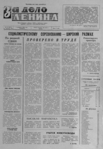 2 гш!ШШШШШ11Ш1Ш11Ш1НШ1111Н11111ШН1111ШШ1Ш1!'ШП1ШШ1111111 «ЗА ДЕЛО Л ЕН И Н А » Ш Ш111НМН1М:П1Ш П111!1Ш Ш1Ш1 4 февраля 1 9 7 8 года ♦ № 15 ВАЖНЕЙШАЯ ОБЩЕПАРТИЙНАЯ, ОБЩЕНАРОДНАЯ СЕЛЬСКОХОЗЯЙСТВЕННОГО П Р О И З В О Д С Т В А , производства—в действие Резервы 3 0 я н в а р я 1 9 7 8 г о да состоялся десятый п л е н ум Северного рай кома КПСС. Пл е нум з аслуш ал и обсудил до клад второго се кре тар я р а й ко м а п а р т и и Н. А. Борисова «Об и т о г а х работы де кабрьс к о г о ( 1 9 7 7 г . ) П л е н у ма Ц К КПСС и задачах р ай о нн о й п а р т и й н о й орг а н и з а ц и и , в ы т е к а ю щ и х из речи на Пленуме Генерально го се кре тар я Ц К КПСС, Председателя Пре зидиума Верховно го Совета СССР т. Л. И. Б р е ж н е в а , и Письма Ц К КПСС, Совета М и н и с т ров СССР, ВЦСПС и Ц К ВЛКСМ п а р т и й н ы м , с о в е т с к и м , х о з я й с т в е н н ы м , профсоюзным и ко м с о м о л ь с к и м о р г а н и з а ц и я м , т р у д ящ и м с я С ов е т с ко го Союза о раз в е р т ы в а н и и с о ц и а л и с т и ч е с к о го со ре в н ов а н и я за вы п о л н е н и е и п еревы п о л н ен и е п лана 1 9 7 8 года и у с и л е н и и борьбы за п о в ы ш е н и е эффектив н ос ти п р оизвод с тва и к а ч е с т в а р а б о т ы » . В докладе Н. А. Борисов дал глубокий анализ деятельности коллективов промышленных предприятий, колхозов района за два года десятой пятилетки. Отмечено, что предприятия местной промышленности выполнили план производства продукции на 1 1 7 ,3 процента и план ее реализации на 107 процентов. В юбилейном году успешно были выполнены обязательства по продаже государству животноводческой продукции. Основное внимание в докладе было обращено на вопросы дальнейшего улучшения работы производственных коллективов, повышения эффективности производства и качества продукции на каждом - предприятии и в колхозе, успешного выполнений социалистических обязательств третьего года пятилетки, резервам производства. Докладчик подробно остановился на планах 1 9 7 8 года. Предприятия местной промышленности должны увеличить производство валовой продукции в третьем году пятилетки на 3 ,5 процента. Объем ее возрастет по сравнению к среднегодовому производству в девятой пятилетке на 4 8 ,5 процента, а реализация — на 5 6 ,3 процента. Планируется повысить производительность труда на 6,6 процента к уровню 1 9 7 7 года, что соответственно будет выше на 46 процентов среднегодового уровня девятой пятилетки. В то же время, указывается в докладе, выполнение государственных планов значительно сдерживается слабой работой отдельных предприятий. Ниже своих возможностей работал в 1977 году коллектив «Сельхозтехники». Объем валовой продукции выполнен здесь всего на 9 1,1 процента, план реализации на 9 7 ,6 процента. Низким остается качество ремонтных работ, обслуживание технологических процессов в колхозах. В последнее время значительно повысился объем капитальных вложений в сельское хозяйство. В 1 97 7 году они составили 2 4 1 5 , 9 тысячи рублей. Это позволило значительно укрепить материальную базу колхозов, положительно решить вопросы переработки и хранения зерна, улучшения культурно - бытового строительства. Однако капитальные вложения используются еще не в полной мере, низка их эффективность. Из года в год продолжается рост незавершенного строительства. Сроки строительства многих важных объектов затягиваются. Межколхозная строительная организация не наращивает темпов роста, а наоборот, снижает их. Удельн