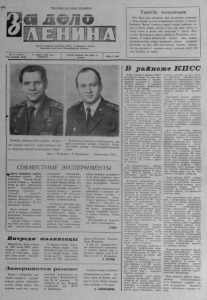 Пролетарии всех стран, соединяйтесь! ■•«яев! Орган Северного рай к ом а КПСС и районного Совета народных д еп у тато в Новосибирской области № 31 (4693 ) 11 Год издания 43-й м а р т а 1978 года СУББОТА Г аз е та выходит три р а з а в неделю Цена 2 коп. Командир международного экипажа космического корабля «Союз-28», Герой Советского Союза, полковник Алексей Александрович Губарев. у Фото А. Пушкарева и В. Черединцева Космонавт-исследователь международного экипажа космического корабля «Союз-28» Владимир Ремек, капитан Чехословацкой Народной армии. (Фотохроника ТАСС) СОВМЕСТНЫЕ Э КС П Е РИ М ЕН ТЫ ш Центр управления полетом. Продолжают работать Юрий Романенко, Георгий Гречко, Алексей Губарев и Владимир Ремек на борту орбитального научно - исследовательского комплекса «Салют-6» «Союз-27» — «Союз-28». Рабочий день международного экипажа начался в 8 часов утра и завершится в 23 часа московского времени. После контроля бортовых систем и завтрака космонавты продолжают выполнение программы полета. Алексей Губарев и Владимир Ремек проводят совместный советско-чехословацкий эксперимент «Экстинкция» по наблюдению за изменением яркости звезд при заходе их за ночной горизонт Земли. Эти исследования выполняются с целью получения экспериментальных данных о наличии на высотах в 80 — 1 00 километров пылевого слоя, образованного микрометеоритами. В интересах изучения окру, жающей среды проводятся наблюдения отдельных районов поверхности Земли и акватории мирового океана. Космонавты занимаются также физическими упражнениями, ведут телевизионные репортажи, выполняют очередные операции проводящего" ся на борту комплекса советско-чехословацкого биологического эксперимента «Хлорелла». По данным телеметрической информации и докладам экипажа,.. бортовые системы и научная аппаратура космического комплекса «Салют-6» — «•боюз-27» — «Союз-28» работают нормально. Самочувствие членов международного экипажа товарищей Романенко, Гречко, Губарева, Ремека хорошее. Исследования на околоземной орбите ' продолжаются. (ТАСС ) ипереджж ж а л м н о в щ ы Малиновская ферма колхоза им. XXII съезда КПСС сейчас занимает в районе первое место. За сутки здесь надаивают более десяти килограммов молока от коровы. Близки к завершению подготовки техники к весенне- полевым работам ремонтники колхоза «Новая жизнь». Уже исправен почти весь сельхозЗа февраль лучших результатов добилась доярка Анна Яковлевна Зубко. Она получила от каждой коровы своей группы по 2 7 5 килограммов молока. По 2 6 0 килограммов инвентарь. Заканчивается ремонт сеялок в Ивановской бригаде. Из 34 тракторов — 32 исправны, на ходу. Поставил в мастерские свой ДТ-75 В. Владимиров. надоила Екатерина Севастьяновна Желдакова. В том, что социалистические обязательства выполняются успешно, немалая доля и скотников дойного гурта В. II. Тншечко и И. В. Друзелевича. П. ПЕТРОВ Большую помощь оказывают механизаторам во время ремонта токарь Н. Курцев, сварщик А. Садов. Ремонт техники будет закопчен к 15 марта. Б. А Л Е КС АНД РО В . З а в е р ш а е т с я р е м о н т Tpaccbi плодородия УФА. Более двух миллионов тонн органических удобрений в месяц вывозят на поля механизаторы колхозов и совхозов Башкирии. Многие хозяйства решили создать надежную основу будущего урожая, довести в этом году дозу навоза на гектар пашни до десяти тонн. Среди них — колхоз 