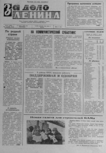 Пролетарии всех стран, соединяйтесь! Орган Северного райкома КПСС и районного Совета народных депутатов Новосибирской области Год № 32 (4 6 9 4 ) 14 марта 1978 года издания 43-й ВТОРНИК Газета выходит три раза в неделю Цена 2 коп. Программа выполнена успешно Ю марта 1 9 7 8 года после успешного завершения программы работ на борту орбитального научно-исследовательского комплекса «Салют-6» —- «Союз-27» —• • «Союз-28» международный экипаж в составе Героя Советского Союза летчика-космонавта СС Р Губарева Алексея Александровича и космонавта-исследователя гражданина ЧС Р Ремека Владимира возвратился на землю- Космонавты товарищи Романенко и Гречко продолжают работу на борту орбитальной станции «Салют-6». Посадка спускаемого аппарата космического корабля «Союз-28» произошла в заданном районе территории Советского Союза в 3 1 0 километрах западнее города Целинограда. Самочувствие товарищей Губарева и Ремека посде приземления хорошее. ( Т А С С ) По родной стране У дарная ва хт а животноводов С каждым днем ширится социалистическое соревнование сельсних тружеников страны в ответ на Письмо ЦК КПСС, Совета Министров СССР, ВЦСПС и ЦК ВЛКСМ. В этом важном документе большое внимание уделено развертыванию соревнования за увеличение продукции жи в о т н о в о д с т в а . О делах работ* ^ й и к о в ферм рассказывают корреспонденты ТАСС : Барнаул. У лидеров соревно- вания из колхоза «Победа» каждое животное в их группах прибавляет в весе до килограмма в сутки. Отличные результаты име- ют и другие животноводы Алтая. Это позволило Тогульскому и еще некоторым районам досрочно выполнить план первого квартала по продаже мяса государству. Труженики ферм кРая обязались продать в нынешнем году 327 тысяч тонн мяса — значительно больше прошлогоднего. Налуга. Досрочно вышла на проектный рубеж крупнейшая в области Неделинская птйцефаб- . Отсюда в магазины с на- года отправлены десятки тонн индюшиного мяса. Операторы применили раздельный способ откорма. Индеек, которые раньше прекращают рост, снимают через четыре месяца, а индюков, продолжающих набирать вес, откармливают еще месяц. За это время они достигают девяти-десяти килограммов- В ре. зультате общий привес по сравнению с плановым увеличился в полтора раза. В от ряды м е х а н и зат о р о в Начались экзамены в новом учебном комбинате объединения «Агрокомплекс» Рыжканского района Молдавии. 2 5 0 помощников трактористов и прицепщиков, направленных на учебу хозяйств вами, четыре месяца изучали теоретический курс, осваивали современную сельскохозяйственную технику. Первые выпускники учебного комбината с удостоверениями трактористов-машини- стов вернутся в свои хозяйства к началу посевной. В предстоящую страду на поля Молдавии выйдут 45 тысяч тракторов, большое количество другой техники. В республике позаботились о том, чтобы передать ее в надежные руки. К весенним полевым работам отряд сельских механизаторов пополнят -семь тысяч человек. (T A C D ) рика чггаа НА КОММУНИСТИЧЕСКИЙ СУББОТНИК! 1 9 1 6 год. Голод, разруха, наступление контрреволюции. Величайшее напряжение требуется от людей Советской республики не только на фронтах, но и в тылу. Фронт требовал оружие, боеприпасы, обмундирование, город требовал хлеба и топлива. В это необычайно трудное время возникла новая форма общественного тру- да, труда освобожденного — субб