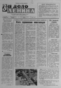 Пролетарии всех стран, соединяйтесь! Орган Северного райкома КПСС и районного Совета народных депутатов Новосибирской области № 33 (4695 ) Год издания 43-й 16 марта 1978 года ЧЕТВЕРГ Газета выходит три раза в неделю Цена 2 коп. ПОЛЕТ П РОДОЛЖ АЕ ТС Я Центр управления полетом. Д ев ян о сто шестой день р а б о тают в околоземном космическом п ространстве Юрий Р о м а ненко и Георгий Гречко. В соответствии с программой полета э ки паж приступил к операциям по консервации бортовых систем станции «С алют-6», а т а к ж е научной ап п а р а ту ры н приборов, р а б о т а с которыми у ж е закончена. В ходе сегодняшнего д н я космонавты выполняют ра боты по техническому обслуживанию станции и к о р а б л я , з а н и м а ются физическими упражнениями на комплексном т р ен аж е . В физических тр енировк ах э ки паж используе т вакуумный костюм «Чибис». Выполнен очередной эксперимент по определению вл ияни я космической среды на оптические свойства иллюминаторов. Космонавты провели фотограф иров ан и е иллюминаторов д ля последующего ан а л и з а и учета возникающих в ходе полета искажений. В р а й к ом е КПСС, исполкоме райсоветами р а й к ом е пр оф сою за Итоги соревнования животноводов З а д о с р о ч н о е в ы п о л н е н и е Коллектив Р я з ан с к о й фермы колхоза им. М. Горького борется з а досрочное выполнение годового з а д ан и я по п р о да ж е молока гос ударству. И работники фермы д о к азы в аю т это на деле. З а ян в арь и февраль молока получено более 366 центнеров, надой на одну ф ураж ную корову составил по 355 килограммов. В данное время эта ферма з ан им ае т по колхозу первое место. В сутки от к а ж д о й коровы н ад аи в аю т по 9 килограммов, что выше на эту ж е д а т у прошлого года на килограмм. ^ В соревновании среди доярок ’• п е р в е н с т в о принадлежит Г. В. Хо- тулевой. З а ян в ар ь и ф ев р ал ь она получила в среднем от к а ж д о й к о ровы своей группы по 431 килограмму молока. Сейчас в сутки она н а д а и в а е т от к а ж д о й коровы более девяти килограммов. Почти столько ж е надив ае т В. Г. Д ем ь янова. З а с л у ж и в а ю т добрых слов скотники дойного гурта И. Г. Д емь ян ов и И. В, Волохович. Д в а года раб отае т телятницей коммунист ка В. В. Ж е л у д о в а . Она добив алас ь хороших привесов, не допус кала п ад еж а . Сейчас у . нее в группе 60 новорожденных телят. З а ян в а р ь и февраль суточный привес к а ж д о г о теленка составил 835 граммов. Свое о б я з а тельство, сохранить всех тел ят, она выполняет успешно. П. АНДРЕЕВ. ТРУДОВЫЕ Д О С Т И Ж Е Н И Я О тв ечая делом на Письмо Ц К КПСС, Совета Министров СССР ВЦСПС и Ц К ВЛКСМ о р а з в е р - - тыванни социалистического соревнования з а выполнение госу д ар ственных планов третьего года десятой пятилетки, группа водителей автотранспортного предприятия «Транссельхозтехника» выполнила к в ар та л ьн о е зад ан и е з а д ва месяца. Самые высокие показатели у В. Ф. Б а г р о в а . На ав томобиле З И Л - 133 при плане 255 тонн он доставил 353 тонны грузов, п роделав 65 ты сяч тонно- километров . Таким образом, к в а р тальный план грузоперевозок выполнен на 138, а план г рузооб о р о т а—на 108 процентов. И. И. Цыплаков на автомобиле «Урал-377» перевез 454 тонны, или план грузоперевозок выполнил на 100,8 процента. Н. В. Герасимов на бензовозе ГАЗ-53 доставил 144 тонны нефтепродуктов . при этом п р оде ла л 20 тысяч тонно-километров. План грузооборота со с та в л я е т 111 процентов к к в а р т а л ьн ом 