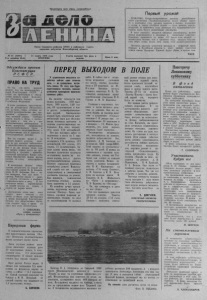 Пролетарии всех стран, соединяйтесь! Орган Северного райкома КПСС и районного Совета народных деп утатов Новосибирской области № 35 (4697 ) 21 м а р т а 1978 года Г аз е та выходит три р а з а в Цена 2 коп. Год издания 43-й ВТОРНИК неделю Первый урожай ДУШ АН БЕ . Специализи рованные совхозы респуб ли кан ского управления «Таджикплодоовощ » вед ут у б орку перво го в нынешнем году у р о ж а я моркови и свеклы, посеянных с осени, а т а к ж е столовой зелени — лука , щ а в е ля , укропа, петрушки. В нынешнем году площади под огородными к у л ь турами зд есь бу ду т зн ач ите льно увеличены. В пяти со в х о з ах в в о д я т с я овощные севообороты , ранние овощи выращиваю тся в ангарных и тоннельных укры тиях. Намечено произвести не менее 110 тысяч тонн овощей ■— зн ач ите льно больше, чем в прошлом году, п рода ть г о с у д а р ству сверх плана около пяти тысяч тонн ранней продукции. Н а чал а сь высадка ка пустной р ас сады в открытый грунт. Первым в Кулябской области к этой р а б о т е приступил совхоз имени Н а з а р о в а . У р ож ай б у де т уб ран в нач ал е мая. TACG ПЕРЕД ВЫХОДОМ В ПОЛЕ Обсуждаем проект Конституции Р С Ф С Р ПРАВО НА ТРУД Не т а к уж много времени прошло, к а к мы познакомились с новой Конституцией СССР. А сейчас мы приступили к о б с у ж дению проекта новой К онститу ции (Основного З а к о н а ) нашей Российской Федерации. В этом документе , п р едставлен ном на всенародное об суждение, есть и т а к и е с лов а , ко то рые к а саются непосредственно нас, т р у жеников сельского хозяйства . Мне, молодой доярке , особенно дороги мысли о труде, о к о л х о з ной земле, о том, что у нас последовательно п ретворяется в жизнь программа превращения сельскохозяйственного т р у д а в разновидность индустри ального, о преобразовании сел и дер ев ен ь в благоустроенные поселки. Все это хорошо видно и на примере нашего колхоза , к о т о рый не р а з выходил победителем в социалистическом соревновании. Вот и з а д в а месяца этого года мы з ан ял и первое место по про изводству и п р о д а ж е ж и в о т н о водческой продукции. Кроме того, нашей Биазинской ферм е вручен вымпел з а сд ачу качественного молока. В коллективе фермы сейчас лучшие р е зу л ь т а ты по надою моло к а имеют доярки М. К. Е в д о к и мов а, В. И. Алдасева . Это — н а ши в етер аны, они д л я меня — пример. Р а б о т а я ряд ом с ними, не хочется о тста в а ть , а наоборот ста р а еш ь с я идти в ногу, И вот р е зу л ь т а т так ого соревнования: по надою молока на корову я 9 вышла на первое место. » Д о с т и ж ен и я лично мои, моих подруг, всего колхоза — это в к л а д в общее дело претворения в жизнь положений Конституции. Потому что общественное б о г а т ство с о з д а е т труд, а п р аво на тр у д нам д а л а Конституция. Т. СОБОЛ ЕВА . д о я р к а колхоза «Путь к коммунизму». П е р е д о в а я ферма В социалистическом соревновании животноводов колхоза «Восход» Витинская молочнотоварная ферма занимает первое место. Здесь улучшен рацион кормления животных: коровам дают 12 килограммов силоса, 5 килограммов сена, 2,5 килограмма концентратов. В начале зимовки рацион был гораздо скуднее. Идет растел. Растут надои. В январе они составляли 2 ,5 килограмма на фуражную корову за сутки, а сейчас — >6,7 килограмма. Самый высокий результат по бригаде у М- И. Петровой: от каждой коровы она надаивает по 7,4 килограмма молока. Б . Б О Р И С О В . У т р у ж е н и к о в с е л ь с к о г о х о з я й с т в а