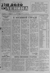 Пролетарии всех стран, соединяйтесь! Орган Северного райкома КПСС и районного Совета народных депутатов Новосибирской области № 39 (4701) Год издания 43-й 30 марта 1978 года Газета выходит три раза в ЧЕТВЕРГ неделю Цена 2 коп. Быстрее и лучше Б арн аул . В отв ет на постан овление партии и правите льс тва о дополнительных мерах по успешному проведению весеннего се ва земледельцы А лтая уси ливают подготовку к в аж н о й сельскохозяйственной кампании. Бы стрее и лучше, чем в прошлом году, о р г ан и зо ван ремонт техники в х о з яй с т в а х Мамонтовского, Тал ьмен ск ого, Бур- линского, К расноще ков ского и других районов к р а я . Впереди по всем п о к а з а т е л я м идут механизаторы Б лагов ещ ен ского район а — инициаторы кр а ево го социалистическо го со р е вн о ван ия з а досрочную подготовку се льск охозяйственной т е х ники к полевым р а б о т ам третьего года пятилетки. Хоть се годня готовы выйти в поле хл еборобы со вх о з а «Долинский». Зд ес ь з а к а н ч и в а е т с я к ом плек товани е 12 сея- лочных агр е г ато в , к о то ры е объединены в четыре к ом плек сных звена. (ТАСС) Обсуждаем проект Конституции РСФСР Присо единяю т с в о й г о л о с Обсуждение проекта Консти туции Р С Ф С Р состоялось в к о л лективе колхоза «Н ов ая жизнь». Горячее одобрение и ед инодуш ную п о дд е рж к у вызв али у . р а ботников х о зяй ств а , сельской интеллигенции, молодежи статьи Основного З а к о н а Российской Федерации. — В резу л ь т а т е созидательной деятельности советского народа под ру ководством Коммунисти- ш ческой партии,— с к а з а л а на соб- f р а н и и ' директор школы 3 . Н. -г Голубева ,— в СССР построено р азв и то е социалистическо е’ общество — общество подлинной сво- б < -» к людей т р у д а . Мы, учителя , в с г ^ р у ж е н и к и села присоединяем свой голос од обрения к миллионам голосов советских людей, потому что на дел е ощ ущаем ту огромную з а б о т у нашей партии и п р авительства о тр уж ени к а х советской деревни. —Большое внимание в К онс титу ции Р С Ф С Р уделено народному образов анию . С тать я 25 гласит: «В Р С Ф С Р существ ует и сов ер шенствуется едина я си стем а н а родного о б р а з о в ан и я , ко то р а я обеспечивает о б щ е о б р а з о в а т е л ь ную и профессиональную подготовку г р а ж д а н » ,— п р о до лж а ет Зи н аи да Ни ко л ае вн а . — Е ж е г о д но наши выпускники поступаю т в 9 клас с, СПТУ, техникумы, учат ся в вечерних и заочных школах . Учатся в 11 клас се вечерней школы В. П. Фомин и Н. К. Салмин, в 10 классе — Ф. Е. Филиппов и Г. Н. Д е д к о в а , в с е ль ск охозяй ст венном техникуме В. Ильин и Ильина. Все это говорит о т о м , лчто мы получаем нео гр ан и ченное право на о бразов ан ие , з аписанное в ста тье 43 Консти туции, и реализуем его по-н астоящему. Участники собрания ед и нод уш но про голосовали за принятие проекта ’ новой Конституции РСФСР . Г. ГРИГОРЬЕВ. В счет = ....... В е с н е — к о м п л е к с н у ю г о т о в н о с т ь К П О С Е В Н О Й С Т Р А Д Е Наш к о л х о з выступил инициатором соревнования механизаторов района за своевременную комплексную подготовку техники к весенне-полевым работам 1 9 7 8 года. Сейчас еще на полях лежит снег, но не так уж много осталось времени до первой весенней борозды. Выезд в поле всегда вызывает волнение у механизаторов. Этот год у нас обойдется без весенней пахоты: мы успели поднять зябь под весь яровой клин — более 2 5 0 0 гектаров. Но все же намерены этот день отметить 