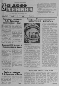 Проле т арии всех с т р а н , соединяйт е сь ! Орган Се в е рно г о р а й к о м а К П С С и районног о Со в е т а н а р о дных д е п у т а т о в Новосибирской об ла с т и № 44 ( 4 7 0 5 ) 11 а пре ля 1978 г о д а Г а з е т а в ых оди т три р а з а в Це на 2 коп. Год из дания 43-й В Т О Р Н И К неделю Вчера в бол ьшом зале обл и с пол к ом а с о с т о я л о с ь обл а стн о е собрание предс тавителей районные с о в е т о в к о л х о з о в . В ег о р аб о т е приняли уч астие ок о л о ч е ты р е х с о т д ел е гат ов , р у к о в о дители хозяй с тв , специалисты. С отчетным д окл ад ом о р а б о т е о б л а с т н о г о со вета к о л х о з о в в 1977 г о д у и задачах к о л х о з о в по дальнейшему развитию с е л ь ск ох озяй ств ен но г о п ро и зв о д с т ва в св ете решений д е к а б р ь с к о г о (1977 г.) Пленума Ц К КПСС выступил пред сед атель о б л а с т н о г о сов ета ко л х о з о в А. В. Новиков . Выступившие в прениях р уководители х о з я й с т в , специали сты, полеводы и ж и в о т н о в о д ы говорили о н е д о статк а х в ра б о т е к о л х о з о в обл а сти , вскрывали резервы для дальнейшего развития с е л ь ск ох озяй ств ен но г о п рои зводства. На собрании выступил секретарь о бк ом а КПСС Н. Г. Соруков. Был избран новый с о с т а в о б л а с т н о г о с о в е т а к о л х о з о в и е го президиум. Посещение товарйщем Л. И. Брежневым Тихоокеанского флота ъ Генеральный секретарь ЦК КПС , Председатель Прези диума Верховного Совета СССР, Председатель Совета обороны СССР Л .И. Брежнев в сопровождении члена По литбюро ЦК КПСС, министра обороны СС Р Д. Ф. Устино ва и главнокомандующего Во енно-Морским Флотом СС Р адмирала флота Советского Союза С. Г. Горшкова 7 апре ля посетил Краснознаменный Тихоокеанский флот. Товарищи Л. И. Брежнев, Д. Ф. Устинов, С. Г. Горш ков, генерал армии И. М. Третьяк вместе с командую щим Краснознаменным Тихо океанским флотом адмиралом В. П. Масловым на крейсере выходили в море, наблюдали за двусторонним учением сил флота, за действиями отряда боевых кораблей, которые в ходе учения вели бой с разно родными силами другой сто роны. Товарищ Л. И. Брежнев отметил, что . морякитихооке анцы показали хорошую выуч ку, умело вели борьбу с под водными лодками, надводными кораблями и авиацией. Он отметил также высокий уровень организации управ ления силами и средствами флота. По окончании учения не ред его участниками на крей сере «Адмирал Сеиявин» вы ступил товарищ Л. И. Вреж нев. Товарищ Л. И. Брежнев в Комсомольске-на-Амуре Тысячи жителей Комсо мольска,--на-Амуре тепло при ветствовали прибывшего 8 апреля в этот город Леонида Ильича Брежнева. . Товарищ Л. И. Брежнев по бывал на историческом месте Комсомольска-на-Амуре — у гранитного монолита, на кото ром высечены слова: «Здесь 10 мая 1932 года высади лись первые комсомольцы — строители города». Он осмот рел построенный два с поло виной года назад мост через Амур, который называют во сточными воротами строящей ея Байкало-Амурской магист рали, новостройки города. Леонид Ильич посетил ма 9 апреля товарищ Л. И. Брежнев отбыл из Владиво шиностроительные заводы имени Ю. А. Гагарина и име ни Ленинского комсомола. Он беседовал в цехах с рабочи ми, инженерами, интересовал ся условиями труда и быта, заработной платой, эффектив ностью производства. На машиностроительном за воде имени Ленинского ком сомола Леонид Ильич Бреж нев выступил перед предсга вителями рабочих города. Товарищу Л. И. Брежневу под продолжительны