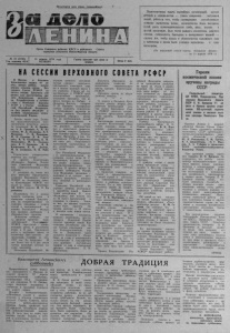 Пролетарии всех стран, соединяйтесь! Орган Северного райкома КПСС и районного Совета народных депутатов Новосибирской области № 45 (4 7 0 6 ) Год издания 43-й 13 апреля 1978 года ЧЕТВЕРГ Газета выходит три раза в неделю Цена 2 коп. НА С Е С С И И В Е Р Х 0 В Н 0 Г 0 С1 ОВЕТ Первостепенная задача партийных оргайизаций, руково дителей и специалистов — умело направить энтузиазм людей, добиться того, чтобы соревнование способствовало лучшему выявлению новых, экономически более выгодных путей роста производительности хлеба, мяса, молока и другой продукции. Дело чести каждого коллектива, рабочего совхоза, специалиста, бригадира и заведующего фермой — сделать все, чтобы планы и обязательства нынешнего года и пятилетки в целом были успешно выполнены и пере выполнены. (И з передовой статьи га з е ты «С ель ская жи зн ь» з а 11 а п р е л я 1978 г.) > В Москве, в Большом Кремлевском дворце 10 ап реля начала работу внеоче редная седьмая сессия Вей ховного Совета РСФСР де вятого созыва. Депутаты соб рались для рассмотрения про екта Конституции республи ки. Разработанный в соответ ствии с Основным Законом СССР и с учетом особенно стей Российской Федерации, он был широко обсужден и одобрен тружениками много национальной России. Д е с я т ь часов утра . Бурны ми. продолжительными апло дисмен тами встретили деп ута ты товарищей Л . И. Брежне ва, А. А. Громыко, А. Н. Ко сыгина, Ф. Д . Кулакова, К. Т. Мазурова, Г. В. Романова, М. А. Суслова, Д . Ф. Усти нова, В. В. Кузнецова, Б. Н. Пономарева, М. С. Соломен цева. К. У. Черненко, И. В. Капитонова, В. И. Долгих, М. В. Зимянина, Я. П. Рябо ва. Единогласно у т в е р ж д а е т с я повестка дня сессии: О проекте Конституции (Основного З а к о н а ) России ской Советской Ф едератив ной Социалистической Рес публики. С д о к л ад ом по этому воп росу выступил П р е дс ед ател ь комиссии Верховного Совета Р С Ф С Р по подготовке проек т а Конституции Р С Ф С Р , кан д и д а т в члены Политбюро Ц К КПСС деп у т а т М. С. Со ломенцев . П одчеркнув, что в основу п роекта положены идеи и принципы союзной Конститу ции, он о х а р а к т е р и з о в а л по л ож ен и я , с в яз ан ны е с полити ческой и экономической ос новами Российской Федера • ции, прав ами , св ободами и о бязанностями г р а ж д а н . Д о к л а д чи к сообщил, что со времени принятия ныне дей ствующей Констивущии Р С Ф С Р ежегодный н ац ио нальный доход в республике вырос в 16 р а з . . П ромышлея ность в н а сто ящ ее вр ем я за полмесяца д а е т столько ж е продукции, ск олько з а весь 1937 год. З а последние 40 лет более чем в 6 р а з увели чились реальные д оходы на душу населения. Экономика Российской Фе дерации я в л яе тся сос тавной частью единого народнохо зяйственного комплекса стр а ны и вносит весомый в к л а д в его развитие . Г о во р я об осу ществляемых в Р С Ф С Р круп номасштабных п р о гр амм а х , д о к л а д чи к напомнил , что во время поездки по Сибири и Д а л ьн ем у Востоку тов арищ Л. И. Б р еж н е в подчеркивал особую в аж н о с т ь комплексно го интенсивного р а зв и т и я во сточных районов Российской Федерации, о б р ащ а л внима ние на необходимость тесной увязки промышленного и се льскохозяйственного развн тия, решения производствен ных и социальных вопросов. Д о к л а д ч и к з а в е р и л Центра'Ль ный Комитет пар ти и. Л еон и да Ильича Б р еж н е в а в том, что тр у д ящ и е с я Р С Ф С Р п р ил ож а т все силы д л я безусловного выполнения постав ленных 