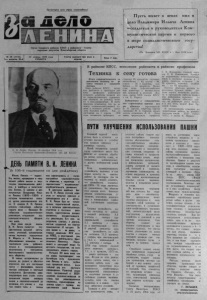 Пролетарии всех стран, соединяйтесь! Орган Северного райкома КПСС и районного Совета народных депутатов Новосибирской области № 49 (4710 ) 22 апреля 1978 года Газета выходит три раза в Год издания 43-й СУББОТА неделю Цена 2 коп. П у с т ь живет в веках имя и дело Владимира Ильича Ленина —создателя и руководит еля К о м мунистической партии и первого в мире социалистического г о с у дарства! (И з Призывов Ц К КПСС к 1 М а я 1978 года) _ ДЕНЬ ПАМЯТИ В. И. ЛЕНИНА [к 1 0 8- й г о д о в щ и н е с о дня р о ж д е н и я ) Ж и зн ь Ленина — подвиг. Это ж и з н ь , прошедшая в твор ческой работе мысли и неус танном революционном дейст вии, в идейных и политичес них битвах. С именем и дея тельностью Владимира Ильи ча Лен и н а ( 1 8 7 0 — 1 9 2 4 ) в истории человечества связа на целая революционная эпо ха. С именем В. И . Ленина связано главнейшее событие нашего века — Великая Ок тябрьская социалистическая революция, открывшая эру коммунистического обновле ния мира. Всю свою яркую жизнь В. И . Ленин посвятил осу ществлению великой мечты своих учителей, основополож ников научного коммунизма К . М ар кса и Ф. Энгельса, обосновавших всемирно - ис торическую роль рабочего класса в ниспровер жении капитализм а и построении бесклассового коммунистичес кого общества. В новых исторических ус ловиях он развил и обогатил марксизм , все его составные части — философию, полити чес кую экономию и научный коммунизм. Достоянием рево люционеров всех стран стали ленинска я теория империя лизма и социалистической ре волюции, его учение о пар тии нового ти па, о гегемо нии пролетариата, о путях построения социалистическо го общества, о хар актер е и перспективах национально- освободительного движения. В ж е с т о к и х идейных бит вах В. И. Ленин отстоял марк сизм от попыток ревизии и превращения его в догму. В. И. Ленин был не только гением теоретической мысли, но й великим революционным стратегом и т а к т и к о м рево люции, п р акт и ч еским вождем дв иж ен и я , осуществившего эту революцию. Его имя не раздельно слилось с деятель ностью созданной им партии коммунистов . И сегодня Ле нин ж и в ет в ее делах, в мудрых решениях X X V съез да КПСС , в неустанной пло дотворной деятельности Цент рального Комитета. Ленин ж и в е т в растущей мощи Со ветского государства, во всех свершениях нашего народа. История X X в ека всем сво им ходом подтверждает нео бычайную силу проникнове ния Ленина в су ть глубин ных процессов эпохи , высо ч а й ш и й дар его научного предвидения. Развитой социа лизм, построенный в СССР, мировая социалистическая си стема, все революционные перемены, происходящие на земном ш а р е ,— прямое осу ществление идей Ленина . В. И. Ленин. М осква . 16 о к т я б р я 1918 года. (Архив Института мар кси зм а -л ен ин и зм а при Ц К КПСС) В райкоме КПСС, исполкоме р ай сов ета и райкоме п р о ф с о ю з а Техника к Итоги социалистического со ревнования колхозов по ре монту техники и сельхозин вентаря. Бюро р айком а КПСС. испол ком райсов ета и президиум рай кома профсоюза работников сельского хозяйств а подвели ито ги социалистическо го соревнова ния хозяйств по ремонту техни ки и сельхозинвентаря. В поста новлении отмечается , что по ре монту сельекохозяйствен1ной тех ники в к о л х о з а х рай она ироде л а н а б о льш а я раб о та . Так , по состоянию на 1 апреля 1978 года готовность тр ак то р о в со с е в у готова с т а в л я л а 90 процентов ,