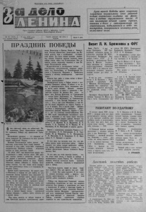 Пролетарии всех стран, соединяйтесь! № 56 (4 7 1 7 ) I 9 мая 1978 года Газета выходит три раза в Год издания 4 3 - й | ВТОРНИК неделю Цена 2 коп. Орган Северного райкома КПСС и районного Совета народных депутатов Новосибирской области П Р А З Д Н И К П О Б Е Д Ы Москва. У могилы Неизвестного солдата . Q мая с о в е т с к и й народ, его доблестные Во- * * о р уж е й н ы е Силы т о р ж ес тв е н н о отмечают 3 3 го д ов щ и н у Победы над ф ашистской Германи ей . Сего д н яш н и й п р а з д н и к — это п р а з д н и к и с т и н н о н ар о д ны й . Он отмечается во всех у г о л к а х нашей необъ ятной Родины. В е л и к а я Отечественная война пр о ти в фаш и с т с к и х з а х в а т ч и к о в была самой тяж ел о й и ж е с т о к о й из всех во й н , ко гда -либо п е р е ж и т ы х человечеством. Особенно суровы е и с п ы т а н и я вы п ал и на долю с о в е т с к и х людей. 2 2 и ю н я 1 9 4 1 года ф аш и с т с к а я арм и я , н ас ч и т ы в а ю щ а я в своем составе около 2 0 0 д и в и з и й , т ы с я ч и т а н к о в и самолетов, д е с я т ки т ы ся ч орудий и минометов, м нож е с тв о боевых корабл ей, вероломно напала на н аш у Родину. У п о ен ны е своими победами в Ев ропе, г и т л е ровц ы с ч и та л и , что они т а к ж е л е г к о о с ущ е с т в я т свои а гр е с с и в н ы е п л а ны и в о тн о ш е н и и Сов е т с к о го Союза. Однако в р а ги п р о с ч и т а л и с ь . На з а щ и т у сво его Отечества в п ервы е ж е дни в о й н ы по зову л е н и н с к о й па р т и и поднялся весь с о в е т с к и й н а род. О р ган и з у я разгр ом в р а га , п а р т и я исходила из л е н и н с к и х у к а з а н и й : « . . . Р а з дело дошло до в о й н ы , то все д олж но бы ть под чинено и н т е р е сам в о й н ы , вся в н у т р е н н я я ж и з н ь с т р а н ы долж н а быть подчинена войне, ни малейшее к о л е бание на этот счет н ед оп у с т и м о» . В невиданно ко р о т к о е время страна превра тилась в е д и ны й боевой ла герь , о х в а ч е нн ы й единым п о р ы в о м ,— разбить врага , и з г н а т ь его с родной земли. Наш народ н и к о г д а не забудет п о д в и ги г е роев Б ре с т с кой к р е п о с т и , м у ж е с т в е н н ы х з а щ и т н и к о в Л ени н гра д а и Одессы, Киева и Севастопо ля. Разгром ф аш и с т с к и х з а х в а т ч и к о в под Мос к в о й развеял миф о непобедимой г и т л е р о в с ко й армии. Это было первое к р у п н о е п о р а ж е ние немцев . Огромное военное значение имела победа н аш и х в о й с к под Сталингр адом. Она п о ложил а начало к о ре н н ом у перелому в ходе Ве л и к о й Отечественной в о й н ы . Осущ ествленны е в последующем смелые . и решительны е н а с т у п а т е л ь н ы е операции н а ш и х в о й с к под Л ени н гра д о м , на Правобережной У к раине, в Б ел оруссии , Молдавии и П р и ба л ти ке п ривел и к по лному освобождению со в е т с к ой земли. Фашизм был добит в своем логове и безоговорочно к а п и т у л и р о в а л . Определенный вк л ад в Победу внесли и т р у дящиеся Северного района . В в о й с ка и на ра боту в п р ом ы ш л ен н о с ть было направлено о к о ло шести т ы с я ч ч ел о в е к . Целыми семьями уходили северяне на фронт и ср а ж а л и с ь с беззаветной о тв а го й . Из деревни Ича у ш л и на Фронт п я т ь братьев Д ъ я ч у к о в , из Г р ажд анц ев о — четыре брата А г р ы з к о в ы х , из Потюнаново — четыре брата Ж а р и к о в ы х , из Ч у в а ш и н с к о г о сельсовета — п я т ь братьев А н д реевы х , из У р - г у л я — отец и два сы н а М а к а р о в ы х и еще более 5 0 семей н а п р а в и л и на з а щ и т у Родины от 3 до 5 ч ел ове к. Эти и д р у ги е люди я ви л ись к о с т я к о м в ф ормировании с и б и р с к и х до