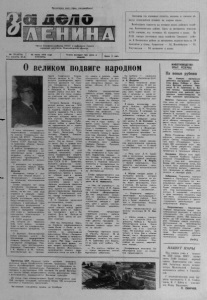 Пролетарии всех стран, соединяйтесь! Орган Северного райкома КПСС и районного Сонета народных депутатов Новосибирской области N2 70 (4731) 10 июня 1978 года Газета выходит три раза в ! он и з д а н и я 4 3 -й СУББОТА неделю Цена 2 коп. Завершив сев кормовых к у л ь т у р , колхозы и совхозы области переключили т е х н и к у на подъем паров. Наибольшего прироста на вспашке паров добились хозяй ства Черепановского района. Здесь за п яти дн ев ку вспахано 4 2 7 6 гек таров , что составило 4 5 процентов к п л ан у . На 2 1 3 1 гек таре заготовили пары хозяйств а Северного района. В Кочновском районе за п я ти дн е в к у подняли пары на 2 9 процентов к п л а н у , Ордынском — 2 6 , Искитимском — 2 6 , Тогучинском — 2 0 процентов к плану . О великом подвиге наро дн о м 8 и ю н я с о с т о я л а с ь н а у ч н о - т е о р е т и ч е с к а я к о н ф е р е н ц и я по к н и г а м Г е н е р а л ь н о г о с е к р е т а р я Ц К К П С С , П р е д с е д а т е л я П р е з и д и у м а В е р х о в н о г о С о в е т а С С С Р Л е о н и д а И л ь и ча Б р е ж н е в а « М а л а я З е м л я » и « В о з р о ж д е н и е » . В р а б о т е к о н ф е р е н ц и и п р и н я л и у ч а с т и е п а р т и й н о - х о з я й с т в е н н ы й а к т и в р а й о н а , в е т е р а н ы в о йн ы и т р у д а , р а б о т н и к и п р о с в е щ е н и я и к у л ь т у р ы , р а б о ч и е и к о л х о з ни к и . С д о к л а д о м на к о н ф е р е н ции в ы с т у п и л п е р в ы й с е к р е т а р ь р а й к о м а К П С С И. Ф. Денисов. Д о к л а д ч и к , г о в о р я о з н а ч ен и и к н и г « М а л а я З е м л я » и « В о з р о ж д е н и е » , п о д ч е р к н у л их о г р о м н о е в о с п и т а т е л ь н о е з н а ч е н и е . Б о л е е т р и д ц а т и л е т н а з а д п р о г р е м е л и п о с л е д н и е з а л пы В е л и к о й О т е ч е с т в е н н о й в о й н ы , но е е э х о в с е е щ е о т д а е т с я в с е р д ц а х с о в е т с к и х л ю д е й , в т я ж е л е й ш е й б о р ь б е о т с т о я в ш и х ч е с т ь , с в о б о д у и н е з а в и с и м о с т ь О т ч и з н ы , с у м е в ш и х в к р а т ч а й ш и й с р о к в о с с т а н о в и т ь р а з р у ш е н н о е и с д е л а т ь б о л ь ш е е : п р е в р а т и т ь с т р а н у в п е р е д о в о е го с у д а р ^ с т в о м и р а в э к о н о м и ч е с к о м , к у л ь т у р н о м , п о л и т и ч е с к о м и н а у ч н о м з н а ч е н и и . В С С С Р в ы р о с л о п о к о л е н и е , к о т о р о е не п е р е ж и л о в с е х т я г о т в о й н ы , к о т о р о е з н а е т о ней по к и н о ф и л ь м а м , в о с п о м и н а н и я м в е т е р а н о в , по к н и г а м . О В е л и к о й О т е ч е с т в е н н о й в о й н е н а п и с а н о м н о г о . З а п р о ш е д ш е е т р и д ц а т и л е т и е с о з д а н а б о л ь ш а я б и б л и о т е к а м е м у а р н о й л и т е р а т у р ы . Н а м о с т а в и л и с в ои в о с п о м и н а н и я М а р ш а л ы С о в е т с к о г о С о ю з а Г. К . Ж у к о в и В. И. Ч у й к о в , п р о с л а в л е н н ы й ' а с , т р и ж д ы Г е р о й С о в е т с к о г о С о ю з а , М а р ш а л а виа ции А . И. П о к р ы ш к и н , р у к о в о д и т е л и п а р т и з а н с к о г о д в и ж е н и я на У к р а и н е , Б е л о р у с с и и , в К р ы м у П. В е р ш и г о р а , Д . М е д в е д е в , А . Ф е д о р о в , И. К о з л о в . И к а ж д а я с т р о к а э т и х к н и г б е с ц е н н а , и б о э т о г о л о с о ч е в и д ца, у ч а с т н и к а т е х с о б ы т и й , о к о т о р ы х п о в е с т в у ю т э т и к н и ги. И с т о р и я В е л и к о й О т е ч е с т в е н н о й в о й н ы , в с е х е е 1418 д н е й , — э т о и с т о р и я н а р о д н о го п о д в и г а , п о д в и г а р а т н о г о , п о д в и г а т р у д о в о г о . Н о в э т о й и с т о р и и е с т ь с о б ы т и я , е с т ь с т р а н и ц ы , к о т о р ы е яв и л и с о б о й с г у с т о к б е с п р и м е р н о г о м у ж е с т в а , г е р о и з м а , г л у б о ч а й ш е й л ю б в и к с в 
