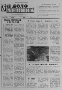 Проле тарии всех с тран , соединяйтесь! Ор ган Северного р а й к о м а К П С С и р ай о нн о го Сонета н арод ных д е п у т а т о в Нов оси б и рс ко й области № 74 (4735) 20 и ю н я 1978 г о д а Г а зета в ы х о д и т т р и р а з а в Ц е н а 2 к о п . Г о д и з д а н и я 4 3 - й В ТО Р Н И К н е д е л ю М о л о к о сверх плана Животноводы Чистоозерного района 16 июня в ы п о л н и л и полугодовой план продажи государству молока. Заготовки этой продукции по сравнению с прошлым годом выросли на 21) процентов. Большой вклад внесли в эту победу т р у ж е н и к и ферм совхозов « И ш и м с к и й » , «П ол ьяновский» , « Ш и п и ц и н с к и й » , а т а к ж е колхозов « И с к р а » , имени Мичурина, имени Свердлова и имени Дзержинского. До конца июня будет продано сверх полугодового плана 16 тысяч центнеров молока. П Л АНЫ П О Л У Г О Д И Я Д О С Р О Ч Н О Завершается первое полугодие. Накал социалистического соревнования, достижения передовых коллективов свидетельствуют о том, что предприятия местной промышленности, колхозы района имеют реальные возможности не только выполнить, но и значительно перевыполнить планы и задания шести месяцев текущего года пятилетки . коллектив Северного леспромхоза при полугодовом плане реализации 1 1 8 2 ты ся чи рублей только за п ят ь месяцев текущего года реализовал продукции на 1406 тысяч. Дополнительно до 1 июля здесь будет произведено п род укц ии па сумму около 100 тысяч рублей. Успешно встречают полугодовой финиш т р у ж е н и к и Северного лесхоза. Работники головного маслозавода дали слово в первом полугодии реализовать продукции сверх плана почти на 40 тысяч рублей. Коллектив «Сельхозте х н и ки » при полугодовом плане в 145 тысяч рублей наметил реализовать продукции н а 1 5 0 тысяч. Увенчался успехом самоот верженный труд работников животноводства. К 1 июня район выполнил план полугодия по продаже государству мяса. Со значительным перевыполнением плана по продаже мяса за канчивают полугодие коллективы колхозов « П у т ь к комм уни зм у» , « 7 - й съезд Советов», им. К. Маркса, « Борьба за мир». Животноводы района имеют; реальную возможность продать государству дополнительно не менее 601) центне- роь мяса. Хозяйства им. М. Горького, «Память Ленина», им. X X I I съезда КПСС значительно раньше срока справились с планом по продаже государству молока. Б настоящее время животноводы района ежедневно отправляют на молокоприемные п у н к т ы по 6 4 0 центнеров этой про д у кц и и . Это создает возможность выполнить полугодовой план раньше срока и продать государству дополнительно более восьми тысяч центнеров мслока. В то же время не все производственные коллективы работают еще с должным напряжением сил. Складываются определенные трудности с выполнением плана по производству и продаже молока в первом полугодии в кол хозах «Новая жизн ь» и «Заветы Ильича». Не справляются с полугодовыми планами коллективы Северного бртткомбината, ремонтной г р у п п ы коммунального хозяйства и некоторых др у ги х предприятий. Своевременное выполнение и перевыполнение государственных планов в большинстве производственных коллективов становится важнейшей составной частью всей организаторской и политической работы п а р ти й н ы х и хозяйственных органов, главным направлением социалистического соревнования. Достижения передовых коллективов — доказательство огромных возможностей каждого предприятия, нал
