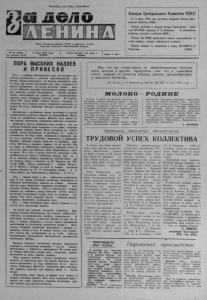 Пролетарии всех с тран, соединяйтесь! Ор га н Северного райкома К П С С и р айонного Совета нар од н ы х д е пу та то в Нов осибирской области № 81 (4742) 6 и ю л я 1978 г о д а Газета в ы х о д и т т р и р а з а в Ц е н а 2 к о п . ( од издания 4 3 - й ЧЕТВЕРГ н е д е л ю Пленум Центрального Комитета КПСС 3 — 4 июля 1 9 7 8 года состоялся очередной Пленум Ц е н т рального Комитета КПСС. Пленум заслушал и обсудил доклад Генерального се кретаря ЦК КПСС товарища Л. И. Брежне ва «О дальнейшем р азвитии се льского хозяйства СССР». Пленум ЦК КПСС единогласно при н ял пос тановление по этому в о пр осу , которое п у б л и к у е т с я в п ечати . Пленум перевел из кандидатов в члены ЦК КПСС Б. Н. П ас т у х о в а . (ТАС С ) . ПОРА ВЫСОКИХ НАДОЕВ И П Р И В Е С О В Лето — наиболее бла го пр и я тна я пора для быстрого увели чен и я производства и заго товок животноводческой прод у к ц и и . Однако использовать э ти бо гатые возможности можно лиш ь при умелой о р га ни з а ци и дела. Опыт передовых хозяйс тв подтверждает, что у сп еха д ос тигаю т прежде всего те, к то обеспечит в ы с о к и й 'з о о т е х н и ч е с к и й уровень содержания ж и в о т н ы х , наладит беспрерывный зеленый конвейер, создаст животноводам все у словия для высокопроизводи тельного труда. Т р у ж е н и к и нолхозов имени М. Горького , имени X X I I съезда КПСС, «Память Л е н и н а » , например , полугодовой план продажи молока го с у д ар с тв у вы п ол н и л и до срочно . Их ус п е х подкреплен большой организа торской работой. Достиж ение в п а с т б и щ н ы й период у с т о й ч и в о й и вы сокой п ро д у к т и в н о с т и ж и в о т н ы х зависит от бесперебойного обеспечения их полноценным кормом. Добиться этого можно п у тем хорошей о р га ни з а ци и содержания ж и в о т н ы х на вы п ас а х . Особенность летнего нормления скота состоит в том, что хозяйства основную долю п р о д у к ц и и в это время получаю т на дешевых зеленых кормах. Метод вы г о д н ы й , но требует умелой, ч еткой о р га н и з а ц и и . К сожалению , не везде это у ч и т ы в а е т с я . Из ряда писем, п риш е дш и х в редакцию , видно, что в неко то р ых хо з я й с т в а х с п ец и ал и с ты и заведующие фермами, завершив перевод ж и в о т н ы х на пастбища, перестали заботиться о р ац и о н а х , надеясь, что л у г все даст. Они не следят за соблюдением пра в и л ь но го кормления с к о та . В результате даже при обильном корме п р о д у к т и в н о с т ь скота не растет . Но в этом и состоит и с к у с с т в о зоотехника , чтобы позаботиться не только о количестве зеленых трав, но и об и х начестве, наладить полноценное п и та н и е ско та , ка к это делается сейчас в колхозах им. М. Горько го , им. X X I I съезда КПСС, « П у т ь к к о м м у н и зм у » , « З а в е ты Ильича», им. К. Маркса, в к о то ры х за с у т к и от каждой фуражной норовы п олучаю т по 1 0 — 11 кил ограммов молока. А на т а к и х фермах, к а к С у р г у т о в с к а я и Сев ерная ,— по 1 2 к г . Лето — горячее время и для работников откормочного цеха. В этот период некоторые к о л л е к т и в ы со ре вную т ся за получение ки л о гра мм овы х привесов на отнорме к р у п н о г о рога того ск ота. Вся ческого поощрения з аслуживает опыт колхозов «Память Л е н и н а » , « П у т ь к ко м м у н и зм у » , которые к а ж д ы й год, примерно с к онц а ию ля или начала а в г у с т а , о р га н и з ую т и н т е н с и в н ы й откорм скота на о т к р ы т ы х пло щадках . Этот метод позволяет быстро повыш а ть весовые к о н д и ц и и , у в е л и ч и в а т ь производств