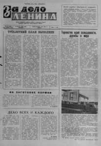 Пролетарии всех стран, соединяйтесь! О р г а н С е в е р н о г о р а й к о м а КП С С и р а й о н н о г о С о ве т а н а р о д н ы х д е п у т а т о в Н о в о с и б и р с к о й о б л а с т и N9 95 (4756) | Г о д и з д а н и я 4 4 . й \ 8 а в г у с т а 1978 г о д а Газета в ы х о д и т т р и р а з а в ВТО РНИ К н е д е л ю Ц е н а 2 к о п . ТРЁХЛЕТНИЙ ПЛАН ВЫПОЛНЕН Большого успеха в увеличении производства продукции добились труженики ферм колхоза «Память Ленина». Претворяя в жизнь решения июльского Пленума ЦК КПСС, они на пять месяцев раньше срока завершили выполнение задания трех лет по производству и продаже государству молока. На приемные пункты хозяйство отгрузило более 56 тысяч центнеров продукции. Этот успех — результат роста надоев, повышения товарности и качества продукции. Особенно заметных успехов добились животноводы Верх-Красноярской, Алексеевской и Ново-Никольской ферм. Пример в труде подают мастера животноводства: награжденная орденом Ленина Т. Т. Шалагина, удостоенная ордена Трудовой Славы Ш степени Н. Ф. Питюкова, С. И. Хлопотова, Е. Е. Туровская. Каждая,из них за два с половиной года пятилетки получила от группы коров по 1 5 0 0 — 1 60 0 центнеров молока. Трехлетка выполнена. Но животноводы не останавливаются на достигнутом. Они день ото дня наращивают темпы сдачи продукции государству. -ч ----------- а ------- --------------------- В июле еще пять колхозов района — колхоз имени XXII съезда КПСС, «Восход», имени М. Горького, «Борьба за мир» и имени К. Маркса — выполнили трехлетний план продажи молока государству. Колхоз имени XXII съезда КПСС из плана 4 1 5 0 0 центнеров молока отправил на приемные пункты 4 2 0 6 5 центнеров, на 1 0 2 ,2 процента выполнили задание животноводы «Восхода»; 2 1 3 2 центнера сверхплановой продукции продано колхозом имени М. Горького. В счет плана 1979 года работают животноводы колхозов «Борьба за мир» и имени К. Маркса. Весомый вклад в выполнение государственных планов и взятых на третий год десятой пятилетки социалистических обязательств внесли передовые доярки, скотники и другие работники молочнотоварных ферм этих хозяйств. 'Гак, доярка колхоза имени М. Горького Раиса Петровна Квашнина за семь месяцев текущего года надоила по 2 1 2 5 килограммов молока на фуражную корову. Валовой надой по ее группе за этот период составил более 540 центнеров. Нового успеха в работе достигла другая доярка Сургутовской фермы этого же колхоза Зоя Константиновна Чернова, получив почти по 21 центнеру молока на корову. В ногу с ветеранами животноводства идет и молодая доярка Евгения Седакова: за семь прошедших месяцев она получила по 2 10 0 килограммов молока от коровы. По итогам прошлого года в число трехтысячниц вошла доярка колхоза имени XXII съезда КПСС Екатерина Фи ларетовна Слободчикова. Передовик производства взяла повышенные обязательства, под" писав обращение доярок-трех- тысячниц ко всем работникам ферм района. Наметив новый рубеж для себя, Екатерина Филаретовна стремится его достигнуть. Итоги прошедшего периода говорят о том, что слово свое она сдержит: получено по 2 0 1 9 килограммов молока на корову, а валовой надой составил 417 центнеров молока. В числе передовиков Екатерина Ильинична Приемни- кова из колхоза имени XXII съезда КПСС, Зинаида Петровна Харитонова, доярка колхоза «Путь к коммунизму», Анна Степановна Мама- кова, доярка Ичкалинской фермы колхоза имени К. Маркса. Н А З А Г О Т О В К Е К О Р М О 