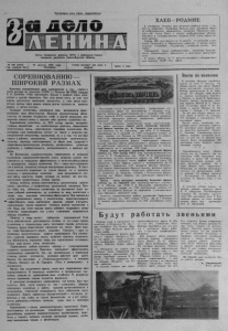 Пролетарии всех стран, соединяйтесь! О р г а н С е в е р н о г о р а й к о м а К П С С и р а йо нн о го Совета народных депутатов Новосибирской области Х Л Е Б - Р О Д И Н Е В п о с л е д н и е п о г о ж и е д н и у с и л и л с я х л е б н ы й п о т о к с п о л е й н а э л е в а т о р ы . П о з а в ч е р а б о л ь ш е в с е х д о с т а в и л и з е р н а на х л е б о п р и е м н ы е п р е д п р и я т и я х о з я й с т в а У б и н с к о г о р а й о н а — 461 т о н н у . В с е г о с н а ч а л а х л е б о з а г о т о в о к у б и й ц ы з а с ы п а л и в г о с у д а р с т в е н н ы е з а к р о м а 3 1 2 4 т о н н ы з е р н а н о в о г о у р о ж а я . С в ы ш е 40 0 т о н н п р и н я т о за 16 а в г у с т а о т к о л х о з о в и с о в х о з о в С у з у н с к о г о и О р д ы н с к о г о р а й о н о в . С н а ч а л а ж а т в ы с у з у н ц ы о т г р у ж а ю т г о с у д а р с т в у ч е т в е р т у ю т ы с я ч у т о н н х л е б а . Н а р а щ и в а ю т т е м п ы х л е б о з а г о т о в о к х о з я й с т в а К ы ш т о в - с к о г о , Д о в о л е н с к о г о , З д в и н с к о г о и н е к о т о р ы х д р у г и х р а й о н о в В ц е л о м о б л а с т ь н а 17 а в г у с т а з а с ы п а л а в г о с у д а р с т в е н - № 100 (4761) 19 августа 1978 года Газета выходит три р а за в 1 Ц е н а 2 коп. Год издания 4 4 . й С У Б Б О Т А н еделю СОРЕВНОВАНИЮ — ШИРОКИЙ Р А З М А Х Конечная экономиче ская цель соревнования в том, сказал в своем докладе на июльском ( 1 9 7 8 г . ) Пленуме Ц К КПСС товарищ Л. И. Брежнев, чтобы производить больше и дешевле зерна, мяса, молока и другой продукции. При этом важно знать, за счет чего именно достигнуты наилучшие результаты, в силу к а н и х к о н к ретных причин одни вышли вперед, другие остались на прежнем уровне, а третьи отстали. Трудовые коллективы, анализируя свои возможности, пересматривают свои обязательства. Высокие дополнительные обязательства по продаже государству хлеба и другой продукции, расширению озимого кл ина и подъема зяби приняли т р у ж е н и к и сел. Соревнование, отмечалось на X X V съезде партии, оказывает глубокое воздействие на хозяйственную п р а к т и к у , общественно- политическую ж изнь, нравственную атмосферу коллективов. Ж и вотворная сила соревнования состоит не только в развитии производственной инициативы т р у ж е н и к о в , но и в том, что оно формирует у рабочих, колхознико в, интеллигенции замечательные каче ства: высокую ответственность за общее дело, трудовую и общественно-политическую акт и в н с т ь , коллективизм , взаимную поддержку и требовательность, организованность и идейную зрелость. [ Во Всесоюзном социалистическом соревновании за успешное выполнение народнохозяйственного плана основные усилия н а п равляются на повышение эффективности и качества работы к аж д о го трудящегося, каждого коллектива. Зто — новая черта соревнования в десятой п я тилетке , которую надо всемерно развивать. В стремлении выпустить продукции не только больше, но и высокого качества, с наименьшими затратами ярко раскрываются л у ч шие черты советских людей, которые не жал еют сил для о с у ществления созидательных планов партии. Сейчас особенно велика ответственность организаторов соревнования: партийных и профсоюзных ор г аниза ций , комсомола. В а ж но, чтобы они, мобилизуя коллективы на достижение более высоких рубежей производства, не у п у с к а л и из виду воспитание в гк ф й х черт, присущих советскому образу ж и з н и . При подведении итогов соревнования наряду с пока зателями, характеризующими ' эффективность труда, выполнение 