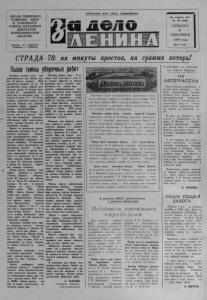ОРГАН СЕВЕРНОГО РАЙКОМА КПСС И РАЙОННОГО СОВЕТА НАРОДНЫХ ДЕПУТАТОВ НОВОСИБИРСКОЙ ОБЛАСТИ Выходит по вторникам, четвергам и субботам. С Т Р А Д А - 78 : н и м и н у т ы п р о ст о я , нип о т е р ПРОЛЕТАРИИ В С ЕХ С Т РАН , СО ЕДИН ЯЙ ТЕС Ь! Д С / I U Год издания 44-й N8 109 (4769) СУББОТА 9 СЕНТЯБРЯ 1 9 7 8 г о д а Цена 2 коп. Выштемпы уборчынхработ Погодные услов ия этого года Нач алась у борка овса. К сен е бл а гоприятны для уборки уро ж а я . В а в г у с т е выпало 8 3 , 8 миллиметра осадков, что на 2 5 миллиметров выше средней многолетней нормы. В теч ен и е месяца был 2 1 дождливый день, тогда к а к за последние годы в среднем и х было 11 — 1 3 . По н е которым х озяйс твам осадков выпало еще больше, что серьезно усл ож ни л о у бор к у у р о ж а я . По данным гидроме тслужбы и в сентябре ож ид а е тс я погода т а к а я ж е , к а к и в а в г у с т е . Поэтому при проведении с ельс кохо з яй с т в е н н ы х работ надо использовать к а ж д ы й п о г о ж и й час , все имеющиеся резервы. Однако по ра зличным о р г а н и зационным п р и ч и н а м , и з - з а н е д о с та тк а тр ан с п о р т а , т е х н и ч е с ким неисправнос тям очень ч а сто п рос таиваю т зерновые и с и лосные комб ай ны . В не которы х к ол х о за х плохо организовано общ е с тв ен н о е п и т а н и е в обед и вечером. Все эти и д р у ги е п р и чины сд ерж и ваю т уборочные р а боты, и в результа те на 5 с ен тября кол хозы района обмолотили лишь 2 9 процентов зерновых и убрали 4 4 процента уборочной площади силосных . Л у ч ш е д р у г и х хо зя й с тв идет уборна зерновых в кол хо за х « П а м я т ь Л е н и н а » , « В о с х о д » , имени М . Горького, где обмолочено от 3 5 до 5 0 процентов к о лосовых. Но зато в кол хо за х «Борьба за м и р » , « Н о в а я ж и з н ь » , имени X X I I съезда КП С С , «Заветы И л ь и ч а » уборка хлебов идет к р а й н е медленно. Здесь н е рационально и сп о л ьз у ется рабочее время , п о го ж и е часы. М е х а н и за торы зач а с тую н а ч и н а ю т работу в 1 0 — 11 ч а сов у т р а и з а к а н ч и в а ю т в 7 — 8 часов вечера. Вполне п о нят но , что и хлебов обмолочено здесь очень мало: 1 5 — 2 0 процентов к уборочной площади. Х орош ими темпами ведут уборк у силосных к у л ь т у р колхозы имени К . М а р к с а и « П а м я т ь Л е н и н а » , где их у ж е убрано более 5 0 п роц ентов . Однако к о л х о зы « Н о в а я ж и з н ь » , «Б орь б а за м и р » и здесь от ст аю т . Если и в дальнейшем т у т будут медлить, то убор к а з а т я н е т с я до к о н ц а месяца . Некоторые хо зяй с тв а и з - з а о т с у т с т в и я тр ан с п о р т а з а к л а д ы вают зеленую массу на силос прямо н а поле. Р е ш е н и е это правильное . Сейч ас необходимо особое в н и м а н ие уделить в х о з я й с т в а х засы пке семян . Большинство к о л хозов полно стью засыпали семена п ере ходящ его фонда р ж и . Одн а к о колхозы имени X X I I съезда К П С С , « Н о в а я ж и з н ь » все ещ е не имеют достаточного к о личе ства семян р ж и . менам этой к ул ьт ур ы в этом го ду следует обратить не меньше в н и м а н и я , чем к семенам р ж и . Во зм ожно , что семена овса с прямого комб ай н ир ован и я п р и дется п р о п у с к а т ь через с у ш и л к у дважды, т а к к а к р е ж и м с уш к и необходимо выдержать т а к о й , чтобы не с н из и ть вс х ож е с ть семя н . Т а к и е просчеты допусти ли в прошлом году колхозы «Заветы И л ь и ч а » и имени X X I I съезда К П С С . И х семена пришлось обмени в ат ь, а это вызвало дополнительные з ат р аты . П ш е н и ц а , к а к правило , имеет мало подгона и семена можно пол учи ть хорошие и с прямо го ко