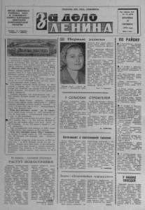 ОРГАН СЕВЕРНОГО РАЙКОМА КПСС И РАЙОННОГО СОВЕТА НАРОДНЫХ ДЕПУТАТОВ НОВОСИБИРСКОЙ ОБЛАСТИ В ы х о д и т п о в т о р н и к а м , ч е т в е р г а м и с у б б о т а м . ПРОЛЕТАРИИ ВСЕХ СТРАН, СОЕДИНЯЙТЕСЬ! Год и з д а н и я 44-й № 125 (4785) ВТОРНИК 1 7 ОКТЯБРЯ 1 9 7 8 года Це на 2 к оп. Рассмотрев итоги социалистического соревнования хозяйств но производству и продаже государству продуктов животноводства за 9 месяцев 1 9 7 8 года, бюро райкома КПС , исполком районного Совета народных депутатов, президиум райкома профсоюза работников сельского хозяйства признали победителем колхоз «Память Ленина» (председатель А.М. Чуркин, секретарь парткома М. А. Маркович, председатель сельского Совета И. А. Гриц, председатель профкома Г. И. Кайгородов, секретарь комсомольской организации Т. Внукова, главный зоотехник В. К. Салмин). Колхоз получил на одну корову но 2 01 3 килограммов молока, что на 173 килограмма больше, чем было надоено в соответствующий период прошлого года. продажи государству молока выполнен на 1 0 5 ,4 процента к годовому, мяса —* на 8 1 ,1 процента. Крупный рогатый скот хозяйством сдан средним весом одной головы по 362 килограмма, 7 9 ,5 процента скота сдано высшей и средней упитанности. Хозяйство выполнило план воспроизводства стада на 9 8 , 9 процента. Крупный рогатый скот сохранен па 9 6,6 процента. В колхозе «Память Ленина» оставлено переходящее Красное знамя райкома партии, райисполкома и райкома профсоюза работников сельского хозяйства, врученное, по итогам 8 . месяцев 1 97 8 года. В честь колхоза-победителя поднят Флаг Трудовой Славы. Второе место присуждено колхозу им. М. Горького, где от каждой коровы получено по 2 1 6 7 килограммов молока, что выше надоя в соответствующий период прошлого года на 105 килограммов. Колхоз выполнил план продажи государству молока на 1 1 6 ,4 процента, мяса — яа 7 8,3 процента. Крупный рсг " гатый скот сдан средним живым весом одной головы по 3 3 2 килограмма, из них 7 6,1 процента высшей и средней упитанности. План воспроизводства стада выполнен на 1 0 0 ,5 процента. Общественное стадо сохранено на 9 7 ,5 процента. Третье место присуждено колхозу «Путь к коммунизму», где получено от каждой коровы по 1 8 9 4 килограмма молока. 1 00 процентов этой продукции сдано государству первым сортом. План продажи государству молока выполнен на 9 9 , 4 процента, мяса — на 1 0 1 ,8 . Крупный рогатый скот сдан хозяйством средним весом одной головы по 3 54 килограмма, 95 процентов скота сдано высшей и средней упитанности. Общественное стадо сохранено на 98 процентов, план воспроизводства крупного рогатого скота выполнен на 1 0 1 ,9 процента. На контроле — выполнение обязательств Р А С Т У Т Н О В О С Т Р О Й К И П р и н и м а я с о ц и а л и с т и ч е с к и е о б я з а т е л ь с т в а н а 1978 г о д , к о л л е к т и в н а ш е г о х о з я й с т в а б о л ь ш о е в н и м а н и е у д е л и л в о п р о с а м с т р о и т е л ь с т в а . Д л я о с у щ е с т в л е н и я п о с т а в л е н н ы х з а д а ч н а м е ч а л о с ь з а . г о т о в и т ь п о л т о р ы т ы с я ч и к у . б о м е т р о ' в д е л о в о й д р е в е с и н ы , п о с т р о и т ь ч е т ы р е д в у х к в а р т и р н ы х д о м а , м о л о ч н ы й б л о к в И ч к а л е с п р о ф и л а к т о р и е м и к р а с н ы м у г о л к о м , а т а к ж е к а п и т а л ь н о о т р е м о н т и р о в а т ь п о м е щ е н и е д л я м о л о д н я к а на 2 0 0 г о л о в , в ы к о п а т ь д в а ш а х т н ы х к о л о д ц а . В с е э т и п у н к т ы о б я з а т е л ь с т в в ы п о л н я ю т с я у с п е ш н о . В с е г о н