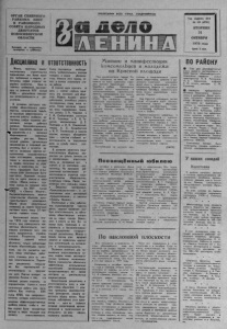 ОРГАН СЕВЕРНОГО РАЙКОМА КПСС И РАЙОННОГО СОВЕТА НАРОДНЫХ ДЕПУТАТОВ НОВОСИБИРСКОЙ ОБЛАСТИ Выходит по в т о р н и к а м , ч е т в е р га м и субб о та м . ПРОЛЕТАРИИ ВСЕХ СТРАН, СОЕДИНЯЙТЕ Год и з д а н и я 44-й № 131 (4791) ВТОРНИК 3 1 ОКТЯБРЯ 1 9 7 8 года Цена 2 к о п . ". . к ответственность Ж и з н ь , п р а к т и к а к о м м у н и с т и ч е с к о г о строительства п редъ являю т все более в ы с о кие требова ния к ка драм, рв ботнинам любой отрасли н а родного х о зя й с тв а . Одно из г л а в н ы х требований, в ь н е к а ю - щ и х из решений XX V съезда К П С С ,— дальнейшее п о в ы ш е ние о р га н и зо в а н н о с т и и д и с ц и п л и н ы . В у с л о в и я х р а с т у щ и х масштабов общественного п р о и з водства, н а п р я ж е н н о й борьбы за в ы с о к у ю эффективно сть и качес тво работы особенно не те р п и м ы слабая трудовая д и с ц и п л и н а , по тери рабочего времени, бе схо зя й с тв ен н ос ть . В с я к и е н а р у ш е н и я п о ря д к а на э д п р и я т и я х и в к о л х о з а х оборачиваются серьезным ущербом для н и х . Именно н и з к и й у р овень о р га н и за ц и и пр оизводства и плановой д и с ц и п л и н ы был и остается одной из о с н о в н ы х п р и ч и н н е вы п о л н е н и я го с у д а р с т в е н н ы х задач о тс тающ им и п р е д п р и я ти ям и и нолхозами , ко торые за первое п о лу годи е не с п р а в ились с заданиями по в ы п у с к у п р о д у к ц и и . Был не в ы полнен план реал и зац и и бы то в ы х у с л у г . Задолжал го с у д а р с т в у по сдаче молока и мяса к о л х о з « Н о в а я ж и з н ь » , сорвали п л а н ы по продаже мяса ко л х о з ы им. X X I I съезда КПСС и « З а в е ты И л ь и ч а » . Неудовлетворительно ведется строительство объектов к у л ь т у р н о -б ы т о в о го н а з н а че н и я . Общий объем к а п и т а л ь н ы х в л о ж е н и й за первое полугоди е составил всего лиш ь 3 7 п р о ц ентов годового п лана. К р и т и ч е с к и й ана л и з и т о гов 1 9 7 8 года по звол и т в ы я с н и т ь всю с о в о к у п н о с т ь к о н - н р е т н ы х обстоятельств, в ы з в а в ш и х о тс тавание то го или ин ого п р е д п р и я т и я , с т р о й к и , к о л хо за . Разумеется, срыв п л а н о в ы х заданий нельзя объя сня ть т ол ь к о н еб л а го п р и я т н ы м и о б ъ е к т и в н ы м и п р и ч и нами, к а к это п ы т а ю т с я сделать наш и нек о то ры е работ н и к и , ст ремясь у й т и от л и ч ной о тв е т с т в е н н о с т и . Под л и н ная д и с ц и п л и н а н е м ы с л и ма без персональной о т в е т с тв ен н ос ти за п о р у ч е н ное дело. П а р ти я и с х о д и т из у к а з а н и я Л енина о том , что к а ж д ы й должен о тв ечать за определенную , строго и точно о зн а ч е н н ую работу или час ть работы. Ка н отметил XX V съезд КПСС, п р и со в е р ш е н с т вов а ни и методов к о м п л е к с н о г о решения о бщ е г ос у д а рс тв е н ны х проблем в а ж н о , чтобы в л ю бом случае бы ли к о н к р е т н ы е о р га ны и люди, н есущ и е всю п о л н о т у о тв е т с т в е н н о с т и . Съезд п о д ч е р к н у л необходимость требовательного подхода к а ж д о г о к своим о бязанно с тям . Именно этот подход леж и т в основе л е н и н с к о г о с т и ля работы. В полной мере отвечать за дело т зн а ч и т гл уб о ко п о н и ма ть его значение для общества. Родина в ы с о ко цен и т р аб о т н и к о в , способных решать п о с тав л е н ны е перед н ими задачи. Такое сознание п р и с у ще всем передовикам, т а к и м , к а к д о я р к и 3. К . Чернова и Е. Ф. Слободчикова , с к о т н и к и В. И. Ч е р н и к о в и В. Н. Ти- ш е ч к о , м е х анизаторы Д. С. Прохоров и И. Б. Л е щ и н с к и й , т о к а р и А. Е. Скоробо гатов и И. П. Т е п л и н с к и й и мн