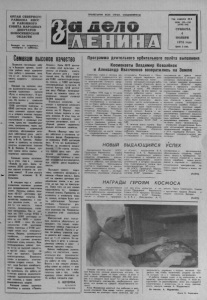 О Р Г А Н С Е В Е Р Н О Г О Р А Й К О М А К П С С И Р А Й О Н Н О Г О С О В Е Т А Н А Р О Д Н Ы Х Д Е П У Т А Т О В Н О В О С И Б И Р С К О Й О Б Л А С Т И Выходит по вторникам, четвергам и субботам. ПРОЛЕТАРИИ В С ЕХ С Т Р А Н , СО ЕДИ Н ЯЙ Т ЕС Ь ! ТВ А I А ел Год издания 44-й №№ 133— 134 (4793—94) С У Б Б О Т А 4 Н О Я Б Р Я 19 7 8 г о д а Цена 2 коп. Семенам высокое качество Проявляя нас тоящ ую забот у о будущем урожае, хозяй ства района ведут кропотливую работу с семенами, зная, что от их качества будет з а висеть щедрость колхозных полей. Каждый год засевают п аш ню высококачественными с е менами труженики колхоза “ П ут ь к коммунизму» . И нынче здесь к ним особое внимание. На анализ в семенную инспекцию представлено 120CU центнеров пшеницы и 6 0 0 0 центнеров овса. Все семена отвечают нормам первого и второго классов государственного стандарта . Зерно, поступившее с семенных у ч а стков , сразу же подрабатывалось, пропускалось через зерноочистительно - суш и льны й комплек с, обслуживали ко торый заботливые руки мастеров своего дела С. И. Анибро- ева и В . И. Трепова. Наблюдение и проверку на качество очистки ос уществлял агроном М. Д. Ковшар. В самые л у ч шие сроки легли семена в надежные хранилища . Хорошие семена за готовлены в этом году в колхозе «Борьба за мир». Здесь з а сыпано 3 5 3 0 центнеров овса, вся пар тия отнесена ко второму к л а с с у . В этом за сл у г а молодого агронома В . М. Б ун ь ко в а . В текущем году в районе сложились неплохие условия для своевременной подготовки семян. Колхозы района з а сы пали 4 5 1 3 7 центнеров яровы х зерновых к у л ь т у р . Все хозяйств а справились с пла ном за сыпки семян, но не все то, что имеется, можно сч и та ть полноценным посевным материалом. Т а к , в колхозе им. X X I I съезда КПСС в наличии 6 5 0 0 центнеров се мян, из них 3 0 0 0 — пшеницы и 3 5 0 0 — овса. Из этого j количества 1 1 0 0 центнеров ! семян пшеницы и 2 1 0 0 цен т неров семян овса некондиционные. Видимо, руководители х о зя й с тв а , агрономическая служба не уделяют должного внимания этому вопросу. Ведь ' некондиционны семена только из-за их высокой сорности, I и третий класс имеют по I этой же причине. Сорняки мнсгостделимые. Влажность семян и вс хожесть отвечают нормам второго к л а с с а . Зн а чит, надо быстрее освободиться от сорных примесей. Чтобы выполнить э т у работу, достаточно имеется зерноочистительной высокопроизводительной т е х н и к и , а такж е кв ал и фицированных кадров. Хорошие семена пшеницы засыпаны в колхозе « П а м я т ь Л ен и н а» . Здесь 3 8 7 2 центнера семян этой к у л ь т у р ы отнесены ко второму к л а с с у . Х уж е обстоит дело с подготовкой овса. Из 5 8 5 0 центнеров 1 5 0 0 со ответствую т второму к л а с с у , а 1 8 0 0 центнеров некондиционные по чисто те. В шестой бригаде 1 2 5 0 центнеров овса «Победа» некондиционные по примеси семян, пораженных твердой головней ( 0 , 0 0 4 процента). Отдельные хозяйств а не спешат с проверкой семенного материала. В прошлые годы колхоз им. К . Маркса имел семена только первого и второго классов. В этом году их подготовку и проверку недопустимо за т яги в аю т , хо т я с уборкой урожая справились раньше остальных х о зя й с тв . Колхоз «В о с хо д» тоже л у ч ше заботился о состоянии семенного фонда. Предварительно проверено 2 5 0 0 центнеров овса. И что же вы я сн ило сь? Партия по вс хожести неоднородная. Но нужно сн а за т ь , что сейчас здесь идет уби- ленная подготовка семян. Контрольные едини