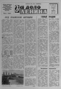 ОРГАН СЕВЕРНОГО РАЙКОМА КПСС И РАЙОННОГО СОВЕТА НАРОДНЫХ ДЕПУТАТОВ НОВОСИБИРСКОЙ ОБЛАСТИ Выходи т по вторникам , ч е т в е р г а м и с у б б о т ам . П Р О Л Е Т А Р И И В С Е Х С Т Р А Н , С О Е Д И Н Я Й Т Е С Ь ! Го д и з д а н и я 44-й № 136 (4796) СУББОТА 11 НОЯБРЯ 1978 года Ц ен а 3 ко п . ПОД З Н А М Е Н Е М ОКТЯБРЯ К а ж д а я . г о д о в щ и н а В е л и к о й О к т я б р ь с к о й с о ц и а л и с т и ч е с к о й р е в о л ю ц и и — г л а в н о г о с о б ы т и я X X в е к а — н о в а я в е х а р е в о л ю ц и о н н о г о о б н о в л е н и я м и р а , но вый ш а г С т р а н ы С о в е т о в на пути к о м м у н и с т и ч е с к о г о с т р о и т е л ь с т ва. И в д е н ь 6 1 -г о О к т я б р я ^ с г о р д о с т ь ю о г л я д ы в а я п у т ь , п р о й д е н н ы й п о д р у к о в о д с т в о м ' л е н и н с к о й п а р т и и , , с о в е т с к и е л ю д и с у в е р е н н о с т ь ю с м о т р я т в б у д у щ е е . В э т о т т о р ж е с т в е н н ы й д е н ь они д о к л а д ы в а ю т Р о д и н е , п а р т и и : п о с л е д о в а т е л ь н о , у с п е ш н о п р е т в о р я ю т с я в ж и з н ь и с т о р и ч е с к и е р е ш е н и я X X V с ъ е з д а К П С С , п о с т а н о в л е н и я д е к а б р ь с к о г о (1977 г . ) и и ю л ь с к о г о ( 1 9 7 8 г . ) П л е н у м о в Ц К К П С С . 7 н о я б р я на К р а с н о й п л о щ а д и с т о л и ц ы с о с т о я л и с ь п а р а д во й с к М о с к о в с к о г о г а р н и з о н а и д е м о н с т р а ц и я п р е д с т а в и т е л е й т р у д я щ и х с я . ^ Т о р ж е с т в е н н о и с т р о г о п р а з д н и ч н о е у б р а н с т в о г л а в н о й п л о щ а д и С т р а н ы С о в е т о в . На г о с т е в ы е т р и б у н а х — т е , к е м г о р д и т с я н а ш а с т р а н а : в е т е р а н ы п а р т и и и р е в о л ю ц и и , г е р о и г р а ж д а н с к о й и В е л и к о й О т е ч е с т в е н ной в о йн , п е р е д о в и к и п р о и з в о д с т в а , в и д н ы е д е я т е л и н а у к и и к у л ь т у р ы , к о с м о н а в т ы , а т а к ж е м н о г о ч и с л е н н ы е з а р у б е ж н ы е г о с т и . Н а д п л о щ а д ь ю м о г у ч е й в о л ной п р о к а т ы в а ю т с я а п л о д и с м е н т ы . М о с к в и ч и , г о с т и с т о л и ц ы г о р я ч о и с е р д е ч н о п р и в е т с т в у ю т р у к о в о д и т е л е й К о м м у н и с т и ч е с к о й п а р т и и и С о в е т с к о г о г о с у д а р с т в а . Н а ц е н т р а л ь н у ю т р и б у н у М а в з о л е я п о д н и м а ю т с я т о в а р и щ и Л. И. Б р е ж н е в , Ю . В. А нд р о п о в , В. В. Гришин, А . А. Громы ко , A . П. Кириленко , А . Н. Косы гин , К. Т. М а з у р о в , А. Я. Пельше, •Ж1- А . С у с л о в , П. Н. Д емич ев , B. В. К у з н е ц о в , Б. Н. П о н о м а рев , М. С . С о л о м е н ц е в , К. У. Ч е рн ен к о , И. В. Капитонов , В. И. Долгих , М. В. Зим янин , Я. П. Рябов , К. В. Русаков. На т р и б у н е М а в з о л е я Г е н е - р а л ь н ы й с е к р е т а р ь Ц К КП В Л е З у а н и чл ен П о л и т б ю р о Ц К К П В , п р е м ь е р - м и н и с т р п р а в и т е л ь с т в а С Р В Ф а м Ван Д о н г . Ч лен П о л и т б ю р о Ц К К П С С , м и н и с т р о б о р о н ы С С С Р М а р ш а л С о в е т с к о г о С о ю з а Д . Ф . У с т и нов о б ъ е з ж а е т в о й с к а , п о з д р а в л я е т их с п р а з д н и к о м , а з а т е м п о д н и м а е т с я н а т р и б у н у М а в з о л е я и п р о и з н о с и т р е ч ь , Н а д п л о щ а д ь ю п р о к а т ы в а е т с я т р о е к р а т н о е « У р а ! » , Г р е м я т з а л пы а р т и л л е р и й с к о г о с а л ю т а . С в о д н ы й в о е н н ы й о р к е с т р и с п о л н я е т Г и м н С о в е т с к о г о С о ю з а . Т о р ж е с т в е н н ы й м а р ш в о й с к о т к р ы л а к о л о н н а б а р а б а н щ и к о в и ф а н ф а р и с т о в м о с к о в с к о й во- е н н о ч м у з ы к а л ь ной ш к о л ы . По К р а с н о й п л о щ а д и п р о ш л и к о л о н н ы с л у ш а т е л е й в о е н н ы х а к а д е м и й , л у ч ш и х в о е н н ы х у ч и л и щ , п о д р а з д е л е н и я р а з л и ч н ы х Р О Д О В 