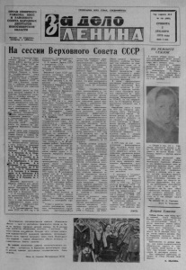 ОРГАН СЕВЕРНОГО РАЙКОМА КПСС И РАЙОННОГО СОВЕТА НАРОДНЫХ ДЕПУТАТОВ НОВОСИБИРСКОЙ ОБЛАСТИ Выходмт по вторникам, четвергам и субботам. * ПРОЛЕТАРИИ ВСЕХ СТРАН, СОЕДИНЯЙТЕСЬ! сессии Верховного Совета СССР В М о с к в е в Б о л ь ш о м К р е м л е в с к о м д в о р ц е , 29 н о я б р я н а ч а л а р а б о т у д е с я т а я с е с с и я В е р х о в н о г о С о в е т а С С С Р д е в я т о г о с о з ы в а . С е с с и и п р е д ' ш е с т в о в а л П л е н у м Ц е н т р а л ь н о г о К о м и т е т а К П С С . П о с т а н о в л е н и е П л е н у м а о п р о е к тах Г о с у д а р с т в е н н о г о п л а н а э к о н о м и ч е с к о г о и с о ц и а л ь н о ' г о р а з в и т и я С С С Р и Г о с у д а р с т в е н н о г о б ю д ж е т а С С С Р на 19 79 г о д с б о л ь ш и м и н -те ре - с о м и г л у б о к и м у д о в л е т в о р е н и е м в с т р е т и л и в с е с о в е т с к и е л ю д и . С б о л ь ш о й р е ч ь ю на П л е н у м е в ы с т у п и л т о в а р и щ Л . И. Б р е ж н е в . И з л о ж е н н ы е и м в ы в о д ы и у с т а н о в к и ц е л и к о м и п о л н о с т ь ю о д о б р е н ы П л е н у ' м о м . р е ш е н о п о л о ж и т ь их в о с н о в у д е я т е л ь н о с т и в с е х п а р т и й н ы х . с о в е т с к и х , п р о ф с о ю з н ы х и к о м с о м о л ь с к и х о р г а н и з а ц и й . х о з я й с т в е н н ы х о р г а н о в . П л е н у м о д о б р и л в о с н о в ^ у о м п р о е к т ы Г о с у д а р с т в е н н о - v J ^ n n a H a э к о н о м и ч е с к о г о и с о ц и а л ь н о г о р а з в и т и я С С С Р и Г о с у д а р с т в е н н о г о б ю д ж е т а С С С Р на 1979 г о д . С о в е т у М и н и с т р о в С С С Р п о р у ч е н о в н е с т и э т и п р о е к т ы н а р а с с м о т р е н и е В е р х о в н о г о С о в е т а С С С Р . В 10 ч а с о в у т р а о т к р ы л о с ь п е р в о е с о в м е с т н о е з а с е д а н и е С о в е т а С о ю з а и С о в е т а Н а ц и о н а л ь н о с т е й В е р х о в н о г о С о в е т а С С С Р . Б у р н ы м и , п р о д о л ж и т е л ь н ы м и а п л о д и с м е н т а м и д е п у т а т ы и г о с т и в с т р е т и л и т о в а р и щ е й . Л. И. Брежнева. Ю. В. А н д р о пова. В. В. Гришина, А. А. Громыко. А. П. Кирилен ко, A. Н. Косыгина. Д. А. Кунаева, А. Я. Пельше. Г. В. Романова. М. А. Суслова. Д. ф. Устинова, К. У. Черненко B. В. Щ е р б и ц к о го . Г. А. Алие в а . П. Н. Демичева, В. В. К у з н е ц о в а . П. М. Машерова, Б. Н. Пономарева. Ш. Р. Рашидова. М. С. Соломенцева Н. А. Тихонова. 3. А. Шевард надзе. И. В. Капитонова. В. И. Долгих, М. В. Зимянина. Я. П. Рябова. К. В. Русакова. М. С. Горбачева. Д е п у т а т ы е д и н о г л а с н о у т в е р д и л и п о в е с т к у д н я с е с с и и : 1. О з а м е с т и т е л я х П р е д с е д а т е л я П р е з и д и у м а В е р х о в н о г о С о в е т а С С С Р о т К и р г и з с к о й С С Р и Э с т о н с к о й СС Р . 2. О Г о с у д а р с т в е н н о м п л а н е э к о н о м и ч е с к о г о и с о ц и а л ь н о г о р а з в и т и я С С С Р на 1979 г о д и о х о д е в ы п о л н е н и я Го с у д а р с т в е н н о г о п л а н а э к о н о м и ч е с к о г о и с о ц и а л ь н о г о р а з в и т и я С С С Р в 1978 г о д у . 3. О Г о с у д а р с т в е н н о м б ю д ж е т е С С С Р на 1979 г о д и о б и с п о л н е н и и Г о с у д а р с т в е н н о г о б ю д ж е т а С С С Р з а 19 77 г о д . 4. О п р о е к т е З а к о н а С С С Р о г р а ж д а н с т в е С С С Р . 5. О б у т в е р ж д е н и и У к а з о в П р е з и д и у м а В е р х о в н о г о С о в е та С С С Р . В е р х о в н ы й С о в е т С С С Р е д и н о г л а с н о п о с т а н о в и л и з б р а т ь з а м е с т и т е л я м и П р е д с е д а т е л я П р е з и д и у м а В е р х о в н о г о С о в е т а С С С Р д е п у т а т а С. И . И б - р а и м о в а — П р е д с е д а т е л я П р е з и д и у м а В е р х о в н о г о С о в е та К и р г и з с к о й С С Р и д е п у т а та И. Г. К э б и н а — П р е д с е д а т е л я П р е з и д и у м а В е р х о в н о г о С о в е т а Э с т о н с к о й СС Р . 