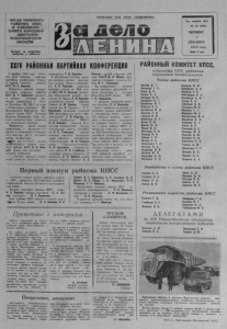 ОРГАН СЕВЕРНОГО РАЙКОМА КПСС И РАЙОННОГО СОВЕТА НАРОДНЫХ ДЕПУТАТОВ НОВОСИБИРСКОЙ ОБЛАСТИ П Р О Л Е Т А Р И И В С Е Х С Т Р А Н , С О Е Д И Н Я Й Т Е С Ь ! J A K Z J l V В ы х о д и т по в т о р н и к а м , ч е т в е р г а м и с у б б о т а м . Г о д и з д а н и я 44-й № 147 (4807) ЧЕТВЕРГ 7 ДЕКАБРЯ 1978 года Ц е н а 2 к о п . XXIV РАЙОННАЯ ПАРТИЙНАЯ КОНФЕРЕНЦИЯ 5 декабря 1978 года состоялась XXIV Северная районная партийная конференция- Открыл ее первый секретарь райкома КГОХГН. А. Борисов. Избирается рабочий президи' ум- Затем секретарь райкома КПСС В. Т. Боровская предлагает избрать почетный президиум конференции в соста" ве Политбюро ЦК КПССво главе с Генеральным секретарем ЦК, Председателем Президиума Верховного Совета СС Р Леонидом Ильичом Брежневым. Стоя, бур' ныли аплодисментами встретили это предложение делегатыИзбираются другие органы- конференции ■ * - мандатная комиссия и секретариат^ Утверждается повестка дня и регламент работы конференции. -в^^во для отчетного доклада предоставляется первому секретарю райкома КПСС Н. А. Борисову. Доклад был выслушан с большим вниманием. С отчетным докладом ревизионной комиссии выступил / е е председатель Г. Д. БуренкоВ обсуждении отчетных докладов приняли участие: председатель колхоза «Путь к коммунизму» А. С. Куликов, секретарь парткома колхоза им. XXII съезда КПСС Ю- П. Колязов, заведующая Ичкалинокой фермой колхоза им- К. Маркса 3. И. Балнина, председатель^ колхоза «.Память Ленина» А. М. Чуркин, доярка колхоза им. М. Горького Г. Г. Муравьева, начальник ^Северной ПМК Новосибирского треста «Ме- лиоводстрой» А. В. Федулов, начальник стройучастка ПМК-6I Н. И. Завидов, директор Оста- нинской восьмилетней школы, заслуженный учитель республики А. П. Гламаздин, главный инженер, секретарь парторганизации районного объединения «Сельхозтехника» М. Ф. Старков, шофер «Транссельхозтехники» Н. И. Циплаков, главный вег врач района В. С. Голобоков, заведующая отделом народного образования Л. П. Юревич, шофер колхоза «Заветы Ильича» А. А. Петухов, первый секретарь райкома ВЛКСМ В. П. Жоров, председатель Остяцкого сельского Совета И. Г. Гламаздин. На конференции с большой речью выступил заведующий отделом пропаганды и агитации Новосибирского* обкома КПСС Г. И. Аверьянов. С докладом мандатной комиссии выступил П. Н. Колмаков. После принятия резолюции по отчетному докладу райкома КПС и утверждения отчета ревизионной комиссии делегаты приступили к обсуждению кандидатур по выборам членов и кандидатов в члены райкома КПСС, ревизионной комиссии и делегатов на XIX Новосибирскую областную партийную конференцию. Тайным голосованием были избраны состав райкома КПСС, ревизионная комиссия и делегаты на областную конференцию. Подробный отчет о работе XXIV районной партийной конференции будет опубликован в следующем номере нашей газеты. Первый пленум райкома КПСС Состоялся первый пленум районного комитета КПС , избранного XXIV районной партийной конференцией- Пленум рассмотрел организационный вопрос. Первым секретарем райкома КПС избран Н. А. Борисов, вторым секретарем — Е. А, Багров, секретарем — В- Т. Боровская. Бюро райкома КПС избрано в составе девяти че^век. В него вошли: Н. А. Борисов, Е. А. Багров, В. Т- Боровская, А. П. Балашов, В. И. Драган, В. П. Жоров, Г. И. Ивашкевич, П- Н. Колмаков, Г. Г- Мамонов. Заведующими отделами райкома КПС утверждены: организационным — П. Н. Колмаков, п