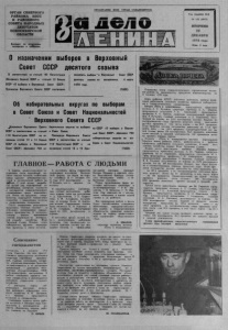 ОРГАН СЕВЕРНОГО РАЙКОМА КПСС И РАЙОННОГО СОВЕТА НАРОДНЫХ ДЕПУТАТОВ НОВОСИБИРСКОЙ ОБЛАСТИ Выходит по вторникам, четвергам и субботам. ПРОЛЕТАРИИ ВСЕХ СТР АН , СОЕДИНЯЙТЕСЬ! Год издания 44-й № 152 (4812) ВТОРНИК 19 Д Е К А Б Р Я 1978 года Цена 2 коп. О назначении выборов в Верховный Совет СССР д е с я то го созыва В соответствии со статьей 9 0 Кон с ти ту ц и и (Основного З акона ) СССР и статьей 1 2 Закона СССР « 0 выборах в Верховный Совет СССР» Президиум Верховного Совета СССР постановил назначить выборы * в Верховный Совет СССР десятого созыва на воскресенье, 4 марта 1 9 7 9 года. (ТАСС) Об избирательны х о к р у г а х по выборам * в Совет Союза и Совет Н ациональностей Верховного Совета СССР п р е з и д и у м Верховного Совета СССР в соответствии со статьей 1 1 0 Ко н с ти туц и и СССР на основании ст атей 1 3 и 1 4 Закона СССР «О выборах в Верховный Совет СССР» образовал 7 5 0 избирательных округов по выборам в Совет Союза. Президиум Верховного Совета ' СССР в соответствии со статьей 1 1 0 К о н с т и т у ц и и СССР и на основании ст атей 1 3 и 1 5 Закона СССР «О выборах в Верховный Совет СССР» образовал 7 5 0 избирательных округов по выборам в Совет Национальностей. (ТАСС) ГЛАВНОЕ — Р А БО Т А С ЛЮДЬМИ В период зимне-стойлового содержания скота партийный ко митет нашего колхоза особое внимание уделяет агитационно-массовой и политической работе на ф#£мах. С этой целью разработан целый ряд мероприятий по организации, контролю, гласности и наглядности социалистического соревнования среди животноводов. Итоги их трудового соперничества подводятся ежемесячно совместно с правлением колхоза п профсоюзным комитетом. После подведения результатов выпускаем «Боевые листки» и «Молнии», посвященные передовикам производства. В честь коллектива фермы, признанной лучшей, поднимаем на центральной усадьбе хозяйства Флаг Трудовой Славы. Помимо этого победителям вручаем переходящие вымпелы и знамя колхоза. В настоящее время первенство удерживает коллектив Веселовской фермы, где надои на корову составили за 11 месяцев этого года 2157 килограммов — на 57 больше, чем в среднем по колхозу. В индивидуальном соревновании лучших результатов добились доярки этого ж е коллектива А. Д. Крестьянова, 3. П. Харитонова, Е. Ф. Астафьева, получившие от коровы более 23 центнеров молока. Передовыми скотниками являются Н. И. Никитин и М. М. Астафьев, обеспечившие надои по 2230 килограммов от коровы. В настоящее время частые гости у животноводов работники культуры. Они еженедельно посещают красные уголки, где ока зывают помощь в оформлении наглядной агитации, проводят беседы. Недавно в красном уголк е Веселовской бригады состоялось обсуждение книги А. И. Брежнева «Целина». Перед тружениками ферм р е гулярно выступают агитаторы и политинформаторы — Р. В. Ма- макова, Г. В. Баталова, Г. П. Иванова. Они знакомят их с последними событиями в жизни нашей страны и за рубежом. Вся проводимая работа в целом будет способствовать успешному выполнению народнохозяйственных планов и социалистических обязательств, принятых животноводами на период зимне-стойлового содержания общественного стада. А . ИВАНОВ, секретарь парткома, колхоза «Путь к коммунизму». Подведены итоги социалистического соревнования колхозов района по производству продуктов животноводства за 11 месяцев 1978 года. Бюро райкома КПСС, исполком райсовета, райком про