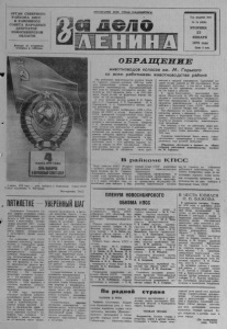 ОРГАН СЕВЕРНОГО РАЙКОМА КПСС И РАЙОННОГО СОВЕТА НАРОДНЫ Х ДЕПУТАТОВ НОВОСИБИРСКОЙ ОБЛАСТИ Выходит по вторнпкам, четвергам и субботам. ПРОЛЕТАРИИ ВСЕХ СТРАН, СОЕДИНЯЙТЕСЬ» ( Я J I V / I U г 4 Год издания 44-й № 10 (4826) ВТОРНИК 2 3 Я Н В А Р Я 1979 года Цена 2 коп. т л т к w n г о д * шштт I SfMftiftMl S I P EtCP 4 м а р т а 1979 года — д е н ь вы б о р о в в Верховный Совет СССР. П л а к а т х у д о ж н и к а В. Викторова. Ф отохроник а ТАСС ПЯТИЛЕТКЕ- УВЕРЕНЫЙШАГ Т р у д ящ и ес я Советского С о юза, ш и р о к о р а з в е р н у в с о ц и а лис т и че с к о е соревнов ание , д о бились в 1978 году н овы х у с пехов в выполнении и с т о р и ческ их р еш е н и й XXV съ е зд а КПСС. Достигнут д а л ьн ейш и й ро ст экономического п о т е н циала страны, матер и ал ьн о го и ку л ь т у р н о г о у р о в н я ж и з н и народа. По сообщению ЦСУ СССР, основные п о к а з а т е л и э к о н о м и ч еск ого и социального р а з в и тия СССР в 1978 го д у по ср авнению с 1977 годом х а р а к т е р и з у ю т с я следующими данными. Н а ци о н ал ьны й д о ход, и сп о л ьзо в ан ны й на п о т р е б л ен и е и н а к о п л ен и е , с о с т а вил 104 п роцента , в том ч и с ле: пр о изво д ство ср е дс тв п р о и зводств а — Ю5 процентов ; п роизводство п р е д м е т о в п о т р е б л е н и я — 104 п роцента ; п р о д у к ц и я се ль ск о го х о з я й с т ва — 104 п р о цента ; п р о и з в о д ит е л ьн о с т ь тр у д а : в п р о м ы ш лен н о сти — 103,6 п р о цента , в с е л ь с к о м х о з я й с т в е (обществ ен н о е п роизводство) — 105 проценто в. В 1978 году т р у ж е н и к и се ль ск ого х о зяй с т в а доби ли сь д а л ьн ейш е го р о с т а п р о и з в о д ства многих п р о д у к т о в з е м л е д е л и я и жи вотноводств а . Д о стигнут н о вы й вы с оки й р у б е ж в п р о и зв о д с т в е з е р н а — 235 ми ллионов тонн. У р о ж а й ность з е р н о вы х к у л ь т у р в м и н у вш ем году сос тавила 18,3 ц ен т н е р а с одного г е к т а р а — на 24 пр о цента вы ш е с р е д н е год овой ^ у р о ж а й н о с т и в п р о ш лой п я т и л е т к е . Вместе С тем и з - з а небла гопри я тны х по го д ных условий в р яд е районов страны не достигнут п р е д у с м отренный р о с т п роизвод ств а с а х а р н о й свек лы, п о д с о л н е ч ника, к а р т о ф е л я , ф р у к то в , в р е з у л ь т а т е чего план з а к у п о к э тих п р о д у к т о в нед овыполнен. Р еал ьны е д оходы в р а с ч е т е на д у ш у н а с е л е н и я в озросли за год на 3 п р о цента . С р е д н е м е с яч н а я з а р а б о т н а я п лата р абочих и сл у ж ащ и х в н а р о д ном х о з яй с т в е составила 160 р у б ле й п р о тив 155 р у б л е й в 1977 году. З а р а б о т н а я п л а т а с д о ба вл е н и ем выплат и льгот из общ ес твенны х ф он дов п о т р е б л ен и я увел и чи л ась с 212 до 219 (рублей. Оплата т руда к о л х о зн и к о в возросла на 4,4 процента . Государственными и к о о п е ративными п р е д п р и я т и я м и и организациями, ^колхозами и н а с е л е н и е м п о с т р о ен о 2 1 ми ллиона новых б л а г о у с т р о е н ных к в а р т и р и и н д и в и д у а л ь ных ж и л ы х домов о бщ ей п л о щадью около 109 миллионов к в а д р а т н ы х метров. Это п о з волило у лучш ить ж и л и щ н ы е у с л о в и я п о чти 11 ми ллион ам человек . О с у щ е с т вл я л а с ь широкая п рограмма м е р о п р и я т и й по р ац и о на л ьн ом у исп ользов ан ию п риродных р е с у р с о в и о хран е о к р у ж а ю щ е й среды. П р о д о л ж а л о с ь д а л ь н е й ш е е р а з в и т и е н ародного обр азо в ан ия , науки и к у ль туры . O E J P J L Щ Е Ш Ш Е животноводов колхоза им. М . Горького ко всем работникам животноводетва района Мы, р а б о т н и к и ж и вотновод ств а к о л х о з а имени М. Горь