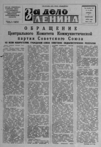 2 i i l l i l l t l i l l l l t l l l l l l l l l l l l l l l l l l l l l l E I I I I l l l l l l l l l l l l l l l l l l l l l l l l l i l l l l l l l l l i i i i «ЗА ДЕЛО ЛЕНИНА» l l l l l l l l l l l l l i l l l l l l l i l l l l l i l L l l l l l l l l l l l i ' 7 февраля 1979 года > N° 16 (4 8 3 2 ) О Б Р А Щ Е Н И Е Центрального Комитета Коммунистической п а р т и и Со в е т с к о г о С о ю з а КО ВСЕМ ИЗБИРАТЕЛЯМ , ГРАЖДАНАМ СОЮЗА СОВЕТСКИХ СОЦИАЛИСТИЧЕСКИХ РЕСПУБЛИК (Окончание. Нач. на 1-й стр). Н о в ая К онституция СССР зн а ч и т е л ь но р асш и р ил а и обогатила социально- экон омичес ки е , поли ти че ски е и л и ч ные п р а в а и свободы граж дан. Вместе с тем д л я советских лю дей прав а н е отделимы от обязанностей, свобода — от гр аж д а н с к о й ответственности, л и ч ные инте ресы — от общес твенных. Д е м о к р а т и з м нашего строя все п о л н ее воплощ аю т в своей д еяте льности Сове ты нар о д ны х депутатов, я в л яю щ и е с я п о ли ти че ск о й основой СССР. С п р ин яти ем новой Конституции работа Советов п одн я л а с ь на боле е высокую ст упень . В о зрастает их роль в р е ш е нии во пр о с о в х о зяй ств енн о го и к у л ь турн ого строительства. Миллионы д е путатов, ак тиви стов Советов п о сто ян но р а б о т аю т в гущ е народной, п р о х о д я т ш к о лу государс твенного у п равления . ' П а р т и я считает своим долгом в с е м е рно п овышать ак тивн о сть п р о ф с о ю зов, ком сомола , в с е х массовых ор г ан и заций, трудовы х к оллек тивов , р а з в и в а т ь к р и т и к у и самокри ти ку , в н и м а те л ь н о уч иты в а т ь о бщественное м н е ние , ч у т к о относиться к н у ж д а м и з а п р о с ам т р у д ящ и х ся . В стр а н е о с у щ е ств л я е т с я ш и р о к а я программа з а к о н о д а т е л ь н ы х р а б о т на основе новой К о н ституции СССР, прин имаю тс я д е й с т в енны е м е р ы по уси лен ию народного ко н т р о л я , с т р о ж а й ш е м у соблюдению госу д ар с твенн о й дисциплины, з а к о н н о сти и п равопорядк а . Коммунистическая партия и впредь будет проявлять неослабную забот у о совершенствовании политической системы общества. Голосовать за кандидатов блока коммунистов и беспартийных — значит голосовать за дальнейшее укрепление единства и сплоченности советского народа, за н е с к лонное развитие социалистического народовластия. Т ов арищ и избиратели! Весь опыт н ашего созидания у б е ж д а е т , ч т о путь , п о к о т о р о м у мы идем, — правильный , л ен и нс ки й путь . Ч т о бы д о б и т ь с я н овы х у сп е х о в на этом пути, о б есп еч и ть о сущ ествлен и е п р о г р аммны х целей , надо полностью и с п о л ь з о в а т ь в о зм ож н о сти развитого со ц и а л изм а . А к т и в н о е у ч а с т и е в р е а л и з ац и и э тих в о з м о ж н о с т е й — д е л о ч е сти к оммуни ст ов, ком сомольцев, всех сов е т с ки х людей. Ц е нтр а ль ны й Коми тет КПСС с ч и т а е т ж и з н е н н о в ажны м , чтобы к а ж д ы й сов етс ки й ч е л о в е к в ы р а б а ты в а л в себе к о м м у н и с т и ч е с к у ю у б е ж д е н н о с т ь , ак - . ти вн ую ж и з н е н н у ю позицию, го т о в ность , волю и у м е н и е строить к о м м у низм; н а с т о й ч и в о б о р о л с я з а п овышение п р о и зв о д и т е л ьн о с т и т р у д а , э ф ф е к т и в н о сти и ка че с т в а , повышал взаимную т р е б о в а т е л ь н о с т ь и отв етств енность за общ и е д е л а , р а з в и в а л д у х к о л л е к т и в и зм а и т о в ар ищ ес тв а ; у п о р н о о в л а д е в а л знаниями, д о с т и ж е н и я м и н а у к и и техники , п ередовым опытом, со в ерш ен ств о в а л свое п р о ф е с си о н а л ь н о е м а стер с тво , проявлял и н и ц и а т и в у и новаторство ; во в с е м п р о я в