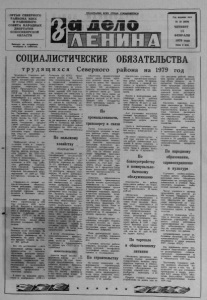 ОРГАН СЕВЕРНОГО РАЙКОМА КПСС И РАЙОННОГО СОВЕТА Н АРОДНЫ Х ДЕПУТАТОВ НОВОСИБИРСКОЙ ОБЛАСТИ Выходит по вторникам, четвергам и субботам. ПРОЛЕТАРИИ ВСЕХ СТРАН, СОЕДИНЯЙТЕСЬ! 21@ЛО И Г о д и з д а н и я 44 -й № 2 0 (4836) ЧЕТВЕ РГ 1 5 Ф Е В Р А Л Я 1 9 7 9 года Цена 2 кон. СОЦИАЛИСТИЧЕСКИЕ О Б Я З А Т Е Л Ь С Т В А т р у д я щ и х с я Северного района на 1979 год Трудящиес я Северного р а й она, настойчиво п р е т в о р я я в ж и з н ь и с т о р и че ски е решения XXV съ е зд а КПСС, советы и ука з ан и я , вы с к аз а нны е Г ен еральным с е к р е т а р е м ЦК КПСС, П р е д с е д а т е л ем П р е з и д и у м а Верховного Совета СССР тов. А. И. Б р еж не вы м но в р ем я Пре быв ания его в) Н овосибирс ке и в д ругих г о ро д ах Сибири и Дальнего Востока, добились н овы х у с п е х о в в выполнении го с у д а р ственных планов и со ц и ал и стических о б я з а т е л ь с т в т р е т ь е го года д е с я то й п я т и л е т ки. Т р у ж е н и к и сельского х о зяй с т в а выполнили объем з а к у п о к молока на 112,7 п р о цента , мя са — на 91,2 п р о цента . Государству п родано 128649 центнеров молока и 16146 центнеров мяса. Выполн ен годовой план выходного поголрвья коров, о бщ ес тв е н ное стадо п о ср авнению с 1977 годом ув еличилось на 5 процентов. Наибольший вкл ад в в ы полнение плана и со ц и а л и сти ческих о б яз ате л ьс тв по п р о д а ж е п родукци и ж и в о т н о водства внесли к о л х о з ы «П амя ть Ленина», им. XXII с ъ е з д а КПСС, им. М. Горького, «Путь к коммунизм у», «7-й с ъ е з д Советов». Высоких р е зу л ь тато в в 1978 году д о б и лись раб о тн ики Сургуто в- окой, Северной, Ударницкой, Граж данцев ской , В ерх-К рас- ноярской, М алинов ск ой ферм, н адоивши е от 2439 д о 3000 килограмм ов мо л о к а на к о рову. Справились со своими с о циалис тическим и о б я з а т е л ь ствам и р а б о т н и к и с т р о и т е л ь ства, транспорта, связи , у ч р е ж д е н и й торговли, к о м м у нального и бытового о б с л у ж и в ан ия . К апитальны е в л о ж е н и я на новое строительство в 1978 году сос тавили 4206 ты с яч рублей. Введены в э к с п л у а т а цию средняя ш к о л а на 960 м е с т в районном центре , м а гази н на 2 раб о ч их места, столовая СПТУ-21 на 80 п о садочных мест, 3 к о р о в н и к а на 600 голов, ж и л ь я общей п о ле зной п лощадью 5765 кв. метров. Выполнен план реа ли з а ци и бытовых у с л у г насе лению . З а и стекш и й го,а* розничный т о вар ооборот у в е л и чи л с я на 5 процентов , на д у ш у населен ния продано то в аров на с у м му 868 рублей. Все эти д о с т и ж е н и я — итог постоянной за б о ты п ар ти и и п р а в и т е л ь с т в а о с е ль ск ом т р у ж е н и к е , р е з у л ь т а т с а м о о т в ер ж е н н о г о т р у д а р абочего к л ас са , животноводов, м е х а низа то ров, специалистов, и н теллигенции, большой о р г а н и з а т о р с к о й и по ли ти че ско й р а б о ты п артийных , к о м с о мольских, проф сою зных и сов етс ких органов. В ответ на р еш е н и я и ю л ь ского и н оябрьс кого (1978 г.) Пленумов ЦК КПСС т р у д я щ и ес я района с ещ е боль,- шим политическим п одъ емом и т в о р че ск о й активностью р а зв е р ты в аю т соц и ал и сти ческ о е соре внов ание з а у с п е ш н о е выполнение и п е р е в ы п о л н ен и е за д ан и й 1979 года, п л а нов ч е ты р е х л е т п я т и л е т ки в целом. Критически оценивая достигнуты е резуль таты , т р у д о вы е к о л л е к т ивы н а п р а в л я ют уси ли я на и зы с к ан и е р е зер в о в произв одства, поиск н аи б о л е е рац и она льны х п у т ей д о с т и ж е н и я высоких к о н еч ны х р е зуль татов . Руководс твуя сь выводами и у стано вк ам 