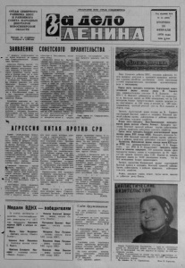 ОРГАН СЕВЕРНОГО РАЙКОМА КПСС И РАЙОННОГО СОВЕТА НАРОДНЫХ ДЕПУТАТОВ НОВОСИБИРСКОЙ ОБЛАСТИ Выходит по вторникам, четвергам и субботам. ПРОЛЕТАРИИ ВСЕХ СТРАН, СОЕДИНЯЙТЕСЬ! Год издания 44-й № 22 (4838) ВТОРНИК 2 0 Ф Е В Р А Л Я 1 9 7 9 года Цена 2 кон. ЗАЯВЛЕНИЕ СОВЕТСКОГО ПРАВИТЕЛЬСТВА 17 ф е в р а л я в о о р у ж ен н ы е си- лы Китая вто рглись на т е р р и т о рию С оциалистической Р е сп у б лики Вьетнам. А грессия Пе ки на против С о циалистического Вьетнама я в л я е тс я п р ямы м р е з у л ь т а т о м п о л и тики ш а н т а ж а и давления , к о торую к и т а й с к и е власти п р о во дили в т еч ен и е ряда л е т в отн о ш ени и Юго-Восточной А зи и в о обще и в отношении Вьетнама в особенности . П е ки н с ки е л и д е ры откры то заявляют, что х о тя т «наказать» Вьетнам, которы й проводит самостоятельную по ли т и к у и н е тольк о о т к а з а л с я с о дей с тв о в а ть ки тай ск о й э к сп ан сии в Юго-Восточной Азии, но и стал с е р ье зны м п р еп ятстви ем осуществлению гегемонистсхих х» замыслов Пекина . К и тайс к ая вер х уш к а н е ж е л ает п р им ир и ть ся с тем , что н а род Кампучии сбросил кров авы й пал ач еск ий р е ж и м Пол Пота и восстановил д р у ж е с т в е н н ы е о т ношения с соседним Вьетнамом. И спользовать это к а к п овод д ля аг рессии — путь, который , к а к п о к а зы в а е т история, приводит ч АГРЕССИЯ Ханой. Опубликовано З а я в л е ние п р а в и т е л ь с т в а СРВ, в к о т о ром говорится, что правящ и е круги К и т а я 17 ф е в р а л я н е о ж и данно н ач ал и а г р е сси в ную в о й н у против Вьетнама. Исполь зуя б р о не тан к о вы е войска, а р т и л л е рию, п ехоту, при п о д д е р ж к е в о ен н о -воздуш ны х сил, они н ачали военные д ей с т в и я н а в с е й линии вье т н а м с к о -ки т ай с к о й границы, совершили многочисленные с е р ь езн ы е п р есту п л ен и я против вье тнамск ого народа, вызвав ж е р т в ы ср еди населения . С ове рш ая агрессию против ф е т н а м а , говорится в З а я в л е нии, п р а в ящ и е кр у г и Кита я в ы ступили против всей с оциалисти ческой системы, п ротив д в и ж е ния национальной независимое - ти, подрыв аю т мир и ста биль- ♦ ность в Юго-Восточной Азии и во всем мире. А грес си вна я война правящих кругов Китая, п о д ч е р к и в а е т с я в' Заявлении , грубо п о пр а л а самые элем ен т а р н ы е принципы м е ж д у народных отношений и устава ООН и я в л я е т с я наглым вызоагр е с с о р а к бесславному, п о з о р ному концу. Н ападение К ита я на Вьетнам лишний р а з свиде тельствует, н а сколько безотв етст венн о отн о сятся в П е ки не к судьбам м и ра, с к а к о й преступной л е г к о стью ки т а й с к о е руководство п у с к а е т в ход о ружие. В торж ение ки тай ск их войск во Вьетнам, которы й л иш ь н е д авно о трази л внешнюю а г р е с сию, н е м о ж е т о ста ви ть р а в н о душным и ни одного честного ч е л о в е к а в мире, ни одно с у в е р е н ное государство. Эти а г р е с си в ные действия , идущие в р а з р е з с принципами ООН, грубо н а р у шающие м е ж д у н а р о д н о е право, р а зо б л ач аю т п ер ед всем миром подлинную сущность гегемони- стской политики Пекина в Юго- Восточной Азии. Любое п о п у стительство так о й п олитике — это попус тите льс тво насилию и дик тату , п о пу с тите л ьс тво п о пы тк ам китайск ого руководства ввергнуть мир в войну. Н а п а д е н ие на СРВ п о к а з а л о т а к ж е , ч е го стоя т разглагольствования к и тай с к и х р у к о в о д и т е л ей о з ащ и т е и нте р есо в малых и средних государств, «заступником» к о т о