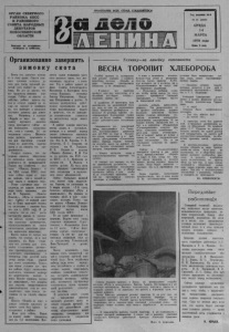 ОРГАН СЕВЕРНОГО РАЙКОМА КПСС И РАЙОННОГО СОВЕТА Н А РОДНЫ Х ДЕПУТАТОВ НОВОСИБИРСКОЙ ОБЛАСТИ Выходит по вторникам, четвергам и субботам. П Р О Л Е Т А Р И И ВСЕХ С Т Р А Н , СОЕДИНЯЙТЕСЬ! ш я х е ш и Год издания 44-й № 31 (4847) С Р Е Д А 1 4 М А Р Т А 1 9 7 9 года Ц е н а 2 к о и . Организованно завершить з и м о в к у с к о т а Веша все заметнее вступа ет в свои права. Совсем немного времени осталось до того дня, когда крупный рогатый скот выйдет на пастбища. Но это не значит, что все трудности зимовки уже позади. Сейчас во многих хо зяйствах района запасы гру бых и сочных кормов на ис ходе, не хватает и комбикор ма, что приводит к введению жесткого рациона для живот оных. Например, в колхозе «Борьба за мир» на одну голову крупного рогатого скота приходится сейчас по два килограмма концентра тов, сена и соломы, 14 ки лограммов силоса. Животно воды должны приложить в эти дни максимум усилий, чтобы не допустить падежа окота и не снизить его иро дукшвность. Следует сказать, что ны нешняя зимовка обществено го поголовья скота выгодно отличается от прошлогодней. . Только два хозяйства — кол хозы «Память Ленина» и им. XXII съезда КПСС, полу чают сейчас надои от коро вы меньше, чем в первой де каде марта в прошлом году. Резко улучшили свои по казатсли по надоям животно воды таких колхозов, как им. М. Горького, «Заветы Ильича», «Путь к коммунмз му». Сейчас от каждой коро вы в сутки получают молока па килограмм с лишним боль ше. чем ь 1978 году. И до стигнуто это за счет роста мастерства доярок и скотников дойных гуртов, улучше ния культуры производства, обалансиоованиого по своим питательным качествам рациона кормления животных. Нынче важно не только зак репить чти успехи, но и при умножить их. Надо создавать все условия для того, чтобы сегодняшние достижения правофланговых социали стического соревнования в четвертом году десятой пяти летки завтра стали нормой для всего коллектива. Только при таком условии все фер мы района будут ежемесячно выполнять плановые задания по производству молока и мяса. Многие примеры нагляд но показывают, что резервы для подъема продуктивности животноводства есть во всех хозяйствах, надо только поставить их на службу общему Делу. Колхоз «Борьба за мир» в начале зимовки крупного ро гатого скота был одним из отстающих в районе. Иное дело сейчас. Надои на корову выше прошлогод них на 1,6 килограмма. Исключен надеж молодняка круп «ого рогатого скота, все животноводы трудятся с огонь ком. Тон в работе задают до ярки Галина Александровна Максимова и Екатерина Алек сеевна Корецкая, скотники Виктор Митрофанов, Владимир Кондрашкин и другие. В колхозе развернулось действенное соревнование за полу чение максимальных надоев и привесов, что не замедлило положительно сказаться на результатах труда живот поводов. В районе хорошо известны имена доярок и скотников, которые и в зимний период умеют добиваться отличных производственных результатов. Это 3. К. Чернова. С. П. Легачева, Е. С. Седакова из колхоза им. М. Горького, И. В. Кармач из колхоза «Память Ленина», Е. Я. Усо ва из колхоза им. XXII съез да КПСС, А. С. Мамакова из колхоза им. К. Маркса и многие другие. Их труд явля ется образцом самоотвержен П'ого отношения к выполнению своих обязанностей. Сейчас буквально каждый день вносит свои коррективы. Окажем, по состоянию на 5 марал колхоз «7-й съезд Советов» опережал «Путь 