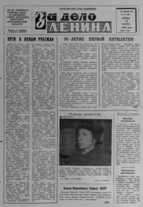 ч О Р Г А Н С Е В Е Р Н О Г О Р А Й К О М А К П С С ’ И Р А Й О Н Н О Г О С О В Е Т А Н А Р О Д Н Ы Х Д Е П У Т А Т О В Н О В О С И Б И Р С К О Й О Б Л А С Т И Выходит по вторникам, четвергам и субботам. ПРОЛЕТАРИИ ВСЕХ СТРАН, СОЕДИНЯЙТЕСЬ! Г о д и з д а н и я 44-й № 34 (4830) С Р Е Д А 21 М А Р Т А 1979 года Ц е н а 2 к о н . ПУТИ К НОВЫМ РУБЕЖАМ Третий год д е с я то й пяти л етки был годом плодотворно го т р у д а рабочих, колхозни ков и инте лли генции по п рет ворению в ж и з н ь историчес к и х реш ен ий XXV с ъ е з д а п ар тии, последующих Пленумов ЦК КПСС. Оп ределен ный в к л а д в вы по лн ени е хозяй ств енн ого пла на и принятых социалистичес к и х об яз ате льс тв вне сли и т р у ж е н и к и нашего района. К ч ет в е р т о м у о к т я б р я 1978 года они выполнили план т р е х л е т п я ти л етки по прода ж е го су д а р с т ву молока (его св ер х плана п р о да н о 29570 ц ен т н е р о в ) , справились и с ш довы м планом з а к у п о к мяса. С о ц и а л и е т ч Ь с к о е соревно в ан ие возглавляют колхозы «Память Ленина», имени М. Горького, «Путь к ком м у н и з му», имени К. М арк са . Но главной з а д а ч ей т р у ж е н ик о в к о л х о зн ы х ф е р м и по л ей п о - п р е ж н е м у оста ется у в е л и ч ен и е п р о изв о д ств а п р о д у к ц и и жи в о тно в о д ств а и по леводства. Ц е ль оп ред елен а т а к а я : д о би ть ся валового сбо р а з е р н а не м е н е е 319 ты сяч "■центнеров, подняв у р о ж а й ность п олей д о 13,3 центне ра с г ек тар а , обесп ечи ть к р у п ный рогатый ск от вы с а к о к а честв ен н ы м и к о рм ам и и в до статочном ко л и че ств е , пройз в ести в 1979 году 142 тысячи ц ен т н е р о в молока и п р о да ть г о су д ар с тву 126 т ы с я ч цент н еров; п р о изв ес ти мя са 17 т ы с я ч и п р о д а т ь — 15 ты сяч центнеров. В экономическом отноше нии ж и вотноводство в р айоне и м е е т больший вес, чем ра стени1еводство. Но это — зв е нья одной цепи. Чтобы д о би ть ся повышения п родук тивн ости ж и в о тно в о д сТва, п р е ж д е всего н еобходи мо решить р я д проблем , свя з ан ны х с п о выш ени ем уро с т а й н о с т и з ер н о вых куль тур . Основой у р о ж а й н о с т и были и остаю тся в ы с о к о к а че с т в ен ные семен а. Н а р о д н а я муд р о с т ь гласит: от п лохого се мени н е ж д и д о брого п лем е ни. Ставит ся цель; дове сти п о с е в семен ами I и II к л а с сов д о 65 п роцентов. Это д а с т п р и б а в к у на к а ж д о м гек т а р е по 0,5 ц ен тне ра . Л у чш е е о б есп еч ен и е к о л х о з е в хими чес кими у д о б р е н и я ми (в этом году на 10 ты с я чах г е к т а р а х п о с е в зерн овых б у д е т п р о изв е д ен с о дновре мен|н)>1м в н е сен и ем г ран улиро ванного суп е рф о с ф а т а ) позво лит поднять у р о ж а й н о с т ь яро вых на 0,8 ц ен т н е р а н а г ек та ре. Около 5000 г е к т а р о в б у де т обработано п р е п а р а т о м ТУР, б у д у т п р им ен ены п р о т р а в л и в ан ие семян и г е р б и ци д на я о б р а б о т к а посевов. Опыт к о л х о з а имени К. М а р к с а п о к а зы в а е т , ч го вы р а в н ив ан и е п о ле й п лан ир о в щиком т о ж е м о ж е т д а т ь зн а чите льную п р и б а в к у к у р о ж аю . В 1978 го д у у б о р о ч н о - т р а н а н о д н ы х з в ен ь е в с кюллек тианой оплатой т р у д а в р ай о н е р а б о т а л о ше сть . Т еп е р ь и х число н ам е чен о д о в е с т и д о двадцати . Н е к о т о р ы е к о л х о з ы н ам е р ен ы р а б о т а т ь п о - новому н е т о л ь к о в п ер и о д х л е б о у б о р к и , н о и во в р е м я з аготовки кормов. Все это и д о л ж н о п р ив е с ти к повышению у р о ж а й н о с т и с 9,7 ц ен тне р а с ге к т а р а (сред няя з а 3 года пятилетки) до 13,3. Увеличение сбора зе
