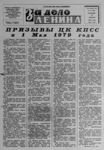 ОРГАН СЕВЕРНОГО РАЙКОМА КПСС И РАЙОННОГО СОВЕТА НАРОДНЫХ ДЕПУТАТОВ НОВОСИБИРСКОЙ ОБЛАСТИ Выходит по вторникам, четв ергам и субботам ПРОЛЕТАРИИ ВСЕХ СТРАН, СОЕДИНЯЙТЕСЬ! Год и зд а н и я 44-й № 46 (4862) ВТОРНИК 17 А П Р Е Л Я 1 9 7 9 года Ц е н а 2 коп . к 1 ТУЕа я Ц К 1 9 7 9 К П С С г о д а 1. Да здравствует 1 М а я — День м еж д ународной солидарности т р у д я щ и х с я в борьбе п ро ти в и м п ер и а л и зм а ,з а мир, демократию и с оциал изм ! 2 . Пролетарии все х с тра н , со ед и н я й тесь! 3 . Да здравств ует м а ркси зм -л е н и низм — могучее идейное о р уж и е т р у д я щ и х с я все х стран в борьбе п ро ти в империализма, за победу социализма и ко ммунизма ! 4 . Да здравствует л е н и н с к а я Комм у н и с т и ч е с к а я п ар ти я Советского Союза — руково д ящ а я и н а п р а в л яю щ а я сила с овет ско го общества ! Да здравств ует великое нерушимое единство п ар ти и и народа! 5 . П у с т ь ж и в е т в в е к а х им я и дело Владимира Ильича Ленина — создателя и р уков о д и тел я К о м м у н и с т и ч е с ко й п а р т и и и первого в мире с о ц и а л и с т и ч е с к о го г о с у д ар с тв а ! 6 . Слава ве ликом у советскому наро ду — стро и телю к омм унизм а , последоф ц р з а т е л ь н о м у борцу за мир во всем м и ре! 7 . Да здравствует г е р о и ч е с к и й ра бочий класс С траны Советов — ведущая сила в с троительс тве к омм унизм а ! 8 . Да здравств ует славное к о л х о з ное к р е с т ь я н с т в о — а к т и в н ы й с т р о и тель коммунизма ! 9 . Да зд равств ует совет ская нар одная и н т е л л и г е н ц и я — а к т и в н ы й с т р о итель коммунизма ! 1 0 . Да зд равств ует н е р у ш и м ы й союз рабочего к л а с с а , к о л х оз н о го к р е с т ь я н с т в а и народной и н т е л л и г е н ц и и ! П у с т ь креп не т с о ц и а л ь н о -п о л и т и ч е с кое и идейное единство советско го общ ес тва ! 1 1 . Да з дравс тв ует б р а тска я др ужба и непоколебимое единство всех н а ц и й и народностей нашей с о ц и а л и с т и ч е с к о й Р о д и н ы ! 1 2 . Да здравств ует советсная Кон- ^ с - т и т у ц и я — Основной Закон первого в мире с о ц и а л и с т и ч е с к о г о общенарод-' к о го г о с у д а р с т в а ! Да зд р авс тв ую т Советы нар од н ы х д е п у т а то в ! П у с т ь ш и р и т с я у ч а с т и е р а б о ч и х , к р е с т ь я н , и н т е л л и г е н ц и и в у п р а в л е н и и делами государс тва и общества ! 1 4 . Т ру д ящ и е с я Советского Союза! Боритесь за вы п о л н е н и е и с т о р и ч е с к и х реше ни й XX V съезда КПСС, с тре м и тесь п о л н ос тью реа лизовать во зм о ж н о с ти развито го с оциализма ! 1 5 . Т ру д ящ и е с я Сов етского Союза! Ш и р е развертывайте д в иж ен и е за дост о й н у ю в с т р е ч у 1 1 0 - й г о д о в щ и н ы со дня р ож д ения В. И. Л е н и н а ! У ч и т е с ь ж и т ь , работать и бороться п о - л е н и н с к и , п о - к о м м у н и с т и ч е с к и ! 1 6 . К о м м у н и с т ы ! Будьте в а в а н г а р де всенародной борьбы за в ы п ол н ен и е реше ни й X X V съезда КПСС, за п о в ы шение эффективности и качес тва рабо ты ! 1 7 . Советские профсоюзы! А к т и в н о у ч а с т в у й т е в у п р а в л е н и и г о с у д а р с т в е н н ы м и и общественным и д елами, в реш е ни и п о л и т и ч е с к и х , х о з я й с т в е н н ы х и с о ц и а л ь н о - к у л ь т у р н ы х в о просов ! С ов ершенс твуйте со ци а л и с ти че ское со ревнование и д в иж ен и е за к о м м у н и стическое отношение к т р у д у ! Да зд р ав с тв ую т советские профсоюзы — школа коммунизма ! 1 8 . Юноши и д е в у ш к и ! Нас то й чи в о у ч и тес ь к о м м у н и з м у ! Овладевайте з на н и я м и , к у л ь т у р о й , професси она льным мастерством! Будьте а 