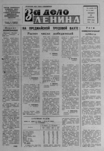 О Р Г А Н С ЕВ ЕРН ОГО Р А Й К О М А КПСС И РА Й О Н Н О ГО С О В Е Т А Н А Р О Д Н Ы Х ДЕ П У Т АТО В Н О В О СИ БИ Р СК О Й О Б Л А С Т И Выходит по вторникам, четвергам и субботам П Р О Л Е Т А Р И И В С Е Х С Т Р А Н , С О Е Д И Н Я Й Т Е С Ь ! Год издания 44-й № 50 (4866) Ч Е Т В Е Р Г 26 А П Р Е Л Я 1979 года Ц ен а 2 коп. П о д в и г к о л л е к т и в и з а ц и и Экспозиция «Колхозам — 50 лет» развернута на ВДНХ СССР. Накануне первой пятилетки в стране насчитывалось 24 миллиона раздробленных крестьянских хозяйств, оснащенных примитивным инвентарем. Примерно (55 процентов дворов были бедняцкими, на них приходилась «четверть лошади». Около 75 процентов ярового поля засевалось вручную, 44 процента зерновых убиралось серпом I. л косой. Исторический курс на кол- локтивиац'ито сельского хо- 5лгйетва был провозглашен XV съездом партии (1927 г.). Состоявшийся в 1934 году XVII съезд партии отметил, что колхозный строй в СССР победил бесповоротно. Организационное оформление колхозного строя завершил второй# Всесоюзный съезд кол- \о;‘?1,|'зв-ударии1ков (1935 г.). Сегодня у нас 26,7 тысячи колхозов и 20,5 тысячи совхозов. Это крупнейшие в мире высокомеханизированные сельскохозяйственные предприятия. В среднем на колхоз приходится 6,7 тысячи гектаров угодий, 4"2 трактора, около 1800 голов крупного ртатого скота, более 1000 свиней. Колхозы дают сегодня добрую половины выращиваемого в стране зерна, 70 процентов хлопка, 84 процента льноволокна. На их долю приходятся основные сборы сахарной св*лы, подсолнечника, больше половины производимого молока. Но сравнению с 1928 год а валовая продукция сельского хозяйства увеличилась в 3, 4 раза. «Ленинское учение по аграрному вопросу, идеи и принципы его кооперативного плана были и остаются на вооружении нашей партии, — сказал в докладе на июльском (1978 г . ) Пленуме ЦК КПСС товарищ Л. И. Брежнев. — ...Учение, заветы В. И. Ленина будут и впредь служить нам верным компасом в разработке и осуществлении планов дальнейшего развития сельского хозяйства». Пленум четко определил главную задачу современного з«|иа ленинской аграрной политики. Это всестороннее, динамичное развитие сельского хозяйства и значительное повышение эффективности всех его отраслей, надежное снабжение страны продовольствием и сельскохозяйственным сырьем. I (ТАСС) НА ПРЕДМАЙСКОЙ ТРУДОВОЙ В А Х Т Е Р а с т е т число п о б е д и т е л е й На предприятии «Транссельхозтехника» еще в начале апреля широко (развернулось социалистическое соревнование за достойную встречу международного, праздника — 1 Мая. Сейчас уже определились победители предмайской трудовой вахты. На сегодняшними день, например, " водитель Алексей Гаврилович Телегин выполнил четырехмесячный план на 178 процентов. Отличные показатели у другого шофера Валерия Федоровича Багрова: задание четырех месяцев текущего года досрочно завершено на 188 процентов. Хорошо поработал в трудную/ пору весенней распутицы Владимир Михайлович Савицкий, выполнивший план на 128 процентов. Число правофланговых социалистического соревнования в честь Первомая растет с каждым днме . А. ЗЕЛЕНСКИЙ, ст. экономист. Досрочно завершен производственный план Северной П-МК «Мелиоводстрой». Объем работ, выполненный с начала года предприятием, равен 176 тысячам рублей или 108 процентам к установленному заданию. План по осушению земель выполнен на 106,1 процента. Эти успехи достигнуты в ходе социалис
