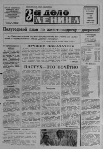 О Р Г А Н С Е В Е Р Н О Г О Р А Й К О М А К П С С И Р А Й О Н Н О Г О С О В Е Т А Н А Р Д Д Н Ы Х Д Е П У Т А Т О В Н О В О С И Б И Р С К О Й О Б Л А С Т И Выходит по вторникам, четвергам н с у б б о т а м мшшшшяшяшшж Го д и з д ан и я 4 4 - й № 7 0 ( 4 8 8 6 ) Ч Е Т В Е Р Г 14 И Ю Н Я 1979 года Ц ен а 2 коп. Полугодовой план по животноводству—досрочно! « . . . Н а ш а н е о тл ож н а я з а д а ч а — с о с р е д о т о ч и т ь в с е у с и л и я на вы пол нение и пере вы п ол нени е планов д е с я т о й пятилетки». (Л. И. Брежнев. Доклад на июльском Пленуме ЦК КПСС) Л У Ч Ш И Е П О К А З А Т Е Л И В со р ев н ую щ и х с я районах Как известно, наш район соревнуется с соседним, Кыш- товским. Естественно, что нак кыштовцы, так и северяне прилагают максимум усилий, чтобы досрочно выполнить производственный план и социалистические обязательства, принятые на первое полугодие 1979 года. Сегодня свои предварительные результаты подводят животноводы. Кыштовка Ж и в о т н о в о д ы района 11 июня 1 9 7 9 года , получили в су тки по 10 килограммов молока на к о р о в у . На с о о т в е т с т в у ю щ у ю дату п р ош л о го года э т о т показатель равен 9 , 9 килограммам . Лучший р е з у л ь т а т принадлежит к о л х о з у «К р а с н а я з в е з д а » , где надои с о с т а в ляют 1 1 , 2 килограмма м о лока на к оров у . С е в ер н о е Самой вы сок ой п р о д у к тивности м о л о ч н о го стада на 11 июня до би л и сь ж и в о тн о в о д ы к о л хо з а -«П уть к к о м м у н и з м у » . З д е с ь надои мол ока на к о р о в у с о с т а в и ли 1 1 ,2 килограмма. В целом по району эт о т показатель равен 10,1 килогр амма. Кыштовка За пять месяцев нынеш него год а х о зяй ст в ам и рай она продан о г о с у д а р с т в у 9 0 6 8 3 цен тнера молока , что с о с т а в л я е т 7 4 , 5 процента к п о л у г о д о в о м у заданию. Мяса за э т о время продано 1 4 7 5 4 центнера , или 8 5 , 3 процента к плану. С е в ер н о е К о л х о з ам и нашего рай о на с начала год а продано г о с у д а р с т в у 4 8 0 3 1 центнер молока при плане шести ме сяц е в 6 5 5 0 0 цен тнеров. Задание выполнено на 7 3 , 3 процента. По м я с у в ып ол нение п о л у г о д о в о г о плана к олхоз ами с о с т а в л я е т 1 0 2 ,0 процента. По итогам социалистического соревнования среди ферм колхоза имени XXII съезда КПС за лять месяцев нынешнего года первенство занял коллектив Ударницкой фермы. С начала года здесь получено от каждой коровы в среднем ло 1075 килограммов молока. Лучшие результаты у доярок Еще с о в с е м недавно можно бы л о слыш ать, как ма ть или о т ец грозили н е п ут е вом у с ы ну: — Б уд еш ь пл охо у чи ться , в пастухи отдам! Тогда эта п р оф е с с и я не шла ни в какое сравнение с р а б о той т рак то ри ста , комбайнера, ш оф ера . Сейчас ж е п а с т у х — чел овек на с ел е уважаемый , а его т р у д справедли во р а с ценивается как п очетный и очень нужный в к о л хо з н ом пр ои з в о дст ве . У б е д и ть с я в э т ом можно на примере п а с ту ха Витинской бр игады колхоз а « В о с х о д » Лаврентия В асилье вича Блинова. .. .О т к ры вш а я ся п е ре д нами картина была самой типичной для п о д о б ны х ситуаций . На фоне недал екого леса м едл ен но д ви га л ось ст а д о че р н о - б е лых к о ро в . За ними в е р х ом на кбне сл ед овал мужчина в б р е з е н т о в о м плаще, к о т о ры е с незапамятных врем ен з о в у т на с ел е дождевиками . Н аво дить нужный п о р я д о к в стаде е м у помогали две ш у с т р ы х с о б а ч о н к и . Они д е л о в и т о о б лаивали о тби вш их ся о т гурта ко ро в , и те поклади сто в о з вращались в п ол ож ен н ое м е сто . Наш р а з г о в о р 