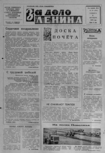 ОРГАН СЕВЕРНОГО РАЙКОМА КПСС И РАЙОННОГО СОВЕТА Н АРОДНЫ Х ДЕПУТАТОВ НОВОСИБИРСКОЙ ОБЛАСТИ Вы х о ди т по вторникам, четвергам и с у б б о т а м ПРОЛЕТАРИИ ВСЕХ СТРАН , СОЕДИНЯЙТЕСЬ! Г о д и з д а н и я 4 6 - й № 120 (4936) С У Б Б О Т А 6 О К Т Я Б Р Я 1 9 7 9 года Цена 3 коп. Сердечное поздравление Районный комитет партии и исполком районного Совета народных депутатов сердечно поздравляют учителей, воспитателей дошкольных учреждений, всех работников народного образования района с замечательным праздником — Днем - учителя. Героизм учителя, скромный и будничный, проявляется в повседневном, кропотливом труде, в постоянном горении, в умении отдать весь жар своего сердца детям. Нелегко д а ется ему успех: ценой труда, терпения, раздумий, радостей и огорчений. Но путь учителя прекрасен. Успехи советской школы предопределены неустанной з а б о той Коммунистической партии и Советского государства о совершенствовании качества и эффективности обучения и воспитания. Педагогические коллективы района в союзе с общественностью немало сделали для выполнения решений XXV съ е з да КПСС, последующих постановлений партии и правительства о народном образовании. Ширится патриотическое движение «От творчески работающего учителя —к творчески работающему коллективу», живет и действует почин волгоградцев, подхваченный многими педагогическими коллективами района, «Каждому уроку — отличную подготовку, современные методы, высокое качество». Учитель продолжает себя в учениках. Результаты' его труда — в судьбах учеников. Дорогие товарищи! В этот торжественный день районный комитет КПСС, исполком районного Совета народных д еп у татов желают вам доброго здоровья, новых успехов в вашем благородном труде, большого личного счастья! **» РАЙКОМ КПСС РАЙИСПОЛКОМ С трудовой победой Председателю колхоза «Борьба за мир» С. Г. БУЗЮРГИНУ Секретарю партийной организации М. С. СОРОКИНУ Председателю сельского• Совета И. Г. ГЛАМАЗДИНУ Председателю профкома, И. И. ЛАВРОВУ Секретарю комсомольской организации Г. Д . ПРОХОРОВОЙ Специалистам, комбайнерам, шоферам, дояркам, телятницам, скотникам, всем труженикам хозяйства. Дорогие товарищи! Северный райком КПСС, исполком р ай со в ета сердечно п о з д р а в л я ю т всех тр у ж е н и к о в кол х о з а «Б о р ь б а з а мир» с зам е ч а т е л ь н о й победой — за вершением уборки у р о ж а я , выполнением планов и социалистически х о б я з а т е л ь с т в по п р о д а ж е г о с у д а р с т в у п р о д у к т о в ж и в о т н о водства . С нач ал а года на приемные пункты вашим хозяй ством о т п равлено 4972 центнера молока, 1428 цен тнеров мяса. По п р о д а ж е хлеба г о с у д а р с т в у х о зяй с т в о выполнило д в а н а роднохозяйственных плана. Ваши успехи достигнуты б л а г о д а р я ц(ироко р а з в е р н у в ш е муся со циалистическому соревнованию, м а ссо в ом у п р о я в л е нию с а м о о т в е рж е н н о го т р у д а р аб отн ик ов полей и ферм, большой политической и о р г ан и з ато р ск о й р а б о те партийной', профсоюзной и комсомольской организаций. Мы от души б л а г о д а р им пер едовик ов социалистичес кого соре вн ов ан ия : ком ба й н е р о в — В. П. Бузюргина , Н. В. К о р о стелева, Е. Б. В еселова ; д о я р о к — Т. А. Чигареву , Е. А. Кортцкую , А. М. Г л а м а з д и н у , Г. А. Максимову; скотников 1. А. Панов а , И. В. К ивишева и всех механизаторов, шоферов, раоотников ж и в о т н о в о д с т в а за их добросовестным т