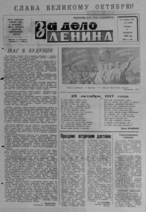 СЛАВА ВЕЛИКОМУ ОКТЯБРЮ! ОРГАН СЕВЕРНОГО РАЙКОМА КПСС И РАЙОННОГО СОВЕТА НАРОДНЫХ Д ЕП УТ А Т О В НОВОСИБИРСКОЙ ОБЛАСТИ Выходит по вторнинам четвергам и субботам ПРО Л ЕТА РИ И ВСЕХ СТРАН, С ОЕДИНЯЙТЕСЬ ! Г од издания 44-й 134 ( 4 9 5 0 ) С Р Е Д А 7 Н О Я Б Р Я 1 9 7 9 года Ц ена 2 коп. ШАГ В БУДУЩЕЕ Наша Родина встречает 62-ю годовщину революции в расцвете своего могущ ества . Она до стигла передовых р у б еж ей социально- экономического и культурного прогресса. Свой скромный вклад в общее д е л о советского народа вносят и трудящиеся Северного район а. С первых дней четвертого г о д а д е сятой пятилетки северяне разв ернули б орьбу з а досрочное выполнение госуд ар ств енных планов и социалистических обязательств. Большинство коллективов досрочно справились с производств ен ной программой девяти месяцев. План реализации промышленной продукции з а этот период выполнен на 110,7 процента. Сверхплановая реализация составила 513 тысяч рублей. Ударным трудом встречают праздник Октября труженики сельского хозяйст ва . Борьба з а хлеб в этом г о д у была исключительно н а п р я ж е н н о й . Однако она, как никог да раннее, показала, что х е л ь с к о е хозяйство района способно дават ь высокую отдач у д а ж е при самых сложных погодных условиях. Валовой сбор зерн а составил 32 5 тысяч центнеров. Урожайность зерновых культур составила 15,3 центнера с одного гектара, что на 3 центнера выше ур ож айн ости прошлого г ода. С к а ж д о г о гектара получено зеленой массы силосных культур по 200 центнеров при плане 152. Такой у р о ж а й в районе получен впервые. Организованно, высокими темпами провели убор оч ную стр а д у земледельцы колхозо в имени М. Горького, «Борьба з а мир», «В о с х о д » , имени XXII с ъ е з д а КПСС. Значительных успехов в выполнении плановых за даний и о б я з а тельств четвертого года д есят ой пятилетки по х л е б о с д а ч е д о б и лись колхозы «Борьба з а мир», имени Карла Маркса, «Память Ленина» , имени М. Горького, «7-й с ъ е з д Советов», «В о сх о д » , имени XXII с ъ е з д а КПСС. Колхозы продали зерна г о с у д а р с т ву бол е е 108 тысяч центнеров. Большую тр удовую п о б е д у о д е р ж а л и животноводы района, на д в а с половиной месяца раньше срока завершив годовой план по производств у и п р о д а ж е госу д а р ств у молока. Они близки к выполнению плана продажи мяса. Д о конца г ода труженики ферм намерены продать молока дополнительно около 20 тысяч центнеров. З а 9 месяцев текущего г о д а в среднем на о д н у корову получено 1912 килограммов молока, или на 55 килограммов больше, чем за этот период прошлого го д а . Наибольший прирост надоя молока на корову обеспечили колхозы «Борьба за мир», «Путь к коммунизму», «7-й с ъ е з д Советов», имени Карла Маркса, «В о с х о д » . Как видим, северянам есть чем гордиться. И сегодня , празднуя годовщину Октября, мы с особой теплотой и признательностью говорим о лю д я х тр уда, о славных тр ужениках с ела , умнож ающих мощь нашей страны, развивающих сельскохозяйственное п р о и зв о д ство, отдающих свои силы и талант во имя расцвета социалистической Отчизны. Отличными результатами встречают 62-ю годовщину Великого Октября шоферы «Транссельхозтехники» Александр Кузьмич Виноградов, Валерий Федорович Багров, рабочие кирпичного з а в о д а Сергей Ермолаевич Иванов и Татьяна Васильевна Мокроусова, из ПМК «Мелиоводстрой» — шофер Иван Пантелеевич Григорьев и пилор