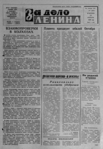 1 3 ноября 1 9 7 9 года ф 3 № 1 3 6 ( 4 9 5 2 ) i i i i i i i i i i i i i i i i i i i i i t i i i i i i i i i i i i i i n n i r «ЗА ДЁЛО Л Е Н И Н А » u l i U l i i i i l l i l i l l i i i i i t i i i i l i i l i l i i i l i l i i i l i i i i i i t i i n i l i t t i i M l i i l i i t i n i i i l l i i i i ----------------- — .- На проверке —выполнение обязат ельств — ЗАКАНЧИВАЯ ГОД ЧЕТВЕРТЫЙ... Прошедшие месяцы этого года д л я ж ивотноводов и з е м ледельцев колхоза «Б о р ь б а за мир» были, временем н а п р я женного, упорного т р у д а . Совместные усилия ко л л е к т и ва были направлены на д а л ь нейший подъем эффективно сти се льскохозяйственного про нзводств а , на достижение главной цели — повышение продуктивности общественного ж и вотновод ств а и у р о ж а й н о сти сельск охозяйственных культур. Основные задачи , с т о я щ . е перед т р уж ени к ам и колхоза в тек ущем году четко и знежены в социалистических о б я зате л ь с тв а х , принятых к о л л е к тивом. Четвертый год деся то й п я тилетки близи тся к з а в е р ш е нию. Н а с т а л о время подвести предварительны е итоги того, что сд елано. С каким ж е рез у л ь т а т о м по дх о д ят к финишу труж ени ки колхоза « Б о р ь ба з а мир»? Одним из решающих у ч аст ков производств а в колхозе я в л я е т с я животноводство . Эта отрасль — об ъ ек т неослабного внимания руководителей и сп ециалистов х о зяй ств а , всех, кто ст оит у истоко в п олучения мо л о к а и мяса. Н а д о с к а з а т ь , что намеченные цели о к а з а л и с ь по плечу д о яр к а м , телятницам , скотникам. В о б я з а т е л ь с т в а х ск азан о : «Выполнить годовой план по п р о д а ж е молока го су д а р с т ву к 7 но яб р я ; продаагь первым сортом не менее 80—85 про центов этой продукции; п олу чить о т к а ж д о й коровы по 21 цен тнеру молока ; обеспечить среднесуточный привес крупного рогато го ск о та не менее 500 граммов, а на о т корме — не менее 800 г р а м мов; выполнить план п р о д а жи мя са г о с у д а р с т в у к 20 д е к а б р я ; повысить с р е д н е с д а точный вес животных д о 350 килограммов». В настоящее время х о з я й ство у ж е справилось с тем, что было намечено на год: за де с я т ь месяцев го су д ар с тву п родано 5139 центнеров моло ка при плане 4700, р е а л и зо вано 1542 центнера мяса при плане 1500. Д остижение т ак их резуль татов ст а л о во з можным б л а г о д а р я настойчивым стремлениям всех ж и в о т новодов к заветной цели. Из года ' в год в о з г л а в л яю т социалистическо е соревнование д о я р о к Т. А. Чи- г аре ва , Е. А. Корецкая . Хорошо т р у д я т с я А. М. Г ламаз- дина и Г. А. М аксимова. Это люди с богатым опытом, о т носящиеся к своим о б я з а н н о стям с чувством долга и большой ответственностью. По надоям молока на к о рову впереди иду т ж и в о т н о воды Ургульской фермы: с нач ал а года зд есь надоено от к а ж д о й коровы по 2068 килограмм ов. Продукцию п о лу ч ают в колхозе высокого к а ч е ства. И з всего проданного гос у д а р с т в у молока — 94,6 процента принято первым сортом. З а л о г о м выполнения плана по п р о д а ж е мяса ста ло высо кое ма стерс тво животноводов, з ан я ты х на о ткорм е скота. Так, например , скотники П. Т. Л а в р о в и И. В. Х рабрый в о к тя бр е получили по 750 г р а м мов среднесуточного , привеса на голову. Среднесуточный привес од ной головы на откорм е з а де сять месяцев составил в целом по хо зяй ству 784 грамма, а д о конца года этот п о к а з а те ль п р е д п о л а г а е т с я , повысить. Словом, д ел а у ж и в о т н о в о дов неплохие. А ка к о е же полож ение сложилось у полеводов? Вот их основные за дачи, з аписанные