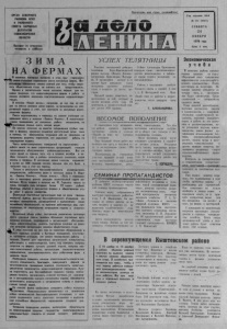 2 l l l l l l l l l l l l l t l l l i l l l i l i l n l l i i i i t i m 2 4 ноября 1 9 7 9 года ♦ N° 141 ( 4 9 5 7 ) 11111111111111111111ниiiiii i i i i ij i i i i nii i i i iuri i i i i i i ufну « ЗА ДЕЛО ЛЁНИНА» О Т К Р Ы Т О Е З А Н Я Т И Е Партийная жизнь П рошел о т к р ы т ы й тео р е т и ч е с к и й семинар в Северной средней школе, где п р о п а г а н дистом я в л я е т с я преподаватель и с т о р и и К . В. П уд ов . На да н ном з а н я т и и разбиралась тема «Формирование а к т и в н о й ж и з н е н н о й п о з и ц и и , у с и л е ни е н р а в с т в е н н о г о в о с п и т а н и я т р у д я щ и х с я » . Но прежде п р и с у т с т в у ю щ и е п р о с л у ш а л и к р а т к у ю информац и ю о в а ж н е й ш и х с о б ы т и я х м е ж д у н ар о д но й ж и з н и , с к о торой в ы с т у п и л преподаватель н ач ал ь н ой военной п од го товки В. Л. Юрьев. Затем преподаватель и н ос т р ан но го я зы к а Г. Г. Соломатина сообщила о делах в стране, области, р а й оне. Лен и н о ко м м у н и с т и че с к о й морали, задачи нра в с тв е нн о го в о с п и т а н и я — главное содерж а ни е доклада преподавателя- словесника Г. А. В и но градо во й. Ее вы с т у п л е н и е п о н ра вилось всем слуша телям . О к о н с т и т у ц и о н н ы х основах н ра в с т в е н н о с т и рассказала преподаватель р у с с к о г о я зы к а и л и т е р а т у р ы А. Е. Н о в и к о ва. Ее в ы с т у п л е н и е т а к ж е получило в ы с о к у ю о ц е н к у . Эмоциональным и в п е ч а т л я ю щим был рас сказ ди ректора ш к о л ы Т . М. Сазоновой о проблемных вопросах в о с п и т а н и я . После з а н я т и й семинара п р о п а г а н д и с т ы в ы с к а з ал и свои м н ения . Они отметили, что довольно с л о ж н а я тема р а с к р ы та хорошо, рефераты содерж а т е л ь н ы , в ы с т у п л е н и я н а с ы щены з а пом инающим ися образами. I I в этом немалая засл у г а их п р о па ган д и с та К. В. Пудова, к о то р ы й умеет донести слово п а р ти й н о й п ропа га н д ы до с л уш а тел е й , причем т а к , чтобы оно не просто з вучало , но и было пон я тно , п р и н я т о и п ра в и л ь но оценено. П. СМИРНОВ. А Т Т Е С Т У Ю Т С Я Л Е К Т О Р Ы В райкоме КПСС К А Д Р А М С Е Л А - ПОСТОЯННОЕ ВНИМАНИЕ Бюро Сев ерного р айком а КП СС р ас см о тр е ло вопрос «О по д го то в к е к а д р о в массовых профессий» и п риняло п о с т а новление, в ко тором наметило дополн и тельны е меры по п од го то в к е м е х а н и з а т о р о в и д р у гих к а д р о в массовых профессий д л я кол х о зо в и п р е д п р и я тий района. Н амечено в тек ущем году во всех к о л х о з а х о р г ан и з о в а т ь четкую систему учебы м е х ан и з а т о р о в и ж и в о т н о в о д о в по повышению клас сности , о б р а тить са м о е се рье зное в н и м а ние на к а че ство проводимых з а н я т и й , о к а з ы в а т ь п о сто ян ную практическую и методическую помощь в их п о д го то в ке и проведении силами спец и а л и с т о в у п р а в л ен и я се ль ского х о з я й с т в а . И спо л ком у рай о н но го С овета, упр авл ен ию се льского х о з я й с т в а , р у к о в о д и т е л ям СПТУ-21 поручено о р г а н и з о в а т ь курсы по по д го то в к е мех а н и з а т о р о в д л я р а б о ты на т р а к т о р а х К-700, р ассмотреть вопросы о с т р о и тел ь ств е учебного к о р п у с а и выдел ении зем е л ьн о го у ч а с т к а д л я о р г а н изации учебного х о з яй с т в а при училище м е ханизации . Бю р о п о т р е б о в а л о от д и р е к т о р а СПТУ-21 Г. Г. З ы р я н о ва, п р о р а б а у ч а с т к а ПМК-64 Н. И. З а в и д о в а , п р е д с е д а т е л я М П М К А. Ф. К а ш к а р е в а , д и р е к т о р о в школ р а й о н а у луч шить п р офориент ационную р а боту среди уч ащ е йс я мо л о д ежи, обеспечить выполнение п лан о в к о 