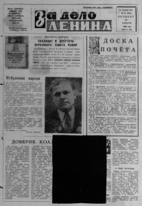 О Р Г АН С Е В Е Р Н О Г О Р А Й К О М А КПСС И Р А Й О Н Н О Г О С О В Е Т А Н А Р О Д Н Ы Х Д Е П У Т А Т О В НОВОСИБИРСКОЙ О Б Л А С Т И Вы хо ди т по вторникам четвергам и субботам Пролетарии всех стран, соединяйтесь! а д е / i v Год издания 45-й № 14 (4986) Ч Е Т В Е Р Г 31 Я Н В А Р Я 1 9 80 года Цена 2 коп. = = = = = = = Навстречу выборам К А Н Д И Д А Т В Д Е П У Т А Т Ы ВЕРХОВНОГО СОВЕТА РСФСР 1? соответствии с Законом Российской Советской Федера- тивний С оциалистической Р е с п у б л и к и «О выборах в Верховный Совет РСФСР» статей 30 и 39 о к р у ж н а я избират ельная комиссия зарегистрировала кандидатом в д е п у т а ты Верховного Совета РСФСР Т А Р А Н И Н А Н И Н О Л А Я И Л Л А Р И О Н ОВИ Ч А , 1934 года рождения, члена КПСС, трак ториста колхоза «Заветы И ль и ч а » Кыштовского района по К у й б ы шевскому избирате льному о к р у г у Л£ 559. Д О С К А Избранник народа По итогам 1979 года постановлением бюро р айком а КПСС, исполкома районного Совета народных депутатов и райкома профсоюза ра ботников сельского хозяй ства коллективу Веселовской молочнотоварной фермы Присуждено третье место в социалистическом соревновании животноводов района. Руководит этим производственным участком коммунист Анатолий Егорович Акатьев. В успехе веселовцев есть доля и его труда. Как знающего, требовательного Специалиста, неустанно заботящегося о производстве, д е я тельного общественника, односельчане выдвинули Анатолия Егоровича кандидатом в депутаты сельского Совета. Во время своей предыдущей депутатской д е ятельности Анатолий Егорович был членом исполкома, часто выступал на сессиях исполкома сельского Совета с деловыми предложениями, рекомендациями, активно участвовал в решении всех важных вопросов. Д о в е р я я ему высокий пост д епутата в тре тий раз, коллектив бригады уверен, что у д а р ник девятой пятилетки, победитель социалистического соревнования за 1973 и 1977 годы, награжденный медалью «За трудовую доблесть» Анатолий Егорович Акатьев с честью опр авд ает это доверие. На с н и м к е : А. Е. Акатьев. Фото Б. Королева. Д О В Е Р И Е К О Л Это как раз ' тот случай, который подтв ерждает мысль, что не место красит человека, а человек — место. Действительно, дело не может быть пустяковым и незначительным, если к его выполнению относиться со всей ответственностью и добросовестностью, как поступает, например, Е. II. Поляченко. В нашем селе Ефим П а в л о вич живет с 1959 года. И все это время его трудовая биография неразрывно с в я з а на с комбинатом коммунальных предприятий и благоуст , ройства. Был он плотником, сантехником, а сейчас — старшин кочегар котельной, которая об служивает баню и прачечную. Обслуживание мощного котла — процесс сложный. Надо уметь при минимальном расходе топлива получить максимальное количество теплокалорий, обеспечить бесперебойную эксплуатацию взаимосвязанных механизмов и агрегатов, постоянно д е р ж ат ь под контролем показания многочисленных приборов. • Рабочий день кочегара чинается в шесть часов зака нчивается к пюлу когда последний посети покинет баню и котел перейдет на более споко режим эксплуатации. Но чегар должен бдительно дфть за тем, чтобы в ра торах отопления циркул вала горячая вода, не п огонь в топке, имелся до точный з ап ас воды в сп альных емкостях. Согласно графику, каж кочегар после отработа смены должен отдыхать „ суток. Скажем сразу , это распространяется на к