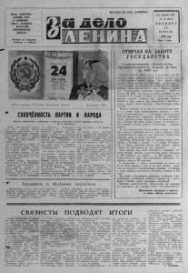 ОРГАН СЕВЕРНОГО РА Й КОМ А КПСС И РАЙОННОГО СОВЕТА НАРОДНЫХ Д Е П УТ А Т О В НОВОСИБИРСКОЙ ОБЛАСТИ Выходит по вторникам четвергам и субботам Год издания 45-й № 20 (4 9 9 2 ) Ч Е Т В Е Р Г 14 Ф Е В Р А Л Я 1 9 8 0 года Цена 2 коп. П л а к а т х у д о ж н и к а М. Г етмана . И зд а т е ль с т в о «Плак ат» , Фотохроника ТАСС * СПЛОЧЁННОСТЬ ПАРТИН П НАРОДА Встреча избирателей с ка н д и д а т о м в д епутаты областного Совета народных д еп у т а т о в Н. А. Борисовым Яркой демонстрацией нерушимого союза рабочего . к ласса, колхозного кре сть ян ств а и на-- родной интеллигенции, н е р а з р ы в ного единения партии и н ар о д а я в л я е т с я подготовка к выборам в Верховный Сове т Р С Ф С Р и местные Советы. По и з би р ате л ьн ом у о к р у г у № 328 в областной Совет б а л л о т и руется первый с е к р ета р ь С е в е р ного рай к ом а КПСС Н и колай Александрович Борисов. 12 ф ев р а л я в районном Д о м е куль туры изби рате ли в стретились со своим канд и да том . Встречу о ткры л п р ед сед ате л ь райисполкома Г. И. Ивашкевич. Б урным и ап лодисментами у ч а стники встречи отв етили на предлож ен ие об избрании почетного п резидиума в со с т а в е П олитбюро Ц К КПСС во г д ав е с тов арищ ем Л. И. Бреж не вы м . О трудовой и общественной д еяте льности Н. А. Борисов а р а с с к а з а л а доверенное лицо к а н д и д а т а в д еп у таты , начальник о т д е л а к а д р о в .межколхозной ПМК Н. И. Б о бровн и ков а . Она п р и зв а л а всех избирате лей в день выборов единодушно о т д а т ь свои голоса з а к а н д и д а т а нерушимого б лока коммунист ов и беспартийных. На встрече выступили: д и р е к тор сельского профтехучилища Г. Г. З ы р я н о в , с е к р ета р ь пар ти й ной о р г ан и з ац ии лесхоз а М. А. Ширя ев , агроном к о л х о з а « З а веты Ильича» В. Я. Вильшкерст, з а в е д у ю щ а я дет ским ко м бинатом № 1 В. Д . К аш к а р е в а , шофер тр ан сп о р тн о го п редприятия «Трансс ельхозтехник а» В. В. Коростелев, • уп равляющ и й райсе ль - хозтехникой Н. А. Л аб ей ки ц , м а стер м а с л о з а в о д а Т. Н. К о р о стелев а. С ответной речью выступил тепло встреченный собравшимися Н. А. Борисов. Он р а с с к а з а л о д е л а х р ай о н а з а четыре года п я тилетки и з а д а ч а х , которы е пре дстоит реш ить в 1980 году. Н. А. Бори сов выр а зил се р дечную б л а г о д а р н о с т ь и з б и р а т е лям изби р ате л ьн о го о к р у г а № 328, ко то ры е выдвинули его к а н д и д а т о м в д еп у т а ты областного С овета н ародных д еп у тато в , з а верил, что п р и л ож и т все свои силы, чтобы о п р а в д а т ь их высокое доверие. Н а встреч е избирате лей у т в ерж д ены н а к а зы к а н д и д а т у в деп у т а ты решить вопрос о стр о ительстве учебного корпуса д л я ССПТУ-21 и детск ого ком би н ата в селе Северном. Т р у д я т с я с болЬшим подъёмом М ехани з аторы ко л х о з а «7-й с ъ е з д Советов» с большим подъемом т р у д я т с я на ремонте т е х ники. Н а линейке готовности у ж е с то я т плуги и ку л ь тив а то ры . П р и б л и ж а е т с я к к он ц у ремонт т р а к т о р о в и зерн овых комбайнов. Отлично р а б о т аю т в эти дни м о л о ды е м е х а н иза торы к о л х о з а Н и к о л ай Л а х т ю к и В л а д и мир Махныткнн. Б о л ь ш а я з а с л у г а п р и н а д л е ж и т в орг ан и зац ии рем онта з а в е д у ю щ е м у г а р а ж о м П а в л у Андреевичу Ц а р е г о р о д ц е в у . ОТВЕЧАЯ НА З А Б О Т У Г О С У Д А Р С Т В А ( о д н а ли с ти че ски е о б я з а т е л ь с т в а труж еник ов к о л х о з а »Б ор ь ба з а мир» на 1 9 8 0 год Заметных успехов добился колхоз в прошедшем году. На