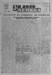 l i i l i i i i i i i M i f i i l l i i i i i i i i u i i i i i i i i i t i i i i i i i i D M i l i i i l i i l M i i i t t i j i l l i i i M » «ЗА ДЕЛО Л Е Н И Н А » i i H l i i i i i i i t i i i i i i i n u i i i i t i i i i t i l l i 1 9 февраля 1 3 8 0 года + № 2 2 ( 4 9 9 4 ) Трудиться по- ударному, п о- лен ин ск и (О к ончание . Нач. на 1 стр .) п лощ а д ью 12,4 тыс. кв. метров, с т о л о вы х на 6,1 тыс. посадоч ных мест, 55 ателье, м а стерских , п р о к атны х и ком плек сных п ри емных пунктов. Увеличить о т корм свиней на пищевых о т х о д а х , получить з а счет этого д о п олн и тельно 2 тыс. тонн мяса. Улучшить медицинское о б сл у ж и в а н и е насе лени я . С о ср ед о то чить усилия р а б о т н и к о в п р а к т и ческого з д р а в о о х р а н е н и я , научно- и сс л е д о в а т е ль с к и х медицинских у ч р еж д ен и й и медицинского инс т и т у т а на п р о ф и л а к т и к е и л е чении н аи боле е ма ссовы х острых и хро нических з аб о л ев ан и й . Е Э а к а д ем и че с ки х и о тр ас л евых н ау ч н о - и с с л е д о в а т е л ь с к и х инс т и т у т а х , п р о е к т н о -к о н с т р у к т о р ских о р г а н и з а ц и я х обеспечить д а л ь н е й ш е е повышени е э ф ф е к тивн ости и к а че ств а ф у н д а м е н т а л ь н ы х и п рик ла дны х и сследо ваний. С осредоточить научные силы и м а т е р и а л ьн ы е ресурсы на решении коренных н а р о д н о х о з я й ственных з а д а ч путем р еа лизации крупных н аучно - технических программ . Д о с р о ч н о з а в е р ш и т ь год о в ы е т ем ати че ски е планы. Всемерно р а з в и в а т ь сотрудничество ученых с п роизводств енными кол - лект!й)амп в ц елях наиболее п олн ого и быстрого пр ак ти ч еск о го и сп о л ь зо в ан и я р е з у л ь т а т о в исс л ед о в ан и й . Р а з р а б о т а т ь прогр а м м у исследов ан и й по а к т у а л ь ным пр о бл ем ам нау ч но - тех н ич еск ого и с о ц и а л ьн о - э к о н ом и че с к о го р а з в и т и я о б ла с т и на о д и н н а д ц атую п я т и л е т к у . К 110-й г о д о в щине со дня р о ж д е н и я В. И. С О Ц И А Л И С Т И Ч Е С К И Е ОБЯЗАТЕЛЬСТВА Т Р У Д Я Щ И Х С Я НОВОСИБИРСКОЙ ОБЛАСТИ НА 1 9 8 0 ГО Д Лен и на подготовить научное обоснование основных н а п р а в л е ний комплек сн ого р а зв и т и я о б ласти до- 1990 года. В инс титутах Сибирского о т д еления АН СССР выполнить сверх плана 95 научных работ по новой технике и технологии, повышению произв одител ьности т р у д а и ка че ств а продукции, в том числе провести комплекс исследов аний по повышению э ф фективности применения вычислительной техники на п р е д п р и я ти ях, р а з р а б о т а т ь и п ередать р а диопромышленности ак усти ческие фильтры новой к о н стр у к ции, улучшающие качество р а д и о а п п а р а т у р ы , внедрить в о р г а низациях «Г лавиовоснбпрс кстроя» вы с окопроизводит ельны е пневматические вибраторы д ля уплот нения бетонных смесей. Обеспечит!) да л ьн ей ш и е исслед ования но выявлению перспективных зон р ай он иров ан и я нового сорта о зи мой ржи «сибирская ко рм овая» . П од готовить гео лого -э кономическое обосн овани е значительного повышения темпов псгискозо-раз- ведочиых работ на нефть и газ в З а п а д н о й Сибири. В коллективах- институтов Сибирско го отделения ВАСХНИЛ з а в е р ш и т ь н п ередать в произво дс тво 35 наиболее в аж ны х р а з работок. Под готовить ком плек сную про гр амм у увеличения про и зво д ств а зерна , кормов, молока и мя са в к о л х о з а х и совхозах области на о д ин н ад ца тую п яти летку. Осуществить практические меры, способствующие широкому внедрению новых со ртов з ер н о вых и ко рмовых к у ль тур с целью расширения площади пос