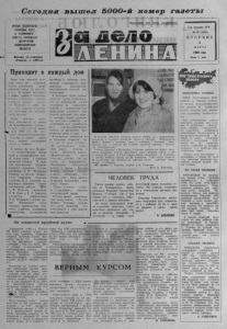 С е г о д м ж м ы ш е л 5 О Р Г А Н С Е В Е Р Н О Г О Р А Й К О М А К П С С И РАЙ ОН НО Г О С О В Е Т А Н А Р О Д Н Ы Х Д Е П У Т А Т О В Н О В О С И Б И Р С К О Й О БЛ АСТ И Выходит по вторникам четвергам и субботам Год и з да ния 45-й № 28 ( 5000 ) В Т О Р Н И К 4 М А Р Т А 1 9 8 0 года Це на 2 ков. Приходит в каждый дом Через день читатели получают почти две е половиной тыеячи экземпляров нашей районной газеты «За дело Ленина'). Ее.читают тракторист и шофер, доярка и строитель, агроном и зоотехнии, учитель н впач и, конечно. пг'оль*- ! нк. Пожалуй, не найти тагино дома, куда Гы не доставлял почтальон •эту массовую газету на селе. Наша «оайонкач> ведет свою родословную от газеты «За большевистские колхозы», П С О В Ы Й епмео К ОТОР ОЙ вышел июле 1935 года. На всех этапах социалистического стро- ■"олг/тва в деревне газета была верным помощником партии и Советов. У газеты «За дело Ленина» 1 сс предшественниц всегда были и поддерживаются всегда тесные связи с широким авторским активом. В паши дни постоянными авторами являются начальник Госсем- инспекции Л. М. Нестерова, партийных и советских организаций, специалистов, механизаторов, животноводов, представителей сельской интеллигенции. В настоящее время главное внимание газета сосредоточивает на мобилизации усилии трудящихся на выполнение заданий и социалистических обязательств последнего года десятой пятилетки. Она широко освещает борьбу тружеников сельского хозяйства за дальнейший рост урожайности всех сельскохозяйственных культур, за увеличение производства зерна и мяса. Постоянными рубриками на ее страницах являются та- к"*‘, как «О людях хороших», «На пкотточичсские . темы», «Нам п и ш у т» , «Советы и жизнь». «Партийная жизнь», «Животноводство — фронт ударный», «Спорт», «За экономию и бережливость», «Воспитанию *-ч- комплексный подход» и другие. Выходят целевые страницы ’ «Человек В колхозе «Восход» успешно ведется р а б о т а по привлечению мо л о д ежи в се льское х озяй ство . В зя т ь к примеру Че ба к о в ск ую ферму. Д о я р к и и скотники здесь, в основном,- молодые люди. Полные с и л и энергии они успешно т р у д я т с я н а р а в н е с опытны ми ж и вотновод ам и . Г а л и н а С им аев а и В ален ти на Г л а д к о в а пришли на ферм у с р а з у после окончания школы. Валентина с т а л а д о яр к о й , с е й ч а с . у нее, в группе 29 коров. А Г а л я первое врем я у х а ж и в а л а за т ел я там и , а теперь н а б р а л а группу из 28 животных, т о ж е с т а л а дояркой . В к о л л ек тив е обе д евуш ки н а хорошем счету, р аб о таю т с т а р а тельно, с огоньком. Н а снимке; Г. С им аев а (с ле в а ) и В. Г л а д к о в а . Фото Б. К о р о л е в а , П О Д К О Р МК А О З И МЫХ КИЕВ . Н а сту п ающ ую весну первыми на Украине в с т р е т и ли летчики с е л ь с к о х о з я й с т в е н ной авиации. В х о з я й с т в а х южных обла стей они р а з в е р н у л и подк о рм ку озимых к у л ь тур. Д л я плодотворной ра боты а в и а т о р о в созд аны все у с л о вия. В х о з яй с т в а х о б о р у д о ваны мощные а грохимиче ские комплексы , оснащенные современным о борудов ан и ем и р а згрузочно -погрузочной т е х никой, на полях построены в з л е т н о - посадочные п л о щадки. Все это п о з в о л я е т вносить удобрения на больших п л о щ а д я х и в наиболее б л а гоприятны е сроки. О зимое поле республики — крупнейшее в ст ране . В этом г о д у а в и ато ры наметили п о д корм ить к а ж д ы й второй г е к т а р посевов. НЕ Т Е Р Я Я В Р Е МЕ Н И инженер по техн