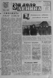 ОРГАН СЕВЕРНОГО Р А Й К О М А КПСС И РАЙОННОГО СОВЕТА НА РО ДНЫ Х Д Е П У Т А Т О В НОВОСИБИРСКОЙ ОБЛАСТИ Выходит по вто рникам, четвергам и субботам Пролетарии всех стран, соединяйтесь! Год издания 45-й № 43 В Т О 8 А П Р Е Л Я 1 9 8 0 года Цена 2 коп. ш т т £ з ш | Ш Ш Ш Ч9 - У М Н О С И Л У Наступил апрель — второй ме. спц весны. С каждым днем з а метнее приближение весенне-полевых работ. В хозяйствах р а й она завершается подготовка техники и сельскохозяйственного инвентаря. Результаты весеннего сева, судьба планов и принятых социалистических обязательств завершающего года десятой п я тилетки, во многом будут з а в и сеть от рационального использования каждого гектара пашни и в целом сельскохозяйственных угодий. Земля в СССР — всенародное достояние. Только в нашем р а й оне, несмотря на особые природно-климатические условия, сельскохозяйственные угодья зани мают более 146 тысяч гектаров, Ш/Р в том числе в колхозах более 102 тысяч, из них пашни около 40 тысяч. Государство н апр авл я ет большие средства для повышения плодородия почвы, активно ведутся мелиоративные работы, химизация земледелия. З а прошедшие четыре года хозяйствами в почву внесено более 43 тысяч тонн минеральных удобрений или в действующем веществе более четырнадцати тысяч тонн, на поля вывезено около 230 тысяч тонн органических удобрений. З а прошедшие годы мелиораторами сдано ь эксплуатацию колхозам 196 гектаров новых сельскохозяйственных угодий, а на площади две тысячи гектаров проведены культуртех- пические работы, не требующие осушения. Немалые работы предстоит выполнить в завершающем году десятой пятилетки. Будет внесено на поля 1200 тонн минеральных и 62 тысячи тонн органических удобрений, На мелиоративные работы выделено из государственного бюджета 873 тысячи рублей, что позволит сдать в эк сплуатацию осушеных земель 734 гектара, в том числе в колхозах имени М. Горького — 435, «7-й съезд Советов — 299 гектаров. ^ |И < р о м е того на площади 1420 гектаров будут проведены куль- туртехнические работы. Все это создает хорошую основу для увеличения производства зерна -и других сельскохозяйственных продуктов. Однако это обязывает умело использовать землю, беречь и охранять от р а з базаривания каждый гектар пашни, сенокосов, пастбищ. Использовать все сельскохозяйственные угодья только по их прямому назначению. Отдельные колхозы, в связи с тем, что проекты внутрихозяйственного землеустройства прошлых лет устарели и по своему х арактеру были не совершенны, делают попытки к созданию новой организации территории севооборота своими силами, делая ее более рациональной. Иными словами, внедряются укрупненные севообороты, что по опыту передовых хозяйств, позволит высокоэффективно ис- 0 Р пользовать в наших условиях технику, проводить весенне-полевые работы в лучшие агротехнические сроки, а уборку урожая с наименьшими потерями. В районе проводится определенная работа по внедрению прогрессивной технологии ведения земледелия. В текущем году пла нируется значительно расширить безотвальную обработку почвы — ЖА ТЬ З Е М Л И провести ее на площади 2,5 тысячи гектаров. Добрый пример эффективного использования пашни подают передовые хозяйства. Из года в год богатеют хлебные нивы колхозов имени К. Маркса, «Память Денина», «Путь к коммунизму» и других, где урожайность зерновых культур приближается к двадц