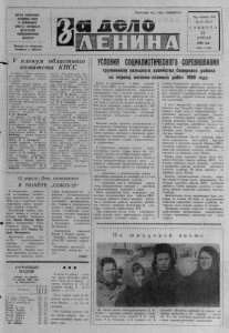 ОРГАН СЕВЕРНОГО РА Й КОМ А КПСС И РАЙОННОГО СОВЕТА НАРОДНЫХ Д Е П У Т А Т О В НОВОСИБИРСКОЙ ОБЛАСТИ Выходит по вторнинам, четвергам и субботам Год издания 45-й № 45 (5017) С У Б Б О Т А 12 А П Р Е Л Я 1 9 8 0 года Цена 2 коп. V- пленум областного комитета Г 8 апреля п Доме политического просвещения состоялся V пленум областного комитета партии. Пленум о б с у д и л , вопрос «О ходе выполнения постановления июльского (1978 г.) Пленума ЦК КПСС н задачах областной партийной организации по дальнейшему повышению культуры земледелия, увеличению производства зерна к кормов». Д рклад по этому вопросу сделал первый секретарь об ластного комитета партии Л. П. Филатов. В прениях по докладу на пленуме выступили: А. Ф. Петухов — первый секретарь Пекнтнмекого горкома КПСС, А. С. Баранников — председатель колхоза «Новая семья» Карасукского района, М. С. Клобуков — второй секретарь Новосибирского горкома КПСС, А. Г. Незанитин — первый секретарь Татарского горкома КПСС, Н. С. Белоусова — трактористка совхоза «Индсрскнй» Доволенского района, Г. Ф. Саблин — первый секретарь Ордынского райкома КПСС, Н. В. Крас- нощеков — первый заместитель президиума Сибирского отделения ВАСХНИЛ, В. И. Фофанов — главный агроном совхоза «Маслянииекий» Мас- лянинского района, Герой Социалистического труда, А. С. Разгоняев — первый секретарь Мошковского райкома КПСС, Л. И. Фролова — секретарь парткома колхоза «40 лет Октября» Колывайского района, Н. М. Попов — с т а р ший чабан совхоза «Запрудн- хинскнй» Краснозерского р а й она, П. П. Гришняев — з а м е ститель председателя исполкома областного Совета народных депутатов. С заключительным словом выступил первый секретарь обкома КПСС А. П. Филатов. По обсуждаемому вопросу принято постановление. Пленум обкома партии з а в е рил Центральный Комитет КПСС в том, что коммунисты, все трудящиеся области сд е лают все необходимое для ус пешного выполнения задач, поставленных XXV съездом КПСС, июльским (1978 г.) и ноябрьским (1979 г.) Пленумами ЦК КПСС по дальнейшему развитию сельского хозяйства, росту производства зерна и кормов, увеличению продажи государству всех видов продуктов земледелия н животноводства. Пленум решил организационный вопрос. 12 а п р е л я —Д ен ь космонавтики В ПОЛЁТЕ И соответствии с программой исследования космического пространства 9 апреля 1 9 8 0 года в Советском Союзе осуществлен запуск космического корабля «Союз-35». Космический корабль пилотирует экипаж в составе командира корабля подполковника Попова Леонида И в а н о в а вича и бортинженера, Героя Советского Союза летчика- космонавта СС Р Рюмина В а лерия Викторовича. Программой полета «Союз-35» предусматривается стыковка с орбитальным комплексом «Салют-6» — «Прогресс-8». Экипажу предстоит выполнить на борту орбитального комплекса необ.Ао- „СОЮ З 35“ Димые профилактические и ремоптно - восстановительные работы с целью обеспечения дальнейшего функционирования станции в пилотируемом режиме, а также продолжить научно - технические эксперименты,- изучение природных ресурсов Земли и медико- биологические исследования в околоземном космическом пространстве. Самочувствие товарищей Попова и Рюмина хорошее. Бортовые системы корабля «Союз-35» работают нормально. Космонавты приступили к выполнению программы полета. ( Т А С С ) СУТОЧНЫЕ НАДОИ молока на корову 11 апреля 1980 года (в килограмм