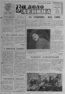 ОРГАН СЕВЕРНОГО РАЙКОМ А КПСС И РАЙОННОГО СОВЕТА НАРОДНЫХ Д ЕП У ТА ТО В НОВОСИБИРСКОЙ ОБЛАСТИ В ы х о д и т по в т о р н и к а м , ч етвергам и субботам Пролетарии в о к стран , соеди няйтесь! Год издан и я 45 -й № 51 (5023) Ч Е Т В Е Р Г 2 4 А П Р Е Л Я 1 9 8 0 года Цена 2 коп. 1 Торжественное заседание Как светлый праздник отм е тили тр у д ящ и ес я района 110-ю годовщину со д н я р о ж дения В ладими ра Ильича Л е нина — гениального р еволю ционера и мыслителя, с о з д а т е л я Коммунистической партии, о сн о в а т е л я первого в мире социалистическо го г о с у д а р с т ва. 21 апреля в районном Д о м е ку льту ры состоялось т о р ж е с т венное за с едан ие , посвященное знаменательной дате. Зд ес ь собрались представители п а р тийных н советски х органов, пер ед овики п роизводств а, в етераны партии, учителя , вракультурных учпредседате- В. М. Г р у пп, работники реждений. Многие из них в канун ю би лея были нагр аж дены Л ен и н - ' сними Почетными грамот ами . Торж е ств ен ное зас е д ан и е о т крыл з ам еститель ля райисполкома сико. С д о к л а д о м «О 110-й г о д о в щине со дня р ождения В. 11 Л ен н на » выступил" первый се к р е т а р ь рай ком а КПСС II. А. Борисов. • Д о к л а д был выслушан с большим вниманием. З а т ем сос тоялся п р а зд н и ч ный концерт. О О о В ЧЕСТЬ ЮБИЛЕЯ В О Ж Д Я То рж е ств ен но е собрание, пос вящ ен но е 110-й годовщине со дня р ож д ен и я В. И. Л е н и на, состоялось в Ф е д о р о в ском Д ом е ку льту ры. В президиуме — пер ед овые • м е х ан и з а то ры и ж и во тно во ды х о з я й ства. С д о к л а д о м , выступил с е кр е т а р ь парти йной о р г а н и з а ции кол х о з а Г. Е. Аденский. По окончании д о к л а д а п ред сед ате ль правления А. Н. Савчнц вручил передовикам п р о изв о д ств а Почетные г р а м о ты. Среди н а гр аж денны х — д о я р к и Г. Г. М уравь ев а , А. И. З о л о т у х и н а , шофер Г. II. Яшин и другие. З а т е м силами х у д о ж е с т в е н ной сам од еяте льн ости был дан концерт. Л. ПОПОВА, селькор. о о о С ИМЕНЕМ ЛЕНИНА В спорти вном з а л е ср еднего се льского п р офессионально -технического училища № 21 з в у чит всем знакомый «Марш э н ту зи асто в » И. И. Д у на ев ск о го . Д и р е к т о р училища Г. Г. З ы р я нов прив етс твует собравшихся и о б ъ я в л я е т открытие т о р ж е с тв енного собрания, п о св ящ ен ного 110-й годовщине со дня р о ж д ен и я В. И. Л енина . Л у ч шим к у р с ан т ам предоставлен о право внести зн ам я к ом сом о л ь ской орг ан и з ац ии уч илища. З и наида Телегина вносит а л о е п о лотнище. Ее со п р о в ож д аю т Валерий К р у пп а и Геннадий чЛорозов. Все трое с т а н о в я т с я в почетном к а р а у л е у знамени. В л а д им и р у К у л еш о ву и Т а т ь ян е Клевцовбй о к а з а н а честь в о з л о ж и т ь цветы к портрету Ильича. З а м е с т и т е л ь д и р е к т о р а по учебно-воспитательной работе Н. Ф. Я р о в а я выступила с д о к ладом . Она р а с с к а з а л а о ж и з ни и деяте льн ости В. И. Л е н и на, о неп реходящем значении м а р к си зм а -л ен ин и зм а в п о с т р о ении коммунистического о б щ е ств а. С е к р е т а р ь ком сомольской орг ан и з ац и и В. К у др яш о в з а ч и тал рапорт о проделанно] раб оте: в учебных группах п р о и ш комсомольские со б р ан и я по об суж дению речи Владимир ; И льича на I I I съ е зд е комсо мбла; еж ен е д е л ьн о проводились ленински е т о рж е ств ен ны е ли нейки, на которых ста р о сть групп отчитывались об у с п е в а емости и. общес твенн о -п олезной р а б о т е учащихся ; в честь первой группы мас- теров -с тронте ле