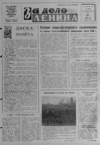 ОРГАН СЕВЕРНОГО РАЙНОМА КПСС И РАЙОННОГО СОВЕТА НАРОДНЫХ Д Е П У Т А Т О В НОВОСИБИРСКОЙ ОБЛАСТИ Выходит по вто рникам, четвергам и субботам Д О С К А — П О Ч Ё Т А Рассмотрев итоги со циалистического соревнования доярок, с кот ников дойных и откормочных г у р т о в , ' т е л я т н и ц по производству и продаже го сударству продуктов животноводства за 1 месяца J 9 8 0 года, бюро рай кома КПСС , исполком районного Совета народных депутатов и президиум райкома профсоюза работников сельского хо зяйства постановляют: Первенство присудить: A. Е. Марецкой — доярке колхоза «Борьба за мир» , надоившей от каж д ой коровы по 1 1 1 1 килограммов молока; B, Д. Акилиной — доярке колхоза имени X X I I съезда К П С С , надоившей по 1 0 5 2 ки лограмм а молока на корову ; Н. Н. Девитияровой — доярке колхоза имени Х Х М съезда КП С С , надоившей от кажд ой фуражной коровы но 1 1 0 0 6 килограммов молока; 1 Н. В. Коржовой — доярке колхоза « 7 - й съезд Советов», надоившей от каж д ой фуражной коровы но 1 0 0 3 к и л о г р а м ма молока; 3. Н . Мосиявич — доярке колхоза « 7 - й съезд Советов», надоившей от кажд ой фу ражной коровы по 1 0 0 3 к илограм ма молока; Е. Я. Усовой — доярке колхоза имени ХХТТ съезда КПСС надоившей от каж д ой фуражной коровы по 0 8 6 килограммов молока; А. Е. Паньковой — доярке колхоза «Борьба за м и р » , н а доившей от каж д ой фуражной коровы по 9 7 6 килограммов молока; Н. С. Тарасову, И . Г. Егорову, Ф. И. Кириллову и А. А. Ха ритонову — с к о т н и к а м дойного г у р т а колхоза «Борьба за м и р » , обеспечившим получение надоев молока о т . з а к р е п л е н ных за ними коров по 6 8 0 килограммов, что на 6,3 к и л о грамма больше результатов этого ж е периода прошлого года; И, А. А н и л и н у , И. А- Федорову, А. Ф . .С а ви ц ком у , К . Е, П и н т у с о в у , А. Н. Федорову и Е. Е. Л ош н и н у — ск о т н и к ам дойного г у р т а из колхоза и м - X X I I съезд3 К П С С , обеспечившим получение надоев молока от г у р т а з акр епл енны х за ними коров по 8 3 1 к илограмм у молока, что на 1 0 5 килограммов больше, чем было получено за 4 месяца прошлого года; М . М. Астафьеву, В. С. С и т н и к о в у , Н . Н. Н и к и т и н у , П. И- Н и к и т и н у , М- Ф, Миронич, и Н . Д. Мокроусову — с к о т н и кам дойного г у р т а из колхоза « П у т ь - к к о м м у н и з м у » , обеспечи вш им получение надоев молока от г у р т а з акр епл енны х за ними коров по 7 5 0 килограммов, что на 4 5 килограммов больше, чем было получено за этот ж е период прошлого года. И. Т . Крестьянову — с к о т н и к у от кормочного г у р т а ко л хоза « П у т ь к к о м м у н и з м у » , п олу чивш ем у с начала года по 0 2 5 граммов среднесуточного привеса молодняка па голову. 0 . И. Комиссаровой — т е л я т н и ц е колхоза « 7 - й съезд Советов» , полу чивш ей с начала года по 8 1 6 граммов средне суточного привеса па голову; Л- И. Лавровой -— т е л я т н и це колхоза « П у т ь к к о м м у н и з м у » , получившей с начала года среднесуточный привес молодняка по 6 3 0 граммов на голову. С Л Ё Т Р А Б С Е Л Ь К О Р О В 22 мая в ка би н ете политп ро- с е л ь к о р а м к а к и о чем писать •сношения рай к ом а КПСС состо- в г а з е т у . С обзо ром стенных га- ■ялся районный слет р абсе лько - з е т выступил зав ед ующ и й сель- р о в , а к тиви сто в печати и мест- хозо тд ел ом редакции А. Г. Шя- ■ного радио. На него т а к ж е были рапинский. приглаш ены се крета ри пар ти йных Активисты р аб се ль к о р о в ск о го орг ан и з ац ии предприятий и ко л- д в и ж е н и я были отмечены Почет- хо зо в , р