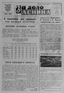 ы т» —■давни лп ОРГАН СЕВЕРНОГО РА Й КОМ А КПСС И РАЙОННОГО СОВЕТА НАРОДНЫХ Д Е П У Т А Т О В НОВОСИБИРСКОЙ ОБЛАСТИ Выходит п о вторника м, четвеогам и субботам Год издания 45-й № «8 (5040) Ч Е Т В Е Р Г 5 и ю н я 1 9 8 0 года Цена 2 коп. В ближайшие дни завершить с е в я р о в ы х к у л ь т у р 1 Д Н Е В Н И К П О Л Е В Ы Х Р А Б О Т На полях района завершается посевная кампания- Сейчас во всех хозяйствах заканчивается сев зерновых культур- По плану они должны разместиться на 1 7 0 4 0 гектарах- На второе ию- 1 я засеяно l b 7 53 гектара, что составляет 9 6 ,5 процента. Колхозы «Память Ленина», имени М. Горькс- ю , «Путь к коммунизму», имени К- Маркса, « 7-й съезд Советов» полностью закончили сев зерновых культур- Остальные хозяйства близки к этому- Восемь хозяйств района справились с планом посева пшеницыПродолжается сев силосных культур. Медленно идет сев зерновых культур в колхозах «Новая жизнь» и «Борьба за мир»- Здесь посеяно чуть больше 60 процентов всей посевной площадиЗавершение сева яровых культур позволит начать вспашку паров, подготовку сеноуборочной техникиСВОДКА О ХОДЕ ВЕСЕННИХ ПОЛЕВЫХ РАБОТ В, СОРЕВНУЮЩИХСЯ КОЛХОЗАХ на 2 июня 1980 года Колхозы Всего Яро ш х | В т. ч, всех з е р а . Из них пшеницы С лосных план факт. J план 1 факт. план факт.’ план факт. Память Ленина 4350 3970 3190 3190 1170 1170 550 500 им. XXII съезда КПСС 3793 3412 2760 2639 1040 1170 820 691 Восход 2171 1819 1450 1143 500 430 640 ' 675 Новая жизнь 1791 1056 1260 950 500 385 400 105 Заветы Ильича 2381 1718 1620 1403 900 900 470 314 им. М. Горького 2051 1625 1340 1420 800 800 350 164 Путь к коммунизму 2642 2425 1610 1625 400 417 750 650 им. К- Маркса 1911 1792 1200 1200 300 408 550 550 Борьба за мир 2151 1411 1580 1080 260 260 400 330 7-й съезд Советов 1631 1432 1030 1103 150 202 550 328 Итого по району 25220 20660 17040 15753 6020 6142 5480 4307 П О Р А Б О Л Ь Ш О Г О Ш I Л 0 К А У животноводов района насту- лограмм опережает надои 1 97 9 тнгнутыл успех, устранить негила ответственная пора— скот года. Здесь вовремя был составлен достатки, допущенные при пере- перешел на пастбищное содер- график перевода животных на поде скота, создать все условия жание. От того, как пройдет выпаса- Заранее проверили рабо- для дальнейшего роста продукти- ; та кампания, зависит выпол- ту оборудования на дойках, рас- вности- Особенно много предсто- i.emie как полугодовых планов пределили участки для пастьбы, нт сделать там, где допустили го производству и продаже про- подобрали пастухов- На сегодня- крупные просчеты, вовремя не дукции животноводства, так и шний день впереди идет Остяц- подготовили летние лагеря, дон- юдовых. кая ферма, где суточный надой ки, не предотвратили срыв в корТам, где вовремяподготовлены от коровы составляет по 1 0 ,5 млении животных. Это касается летние доильные площадки и килограмма- колхозов имени К. Маркса, «Залагеря, организованаподкормка Первенствуют доярки Е. А. Ка- петы Ильича», «Новая жизнь», животных на пастбищах, прави- рецкая. надаивающая от коровы по "мени М Горького- В этих хозяй- льно сформированы гурты и по- 13 килограммов молока и Л А- ('твах 10 сей день так и це смог- добраны кадры, там сумели зна- Евдокимова — по 1 2,5 кило- ли преодолеть отставание в надо- чстельно повысить продуктов- грамма- лх к уровню прошлого годагость коровУверенно наращивают темпы ]>оета производства молока в колхозе «Борьба за мир»- Здесьзна- 1 стельно больше производят этой 1родукции, чем в прошедшем 1оду. Достаточно сказать, что еще в середине февраля хозяйство находилось на шестом месте среди десяти колхозов, а се