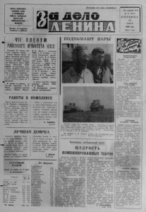 ОРГАН СЕВЕРНОГО Р А Й К О М А КПСС И РАЙОННОГО СОВЕТА НАРОДНЫХ Д Е П У Т А Т О В НОВОСИБИРСКОЙ ОБЛАСТИ Выходит по вторнинам, четвергам и субботам Пролетарии всех стран, соединяйтесь! Год издания 45-й № 70 (5 0 4 2 ) П Я Т Н И Ц А 13 И Ю Н Я 1 9 8 0 года Цена 2 коп. VII ПЛЕНУМ РАЙОННОГО Ш КПС ) Состоялся V I I пленум р а й онного ком итета п ар т и и . Пленум обсудил вопрос «О работе п артийной организа ции района по в ы г о л н е н ж е поста новления Ц К К ПСС , Пр езидиума Верховного Совета СССР, С о в л а Министров СССР, ВЦСПС «О дальнейшем у к р е плении трудовой- Д И С Ц И П Л И Н Ы и с окр ащении те к у ч е с т и к ад ров в народном хозяйстве» . С денладом по этому вопросу выст упила секр етарь р а й онного комитета партии В- Т- Боровская. В т р е н и я х по докладу на пленуме выст упили: В. П- Жоров — секр етар ь парткома колхоза «П ам я ть Л е н и н а » , Я- М, Донов — начальник РОВД, 3. Н Голубева — директ ор Чув аш и н ской восьмилетной школы, В. А Ш а у р к о — ма хании колхоза имени Х Х И съезда КПСС. В. И Я у и ь я н ч у к — первый секре тарь рай кома З-ПЧСМ, Г. Е Аленений — секретарь парт бюро колхоза им. М. Горько го. М- П- Ляхнович — пред еедатель колхоза «Заветы И л ь и ч а » , М. П, Трибуналов— секр етар ь партбюро колхоза «В осход». С речью выступил первый се кретарь райкома КПСС Н- А- Борисов. По обсуждаемому вопросу приня то постановление. РАБОТЫ В КОМПЛЕКСЕ Пятого июня в колхозе име- 1 и М. Горького завершился <ев зерновых и силосных ультур, однолетних трав. На , нях полностью закончили и вспашку паров- Под озн- ую ]>ол;ь в хозяйстве отведено Солее 5 0 0 гектаров. Отличились на вспаипге трак- '.орпсты Алексей Николаев братья Николай и Иван Архиповы. Сейчас, у тружеников села не менее “Ответственная пора. И колхозе идет подготовка к сенокосу. Составлен рабочий глан. где указано количество техники, определены участки ! абот- Первые агрегаты выйдут на луга 25 июняН . П А Н А Р И Н , агрономЛУЧШАЯ ДОЯРКА Елизавета Ивановна Блинова по праву считается лучшей дояркой колхоза «Восход». За 13 лет работы на Читинской ферме она в совершенстве овладела своей 1 рофессией, изучила характер и повадки животныхВаловой надой в ее группе сначала года составил 2 7 6 5 4 килограмма молока, в среднем от коровы получено по 1 1 0 8 килограммов. За май Елизавета Ивановна надоила от группы 7 2 4 0 килограммов молока и этим самым опять подтвердила звание лучшей доярки колхоза. 3- Д РА ГАН , зоотехник. СУТОЧНЫЕ НАДОИ молока на корову на 11 июня (в килограммах) По ф ё р м а м Колхозы 1980 г 1979 г. Б о р ь б а з а м и р “ 11,7 11,1 им. XXII съ езд а КПСС 11,2 11,0 7 -й с ъ е з д Советов 11 0 10 0 П а м я т ь Л ен и на 10,7 1 0 0 П у т ь к к оммунизму 10 6 11,0 Восход 10,5 10,5 нм. К. М а р к с а 9,2 9,0 им. М. Горького 8 5 10 0 З а в е т ы Ильича 8 0 9,0 Н о в а я ж и з н ь 7.4 7,6 По району 10,0 10,1 Н а д е ж д и н с к а я (п ервотелки ) О с т я ц к а я Кордо'новская У р гу л ь с к а я Г р а ж д а н ц е в с к а я В есе ловс кая У д а р н и ц к а я М а л и н о в с к а я В - К р а с н о я р с к а я Н о в о - Н и к о л ь с к а я Ч е б а к о в с к а я О с тан ин ск ая И ч к а л и н с к а я С ев ер н ая Том и л о в с к а я Б -К у л и к о в с к а я В итинская Б и а з и н с к а я М и хеев ск ая Ф е д о р о в с к а я Н о в о -Т р о и ц к а я Б е р г у л ь с к а я Ч у в а ш и н с к а я Алеш ин ск ая 12,0 12,0 11 9 f 1 5 I Г ,2 11,2 11,1 I I 1 П О 11,0 11,0 11,0 10,9 10 9 10 8 10,2 10,0 9.8 8,6 8 5 7.9 7,8 7.7 6.8 10 1 11,3 11 9 IU3 11 1 10,9 11 О 9',О 11 5 10,'1 9.6 9.6 11,6 11 О 9.6 10 7 П',0 10,0 1 0 , 6 9 .0 8.7 7,5 9.1 ПОДНИМАЮТ ПАРЫ 1 . П ° ‘™“ М х о д о ” идет в спаш к а паров - подготовка площаде